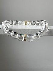 シンプルなデザインの中にムーンストーンの優しいシラー効果の輝きと、アイリスクォーツのレインボーの輝きが特徴的で美しいブレスレットです。