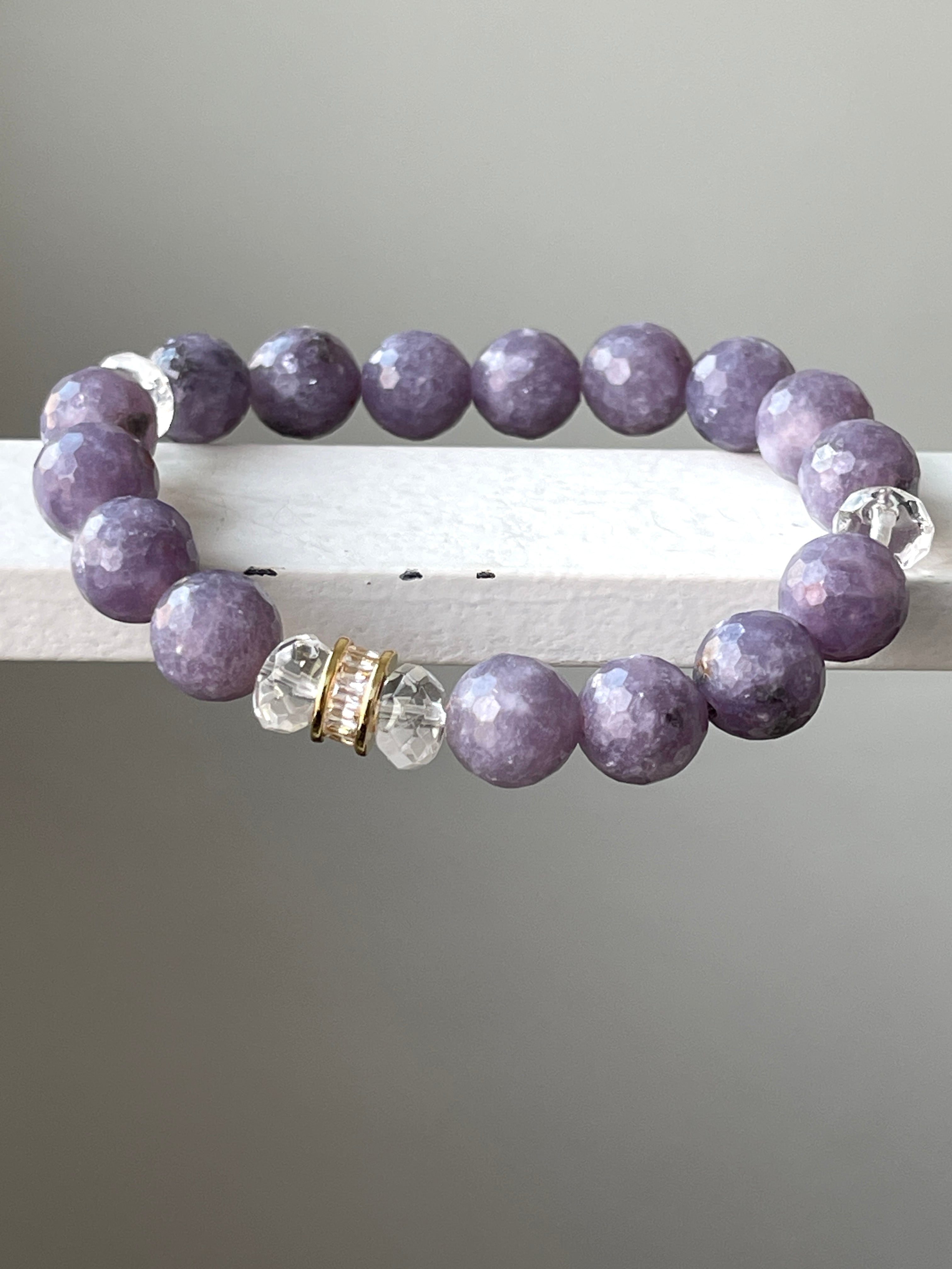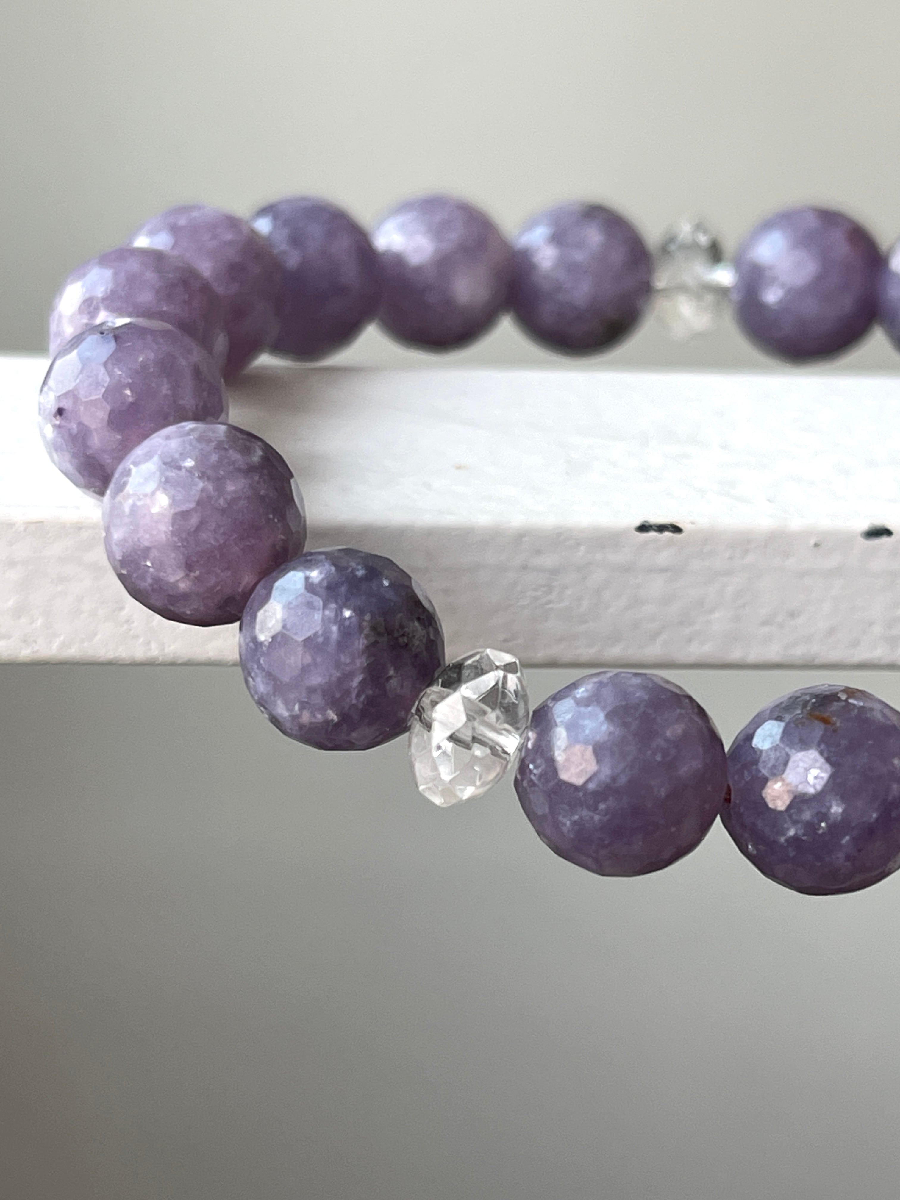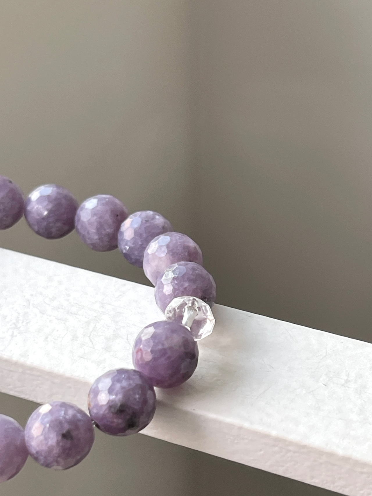 【変革の石】レピドライト&天然水晶(カット有り)♡パワーストーンブレスレット