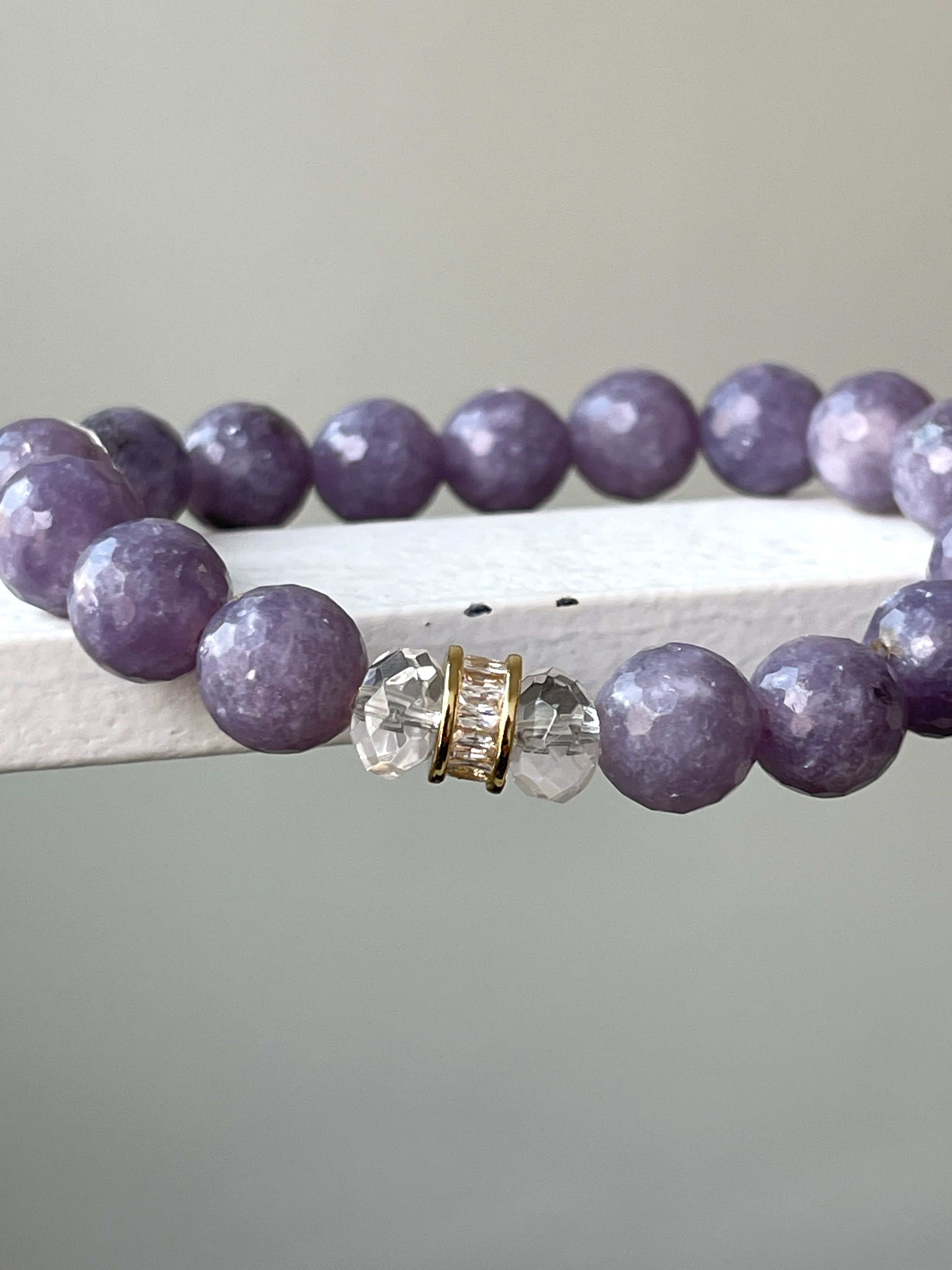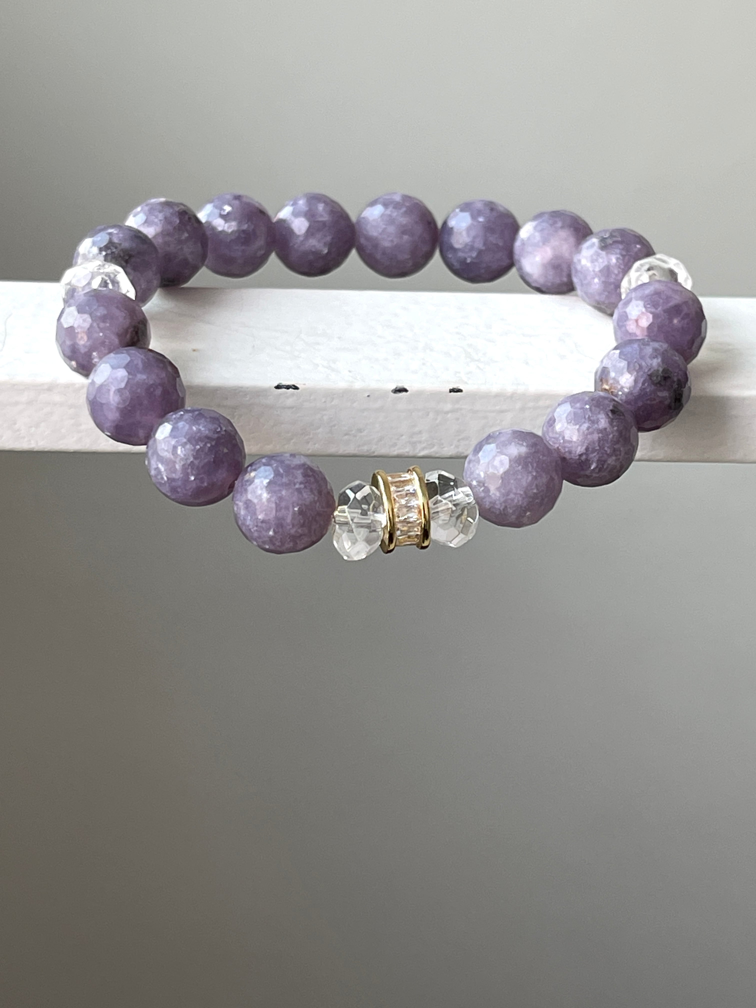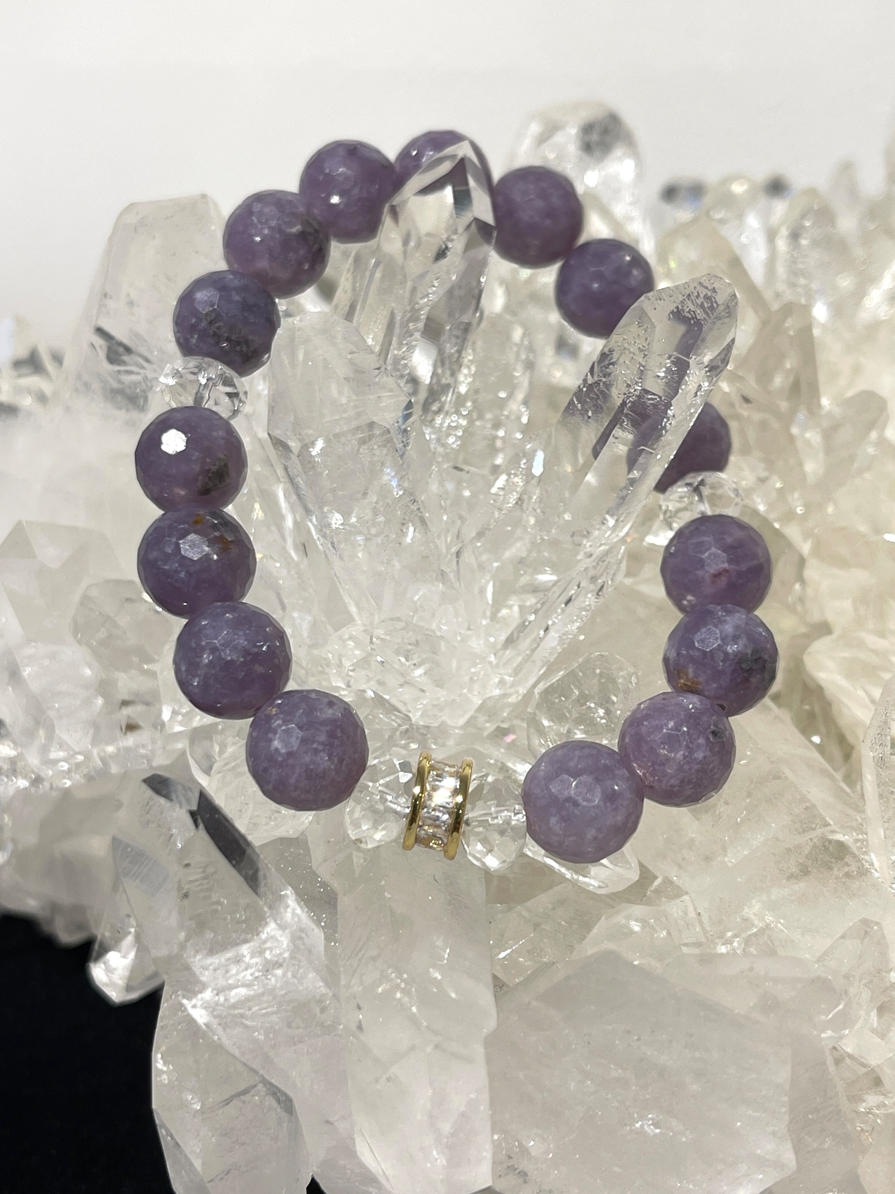 【変革の石】レピドライト&天然水晶(カット有り)♡パワーストーンブレスレット