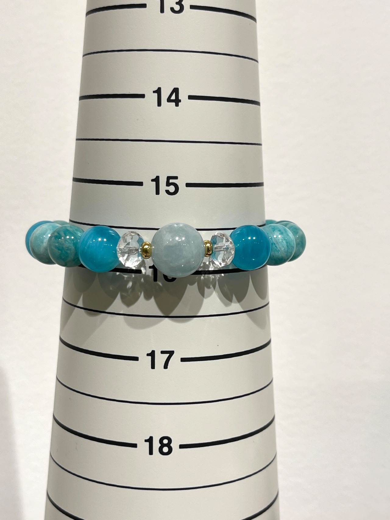 こちらのブレスレットは第4.第5チャクラに働き掛けるパワーストーンブレスレットです。