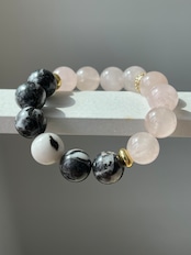 優しいピンクの雰囲気の中にゼブラジャスパーのブラックが大人のスパイスのように効いている素敵なブレスレットです。