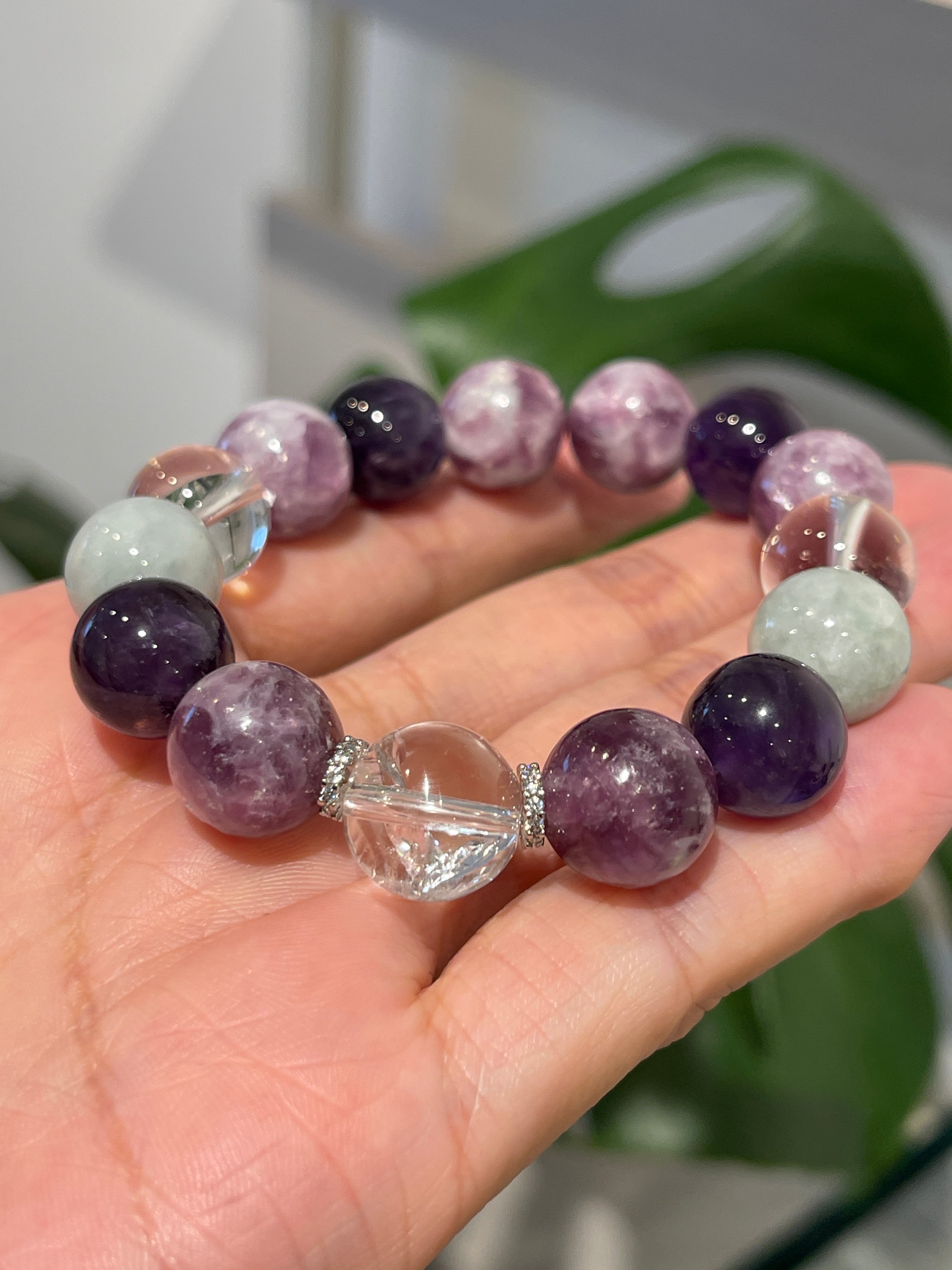 レピドライトシリカ&アイリスクォーツ♡パワーストーンブレスレット