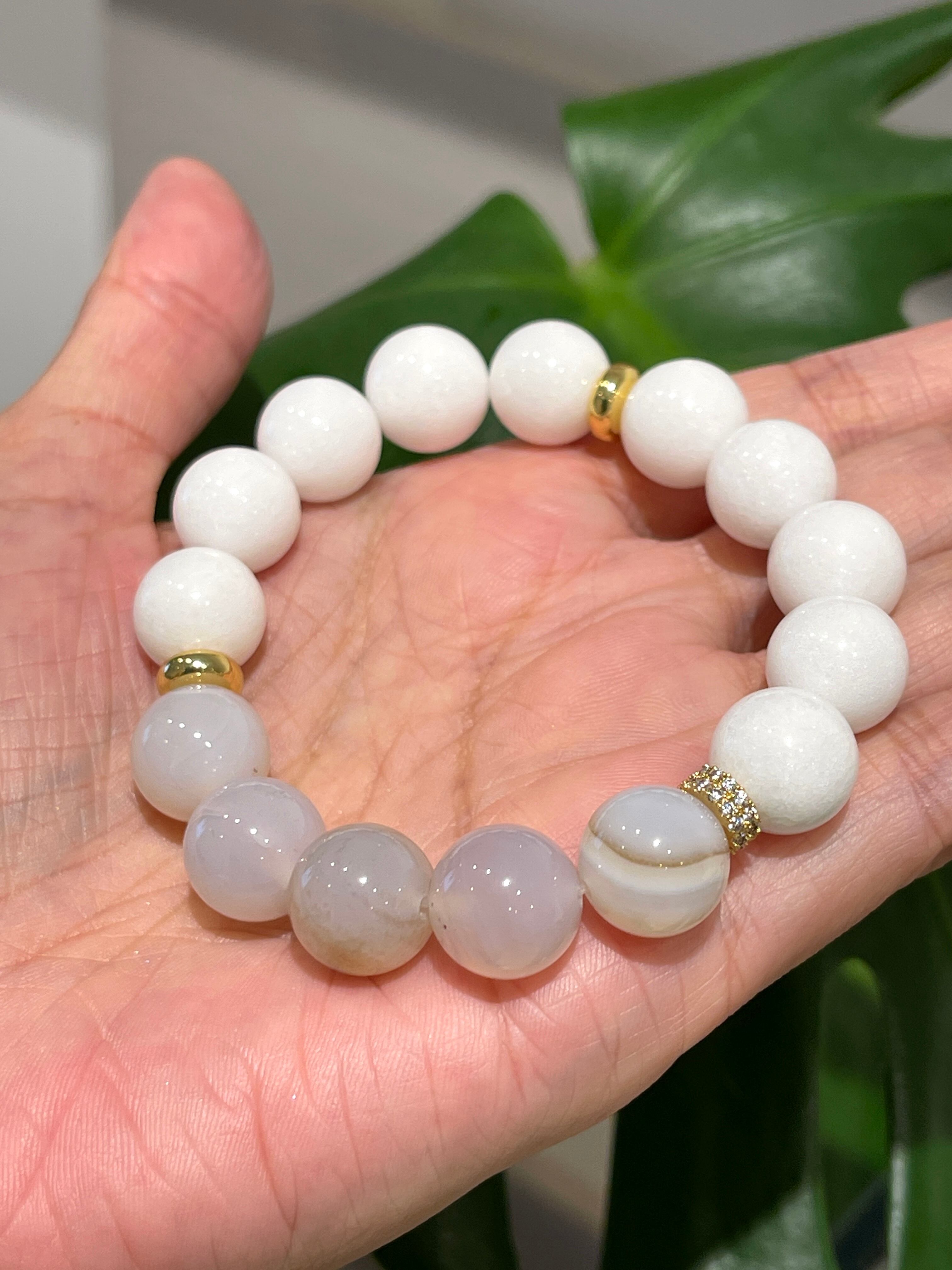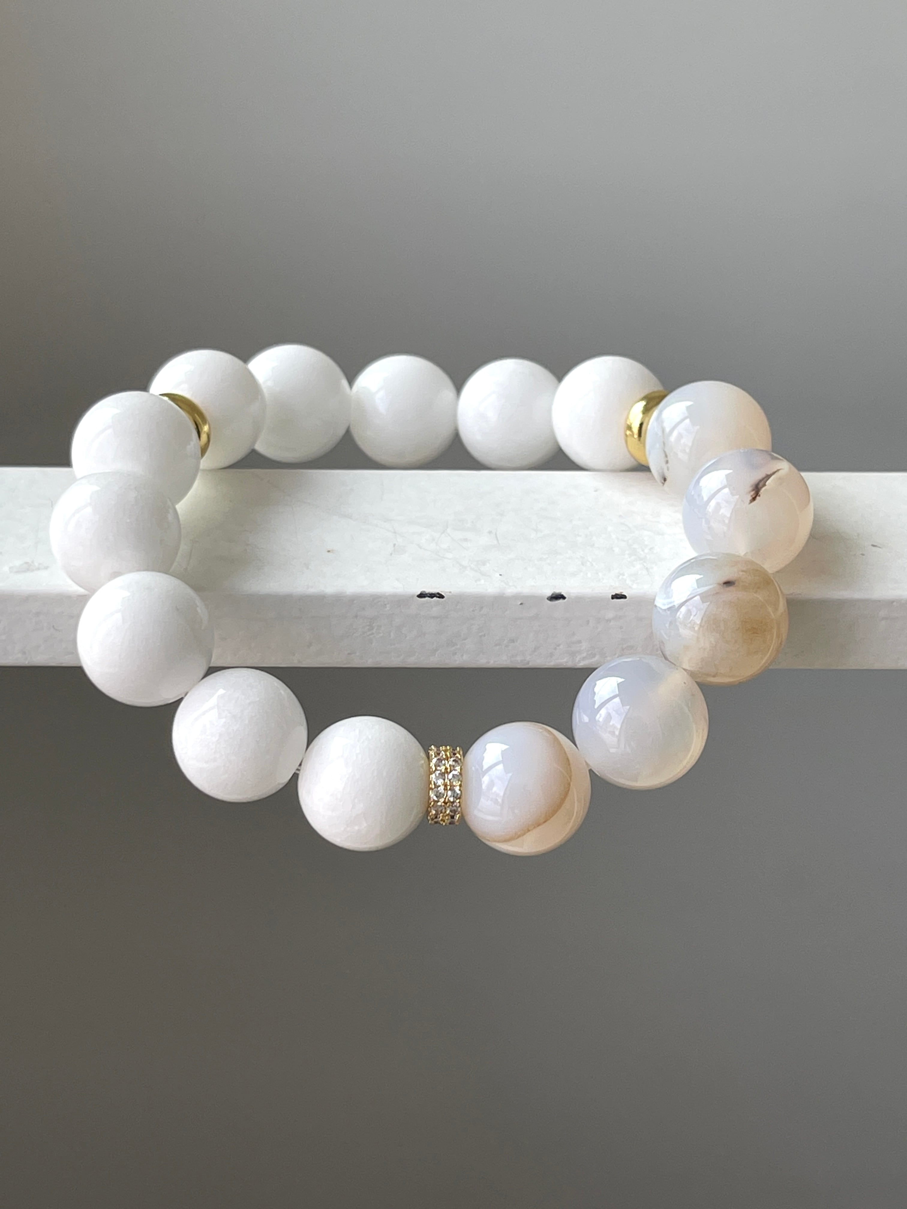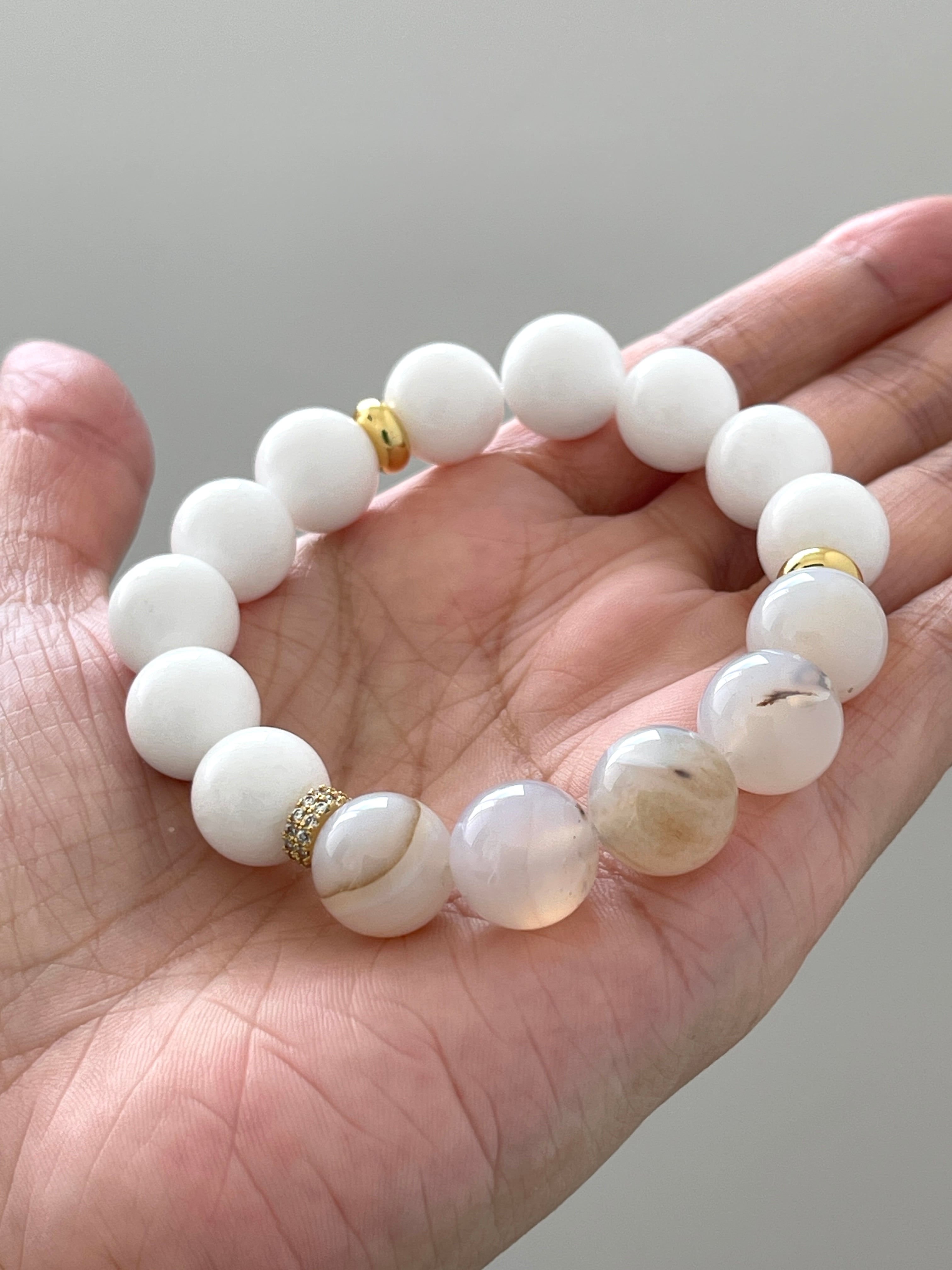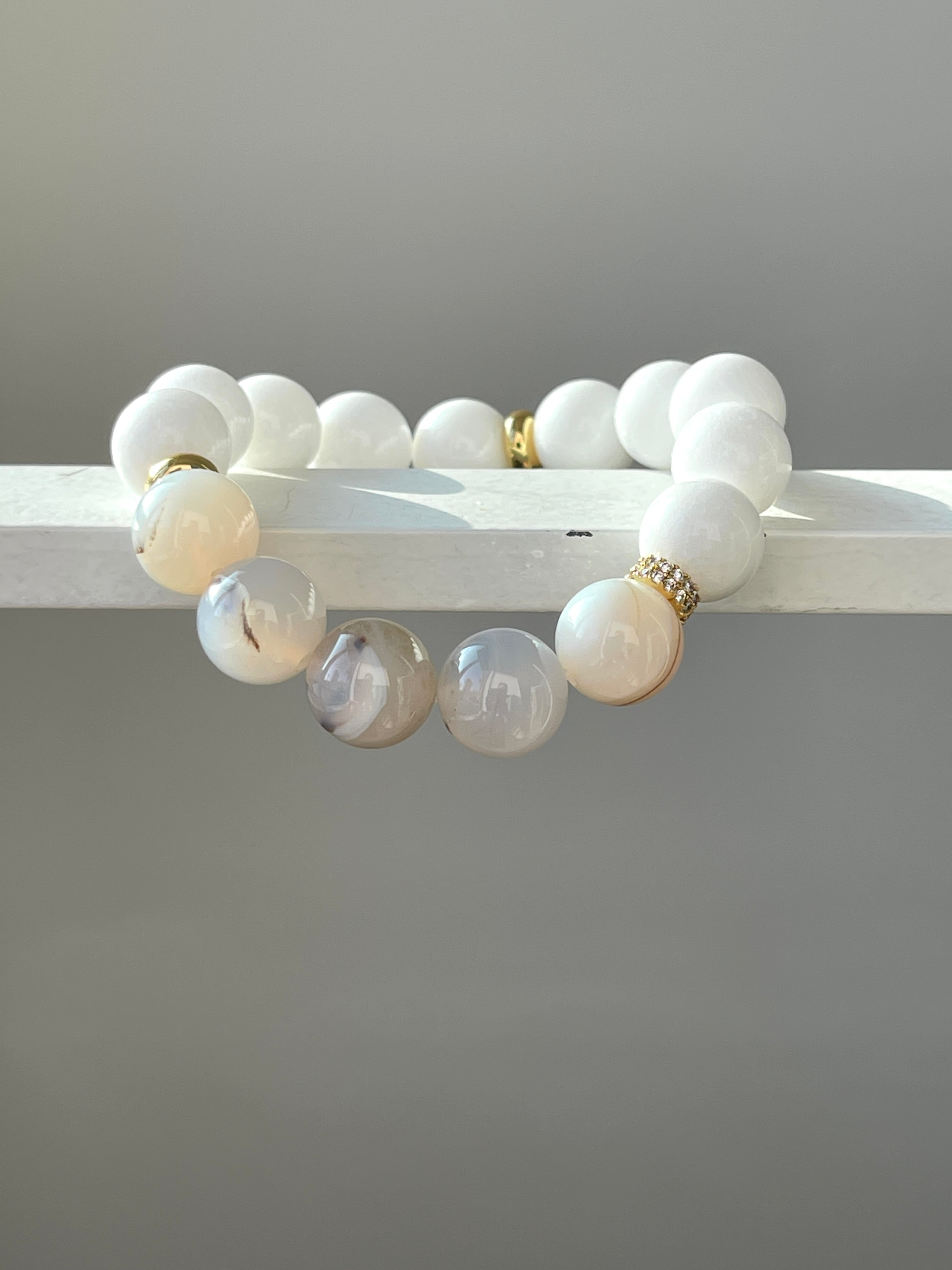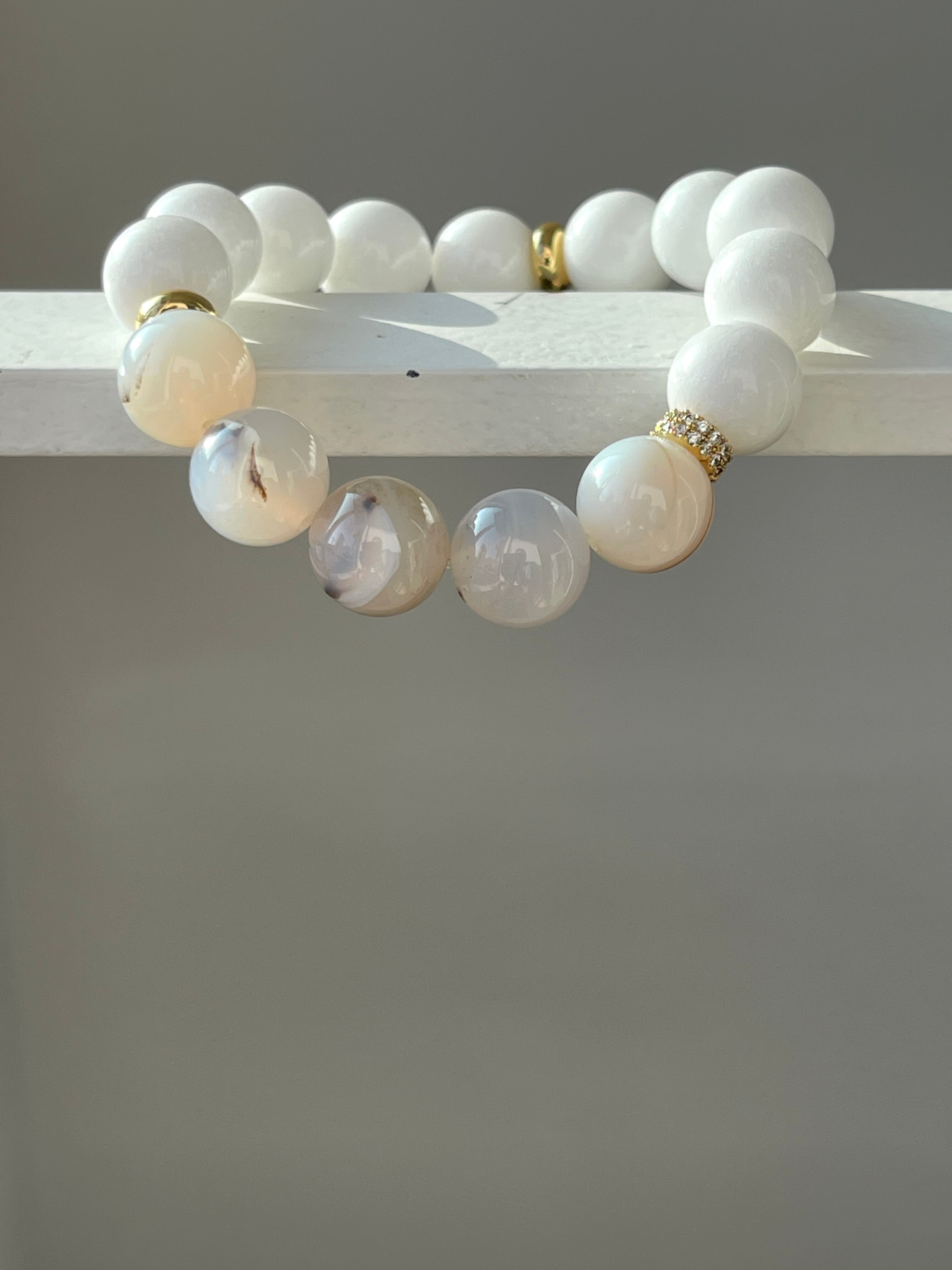 デンドライトアゲート&ホワイトクォーツァイト♡パワーストーンブレスレット