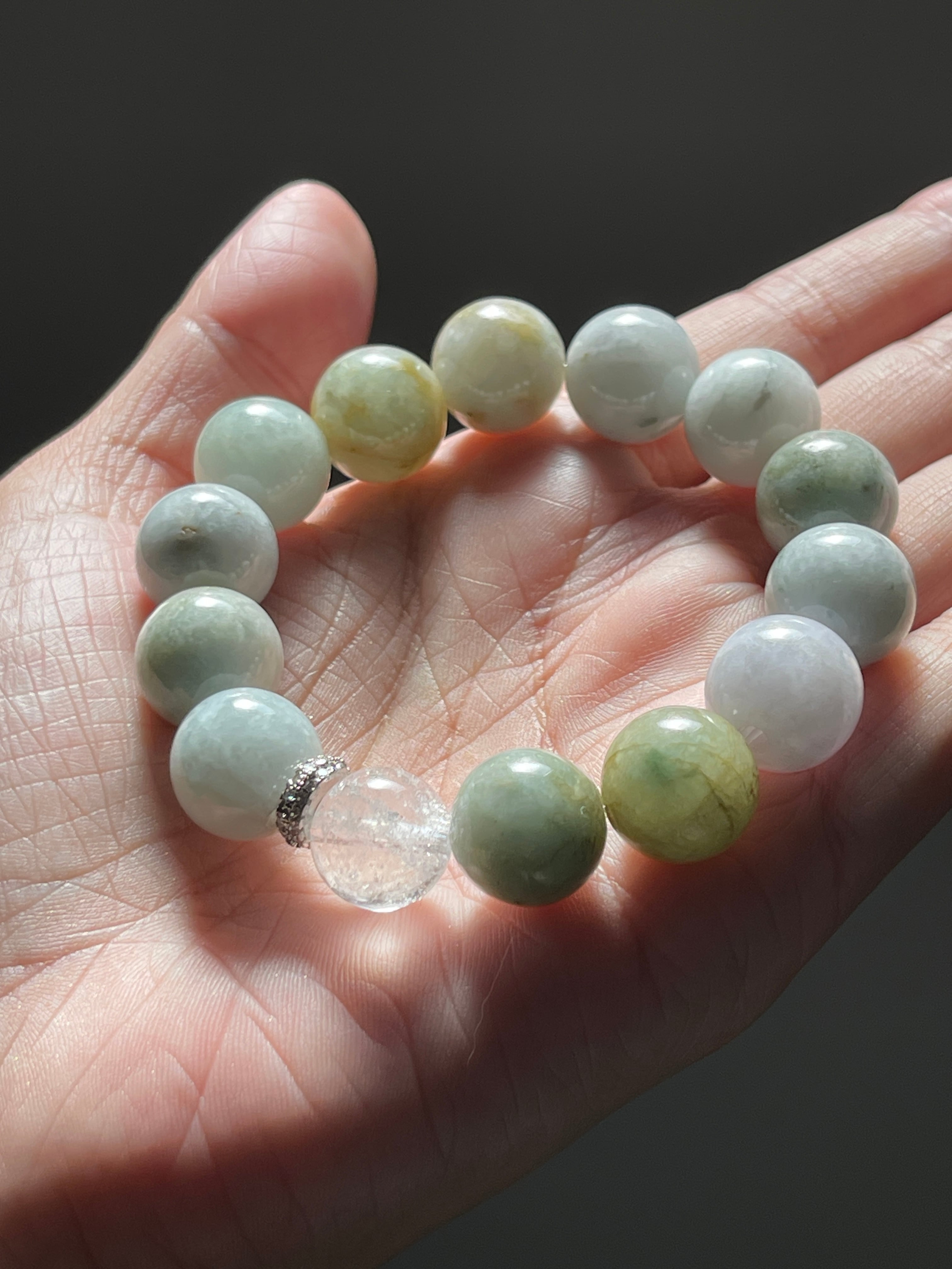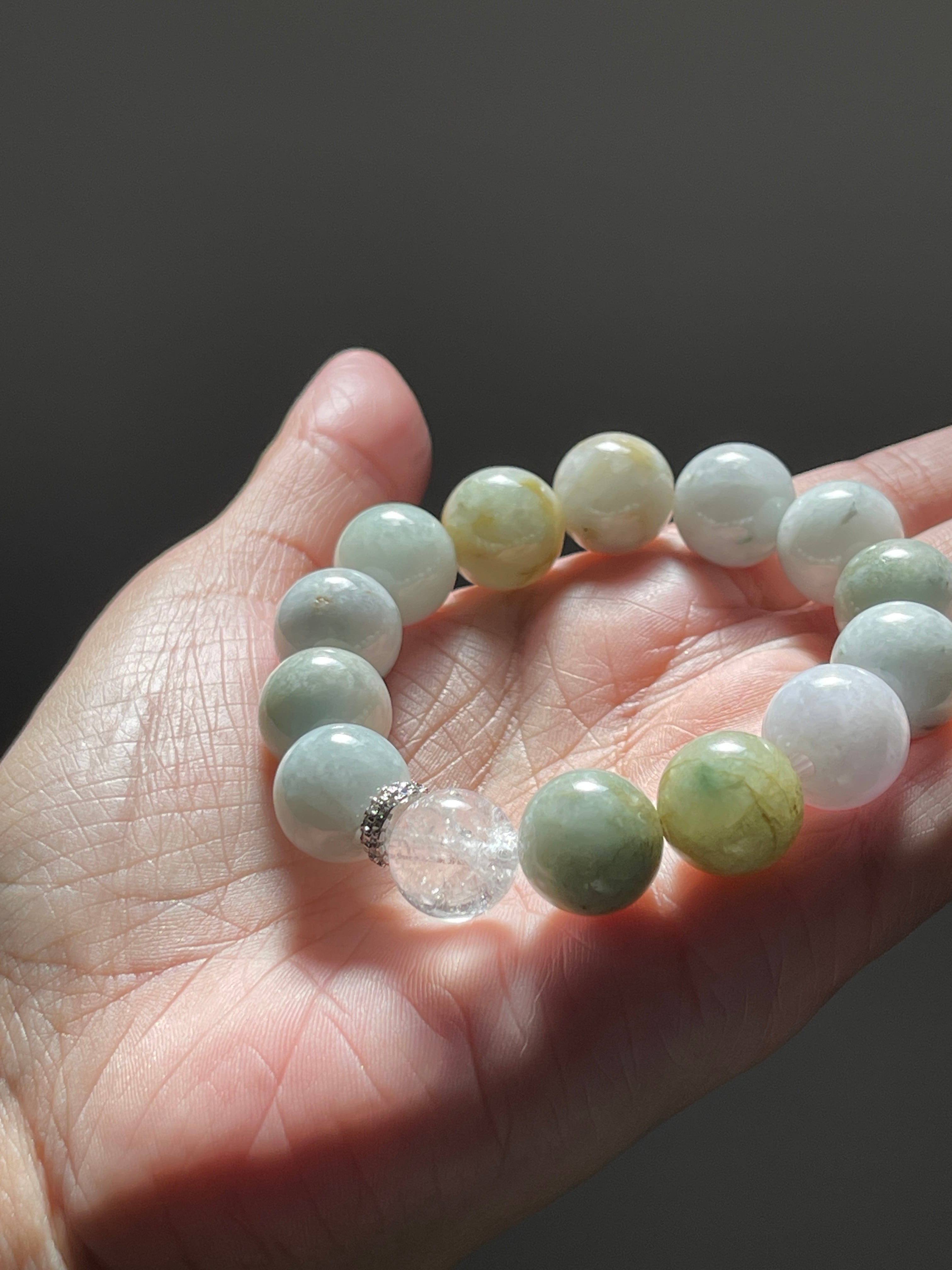 ビルマ産翡翠&ヒマラヤ水晶♡パワーストーンブレスレット【五徳あり】