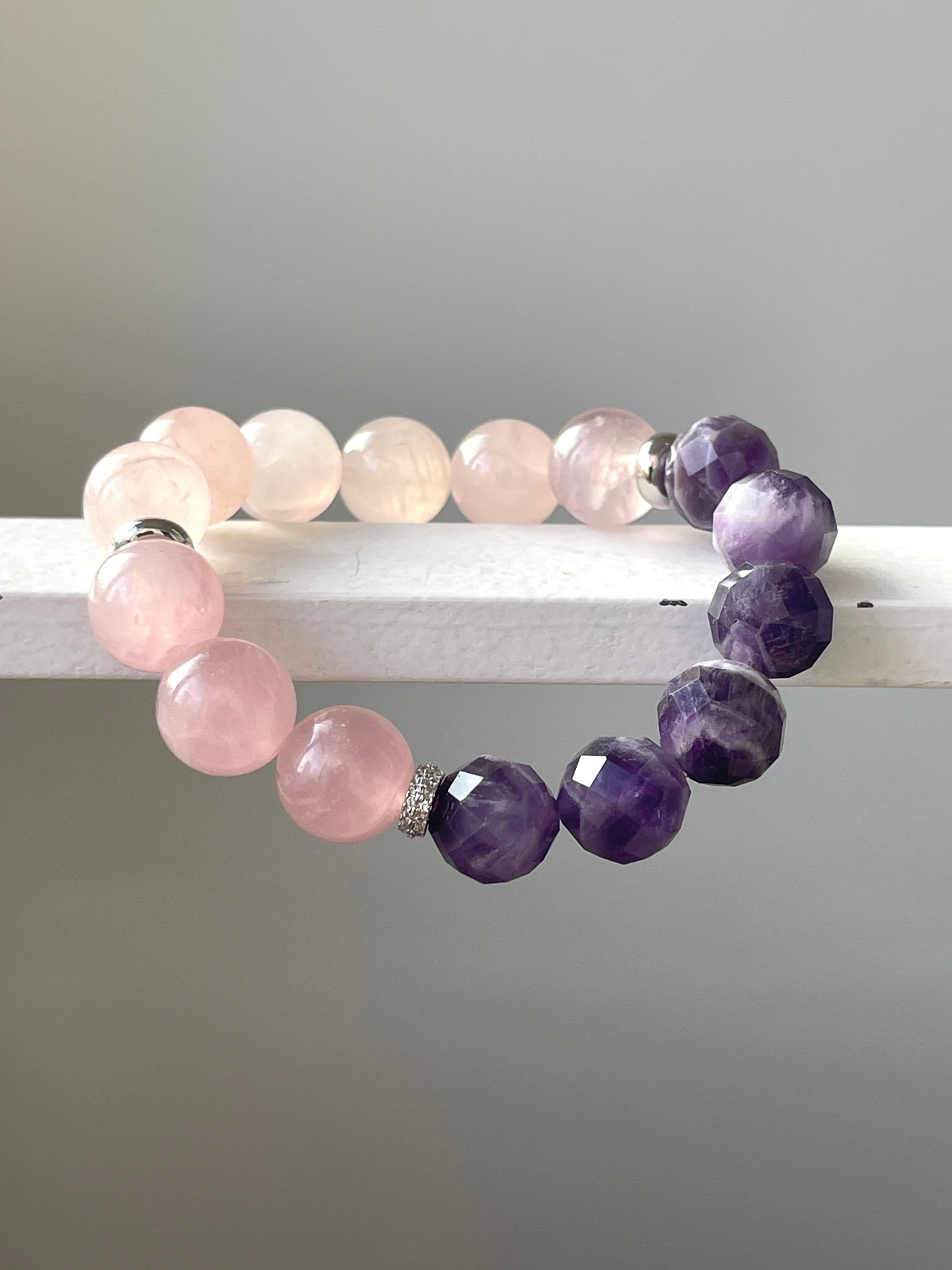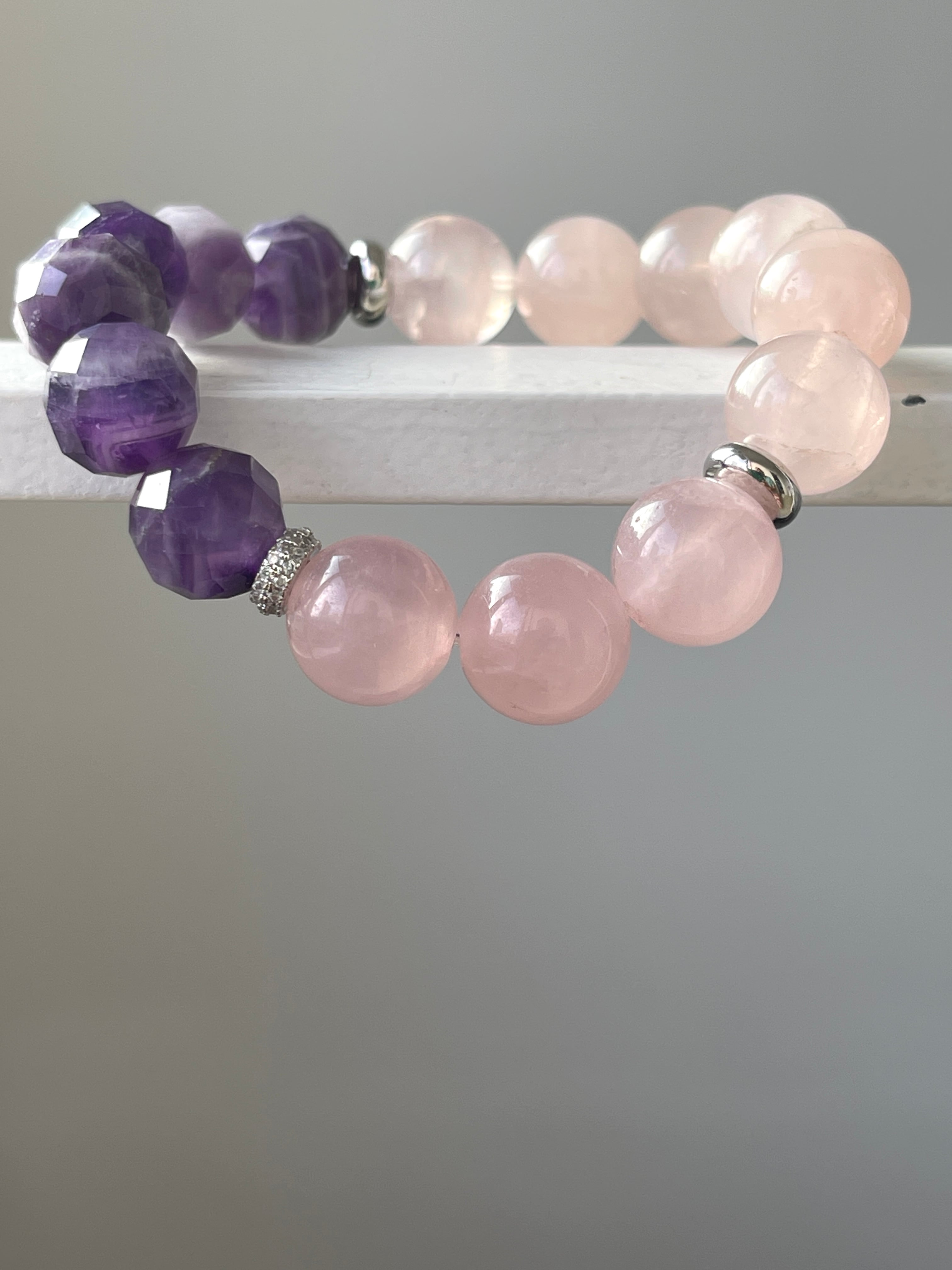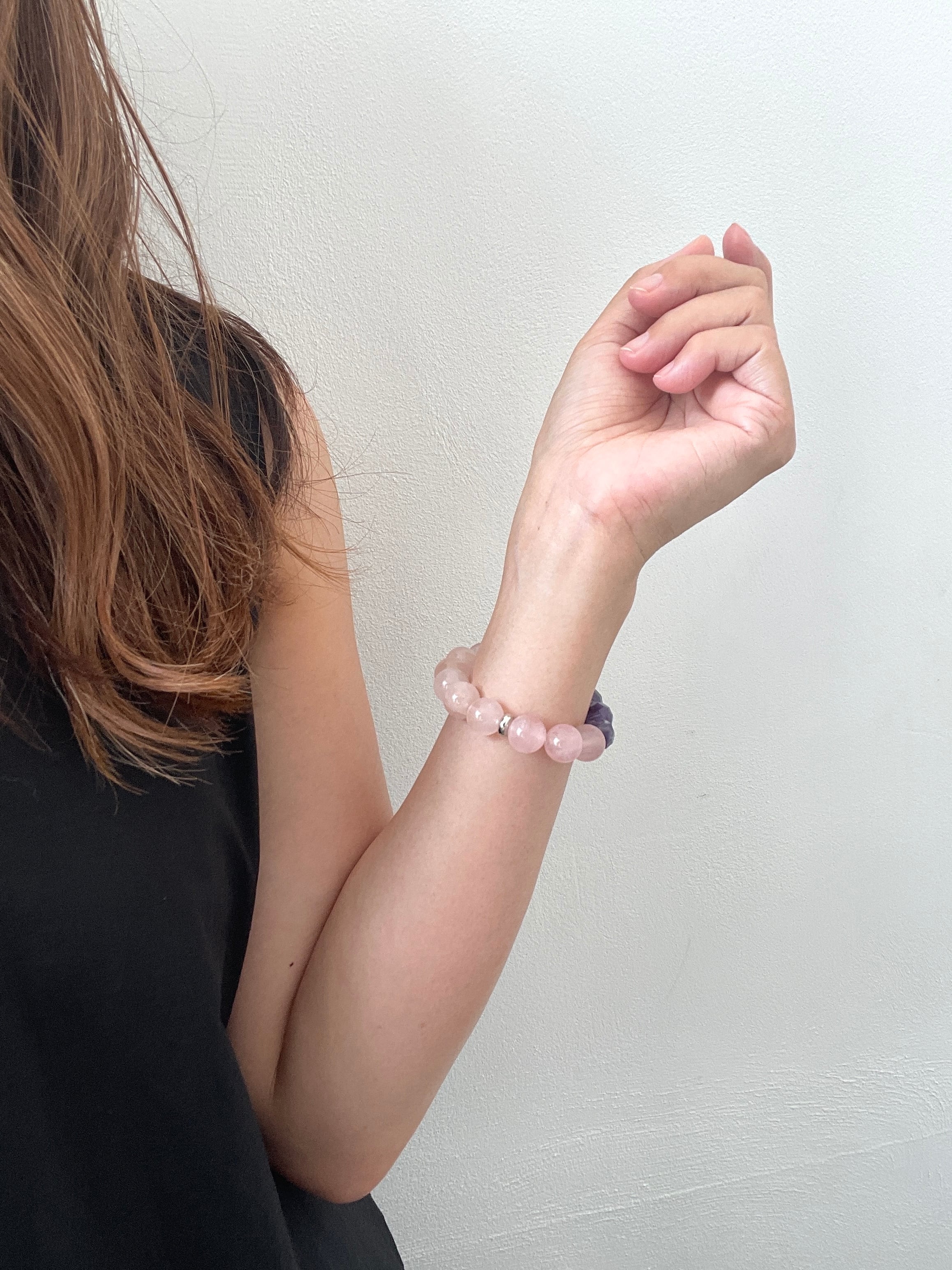 ― 愛のローズクォーツと癒しのアメジストが調和した、女性性を高めるブレスレット