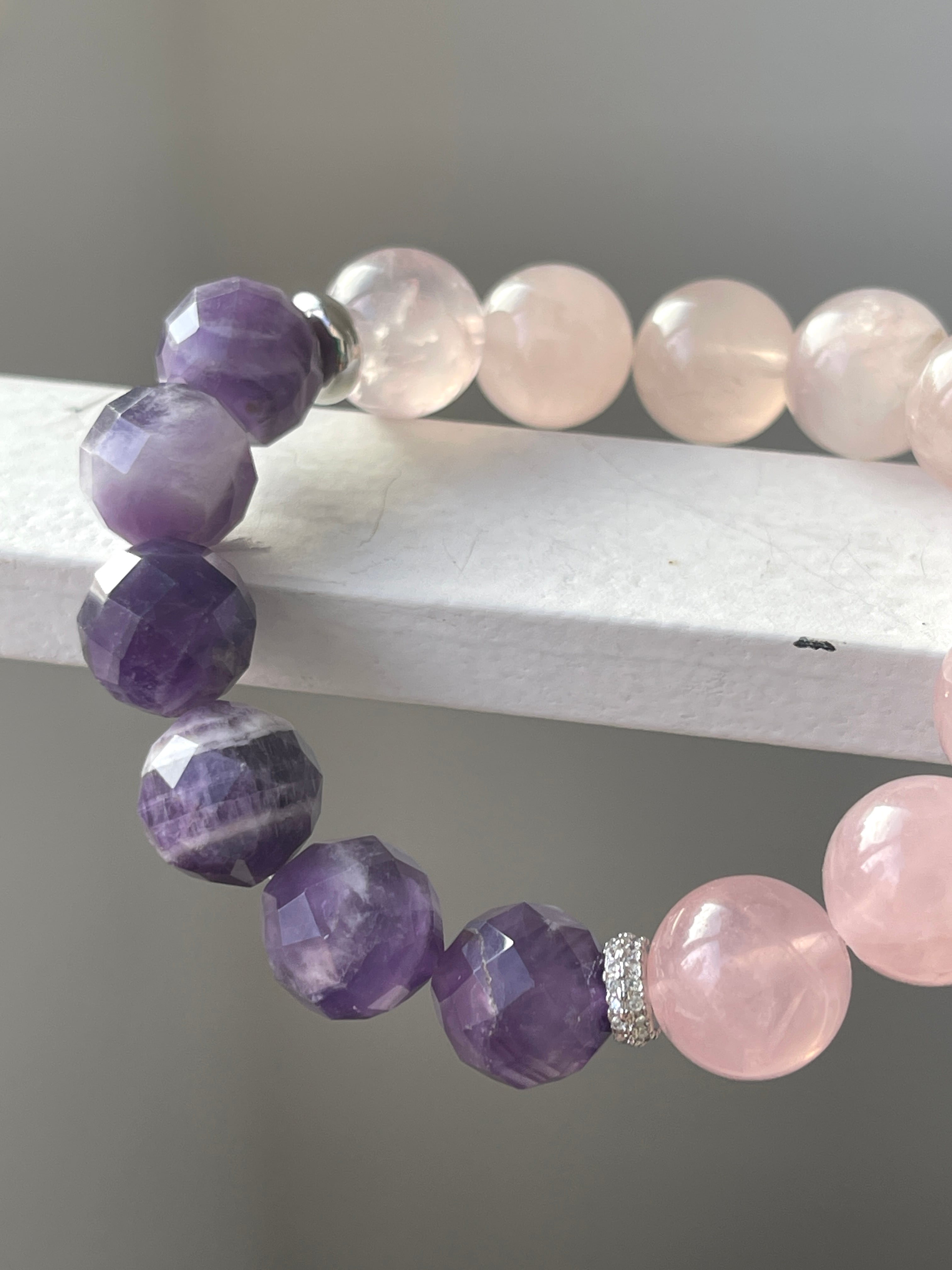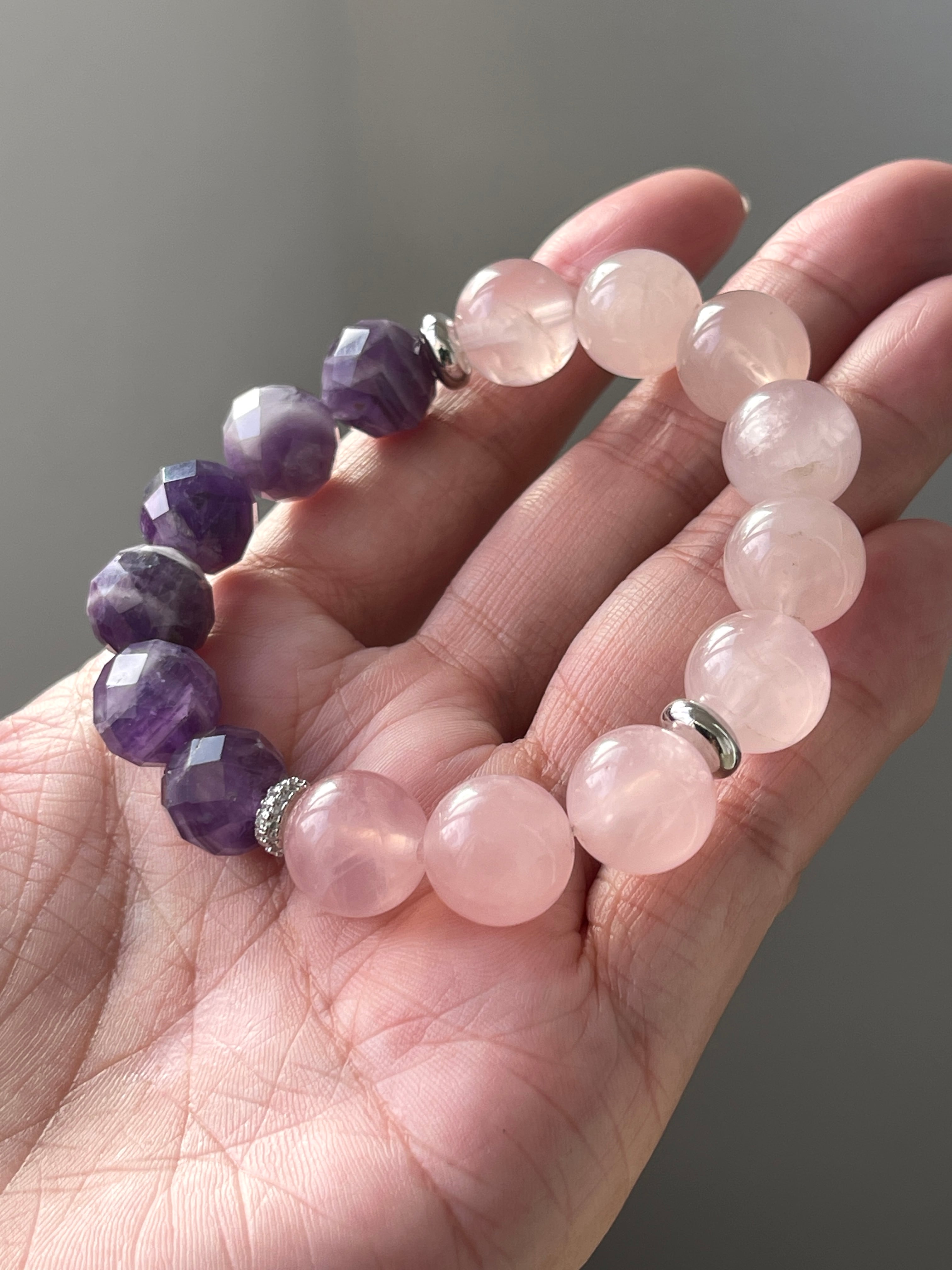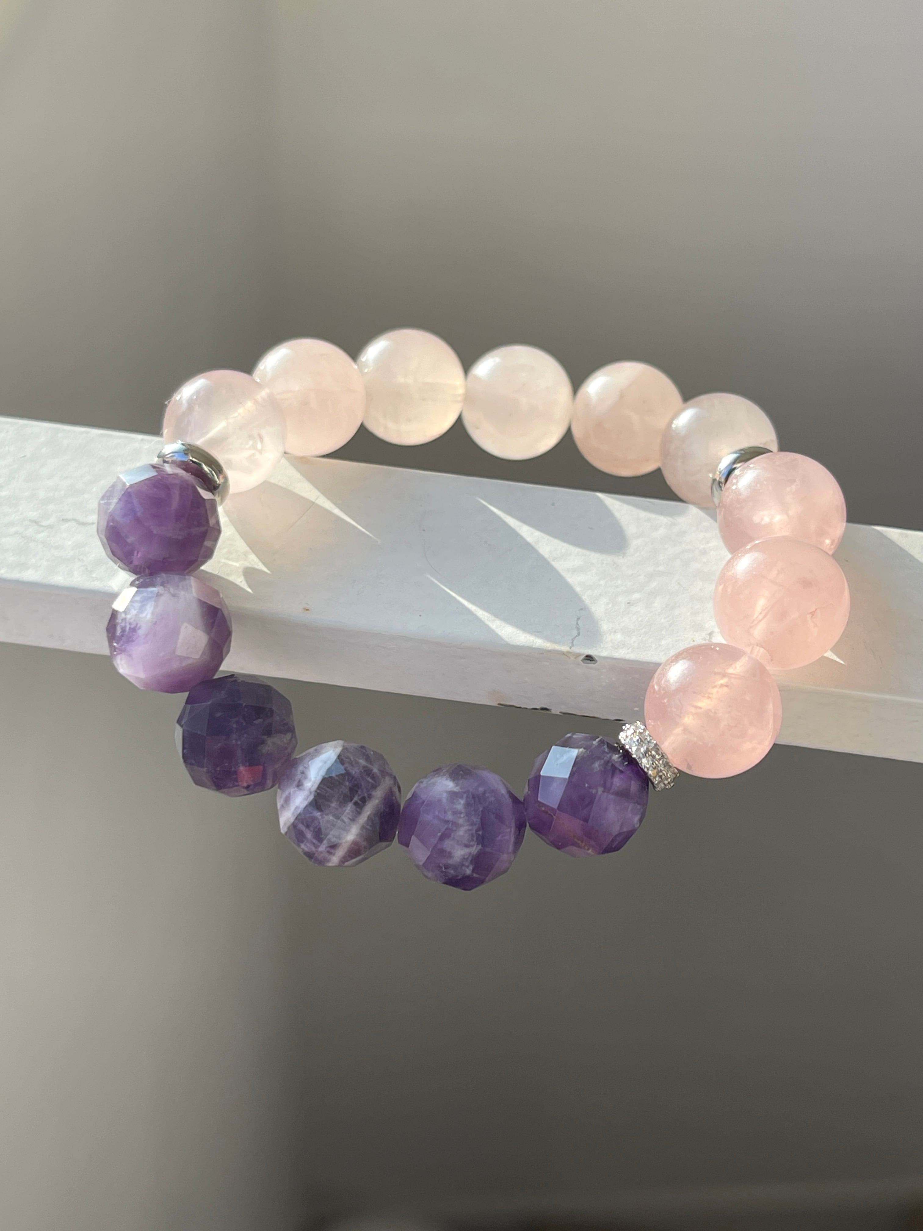 ― 愛のローズクォーツと癒しのアメジストが調和した、女性性を高めるブレスレット