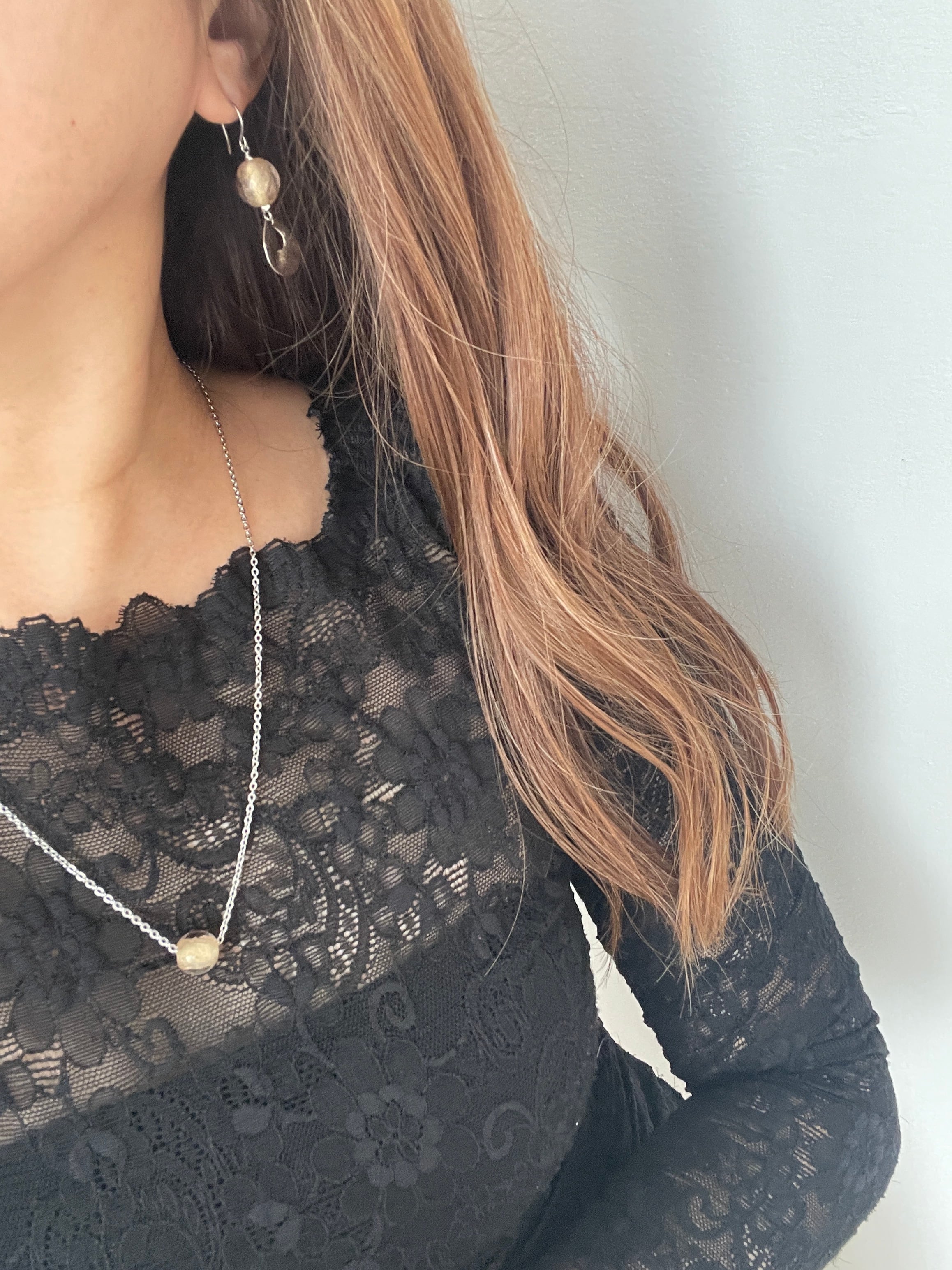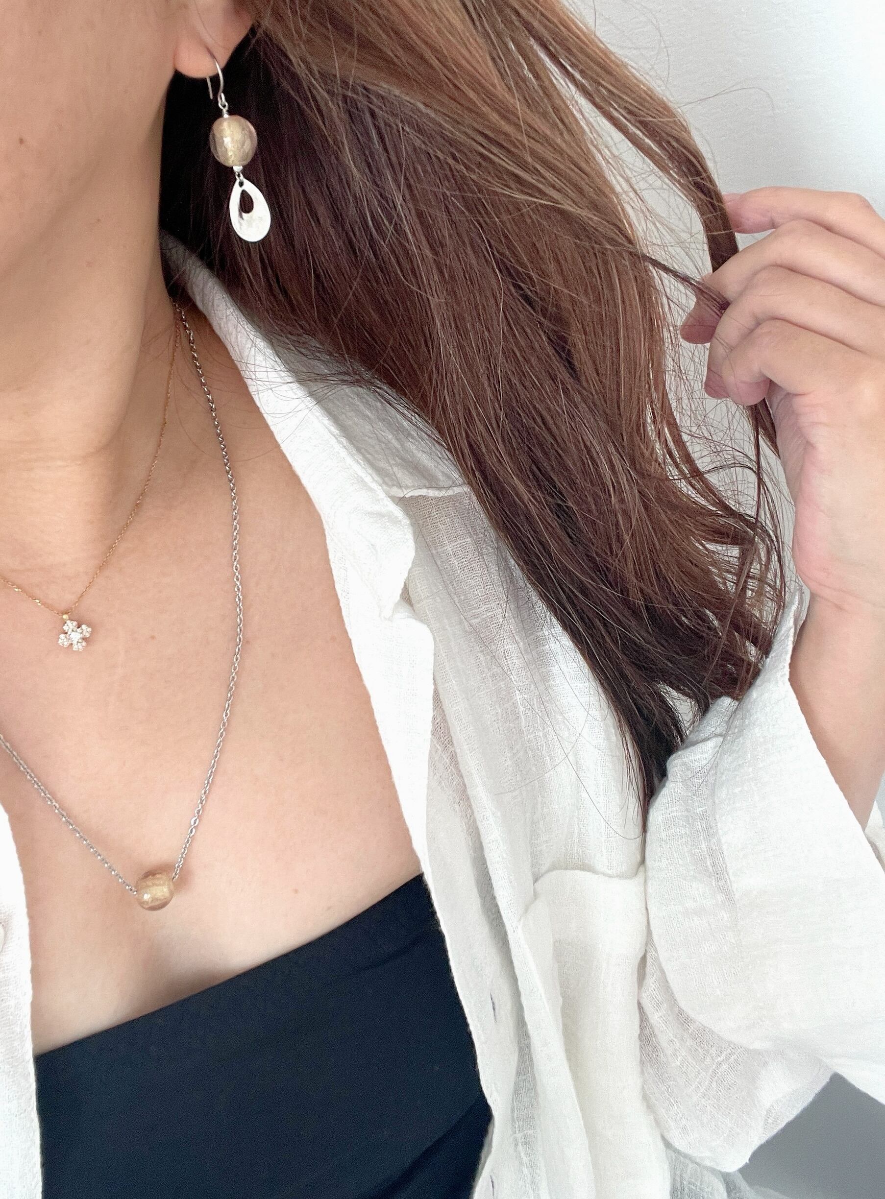 華やかで涼しげ、大人女性の個性を引き立たせてくれる品の良いピアスとネックレス。