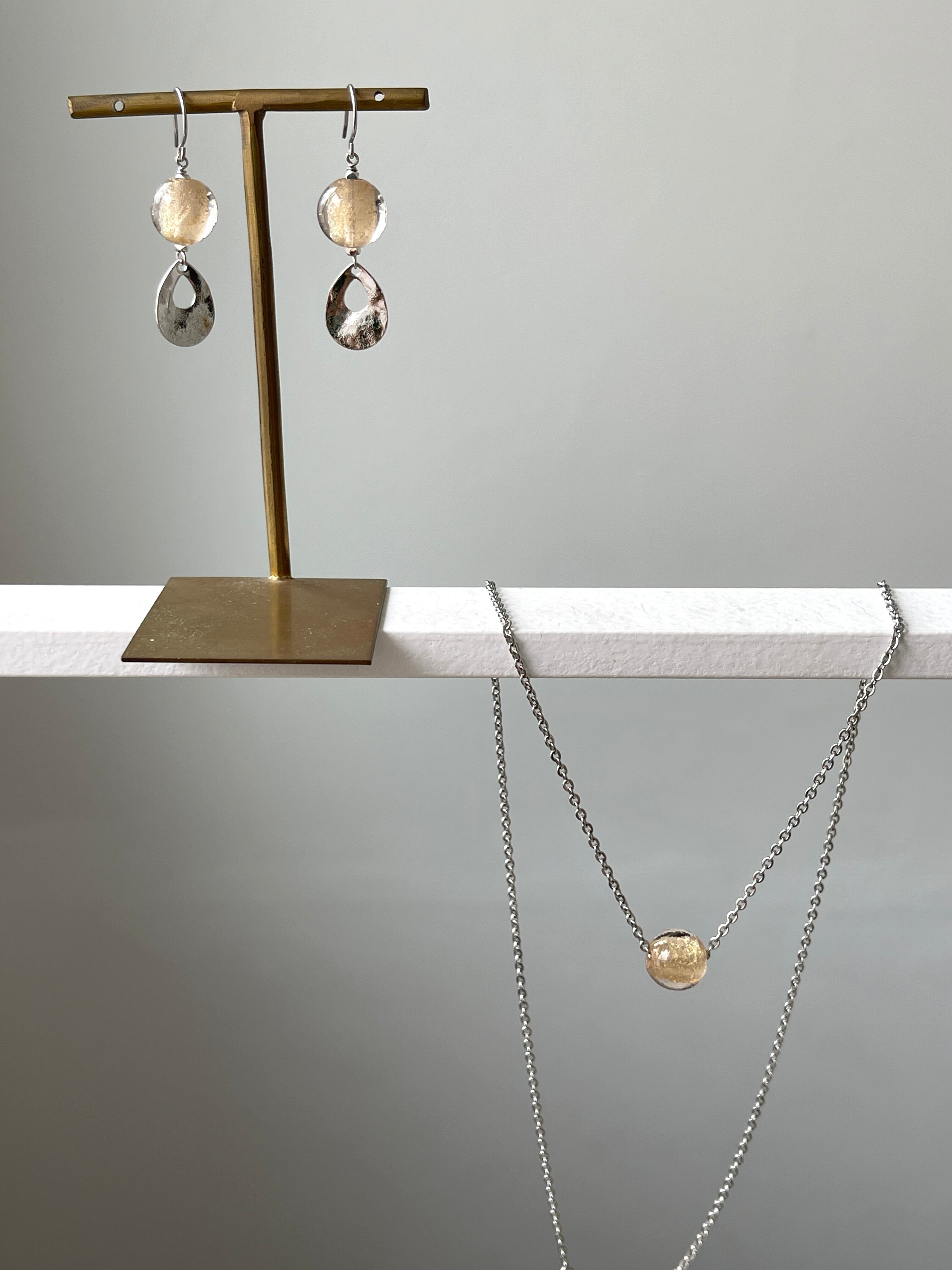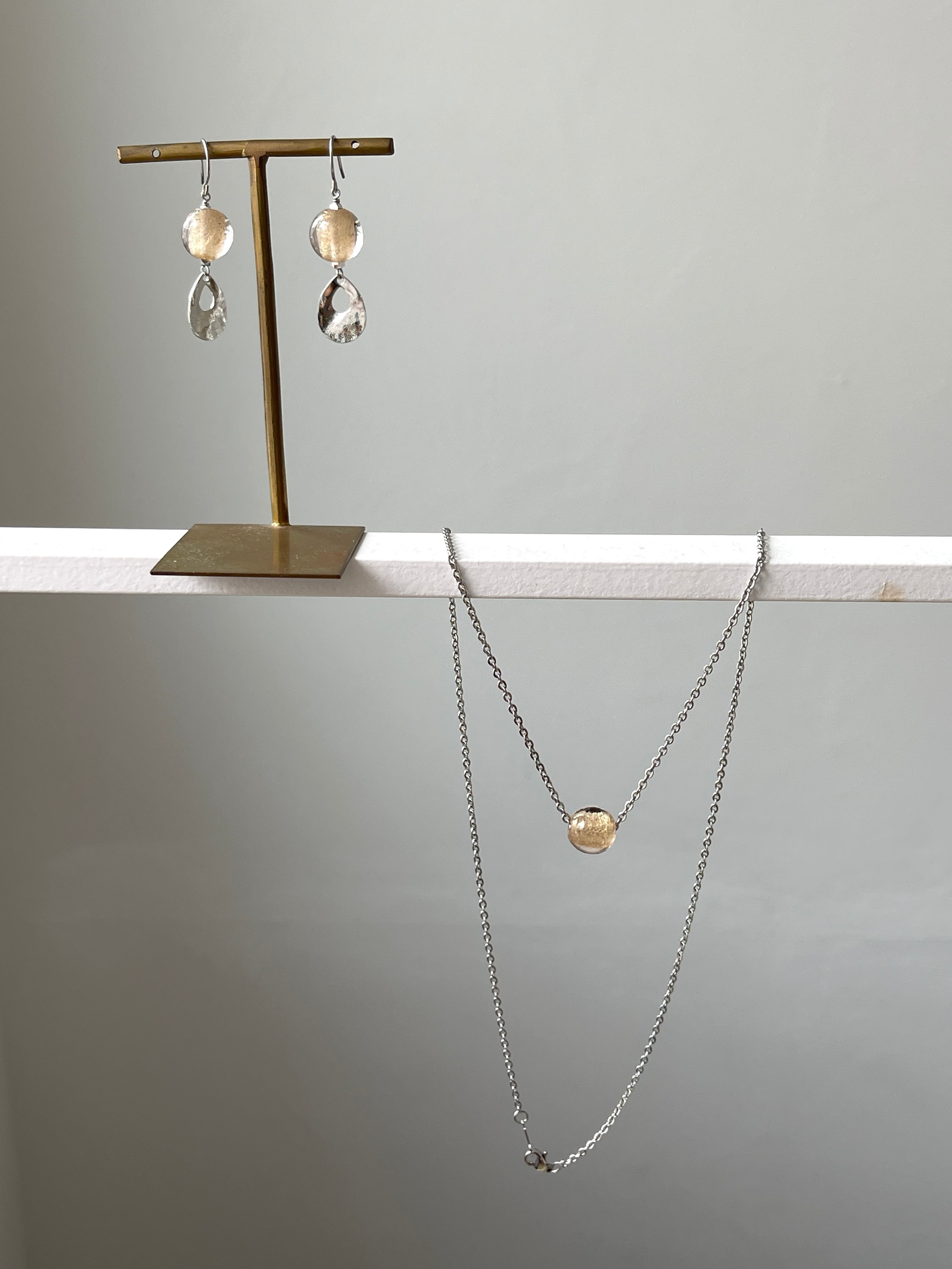 【金箔】とんぼ玉ネックレス&ピアス♡set