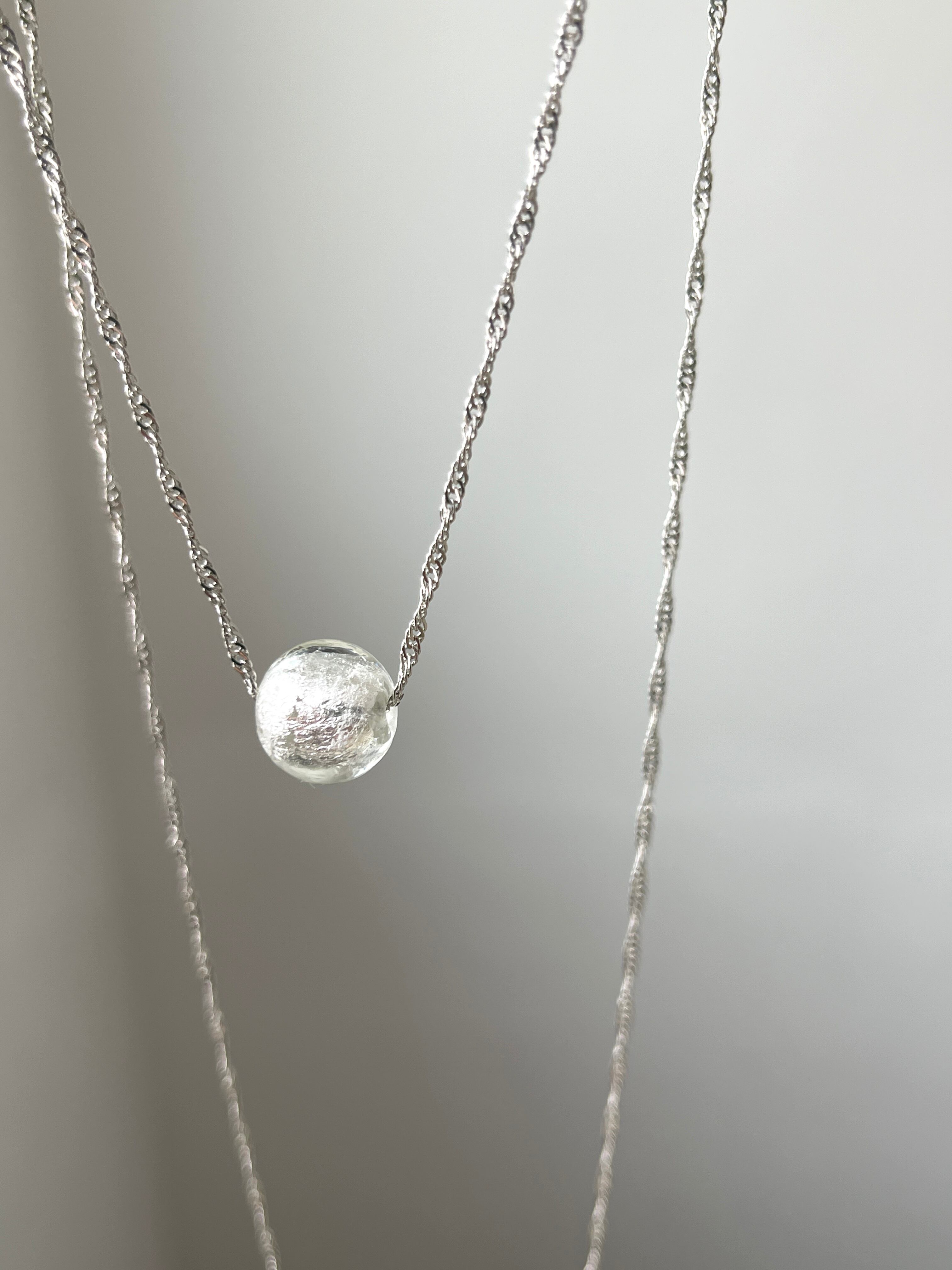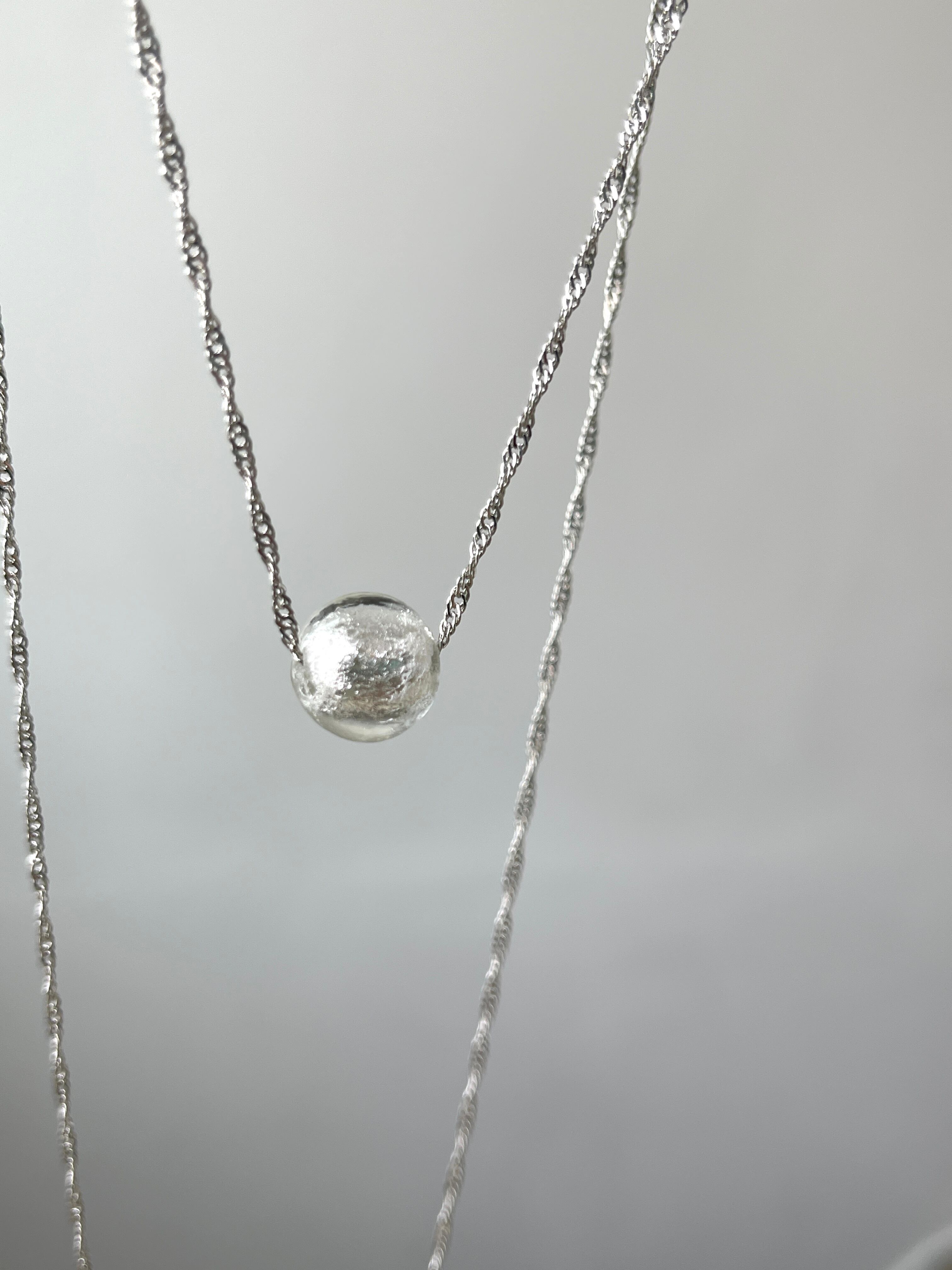 【銀箔】とんぼ玉ネックレス&ピアス♡set