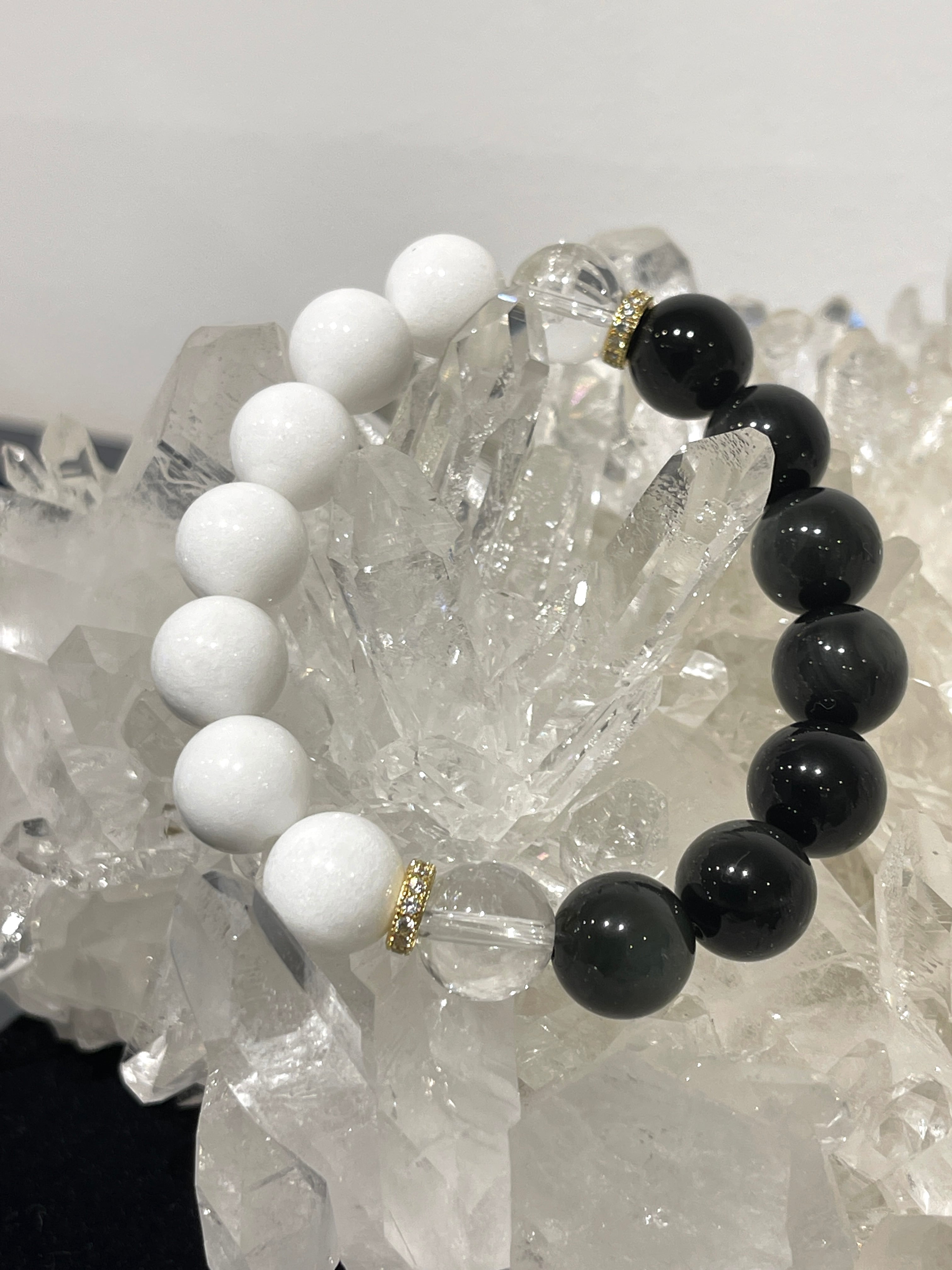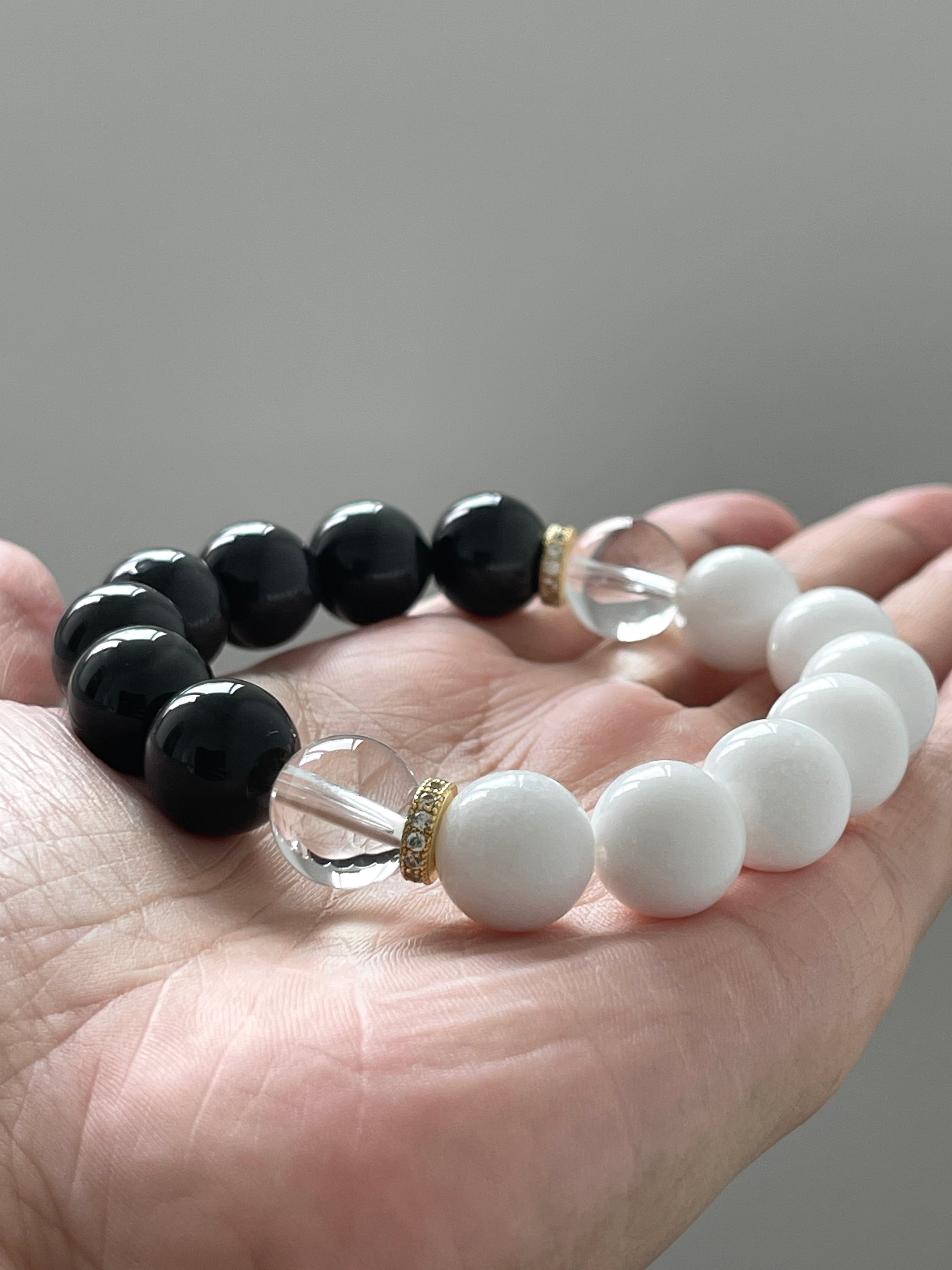 【陰と陽の調和】黒と白♡パワーストーンブレスレット