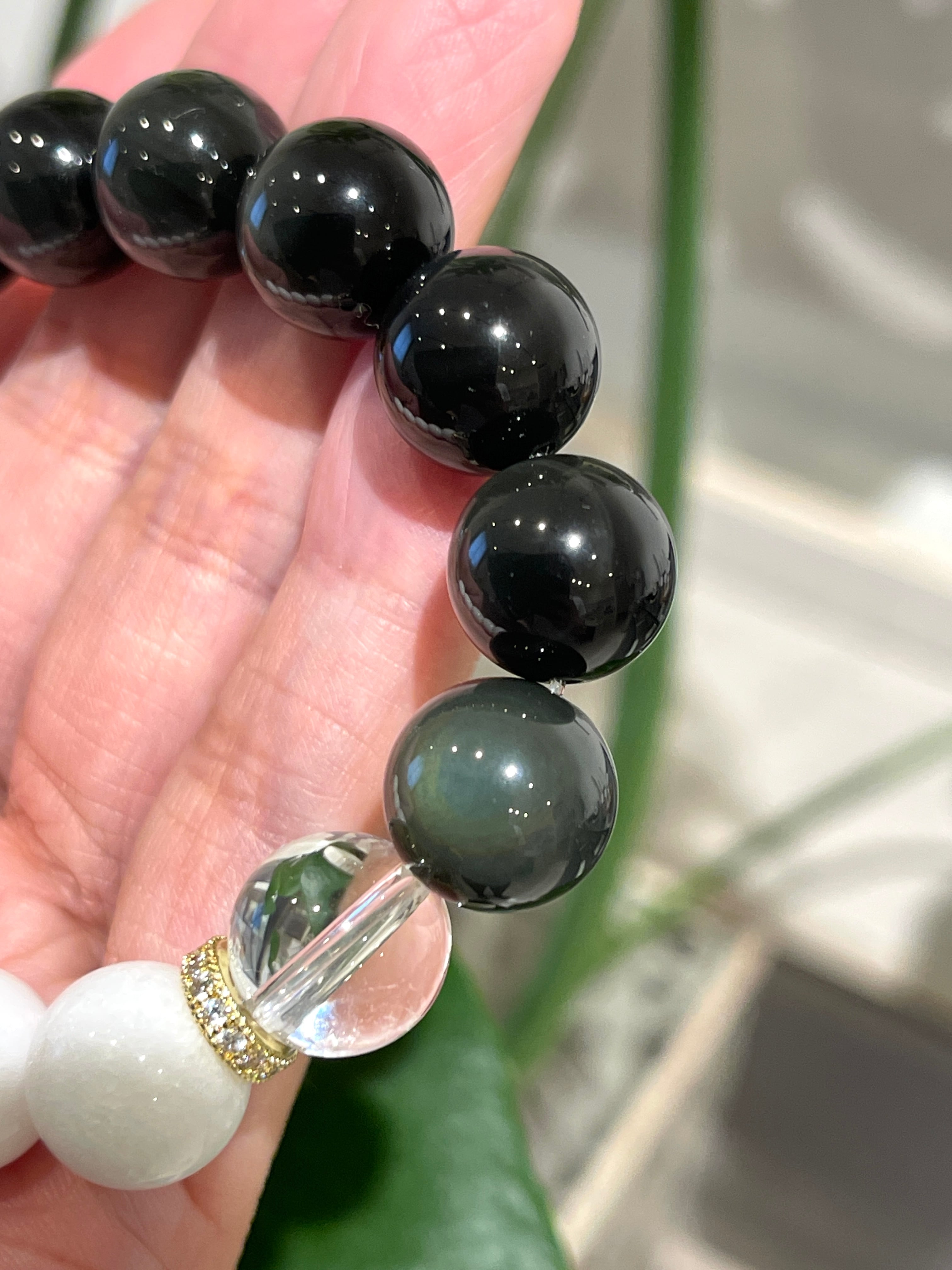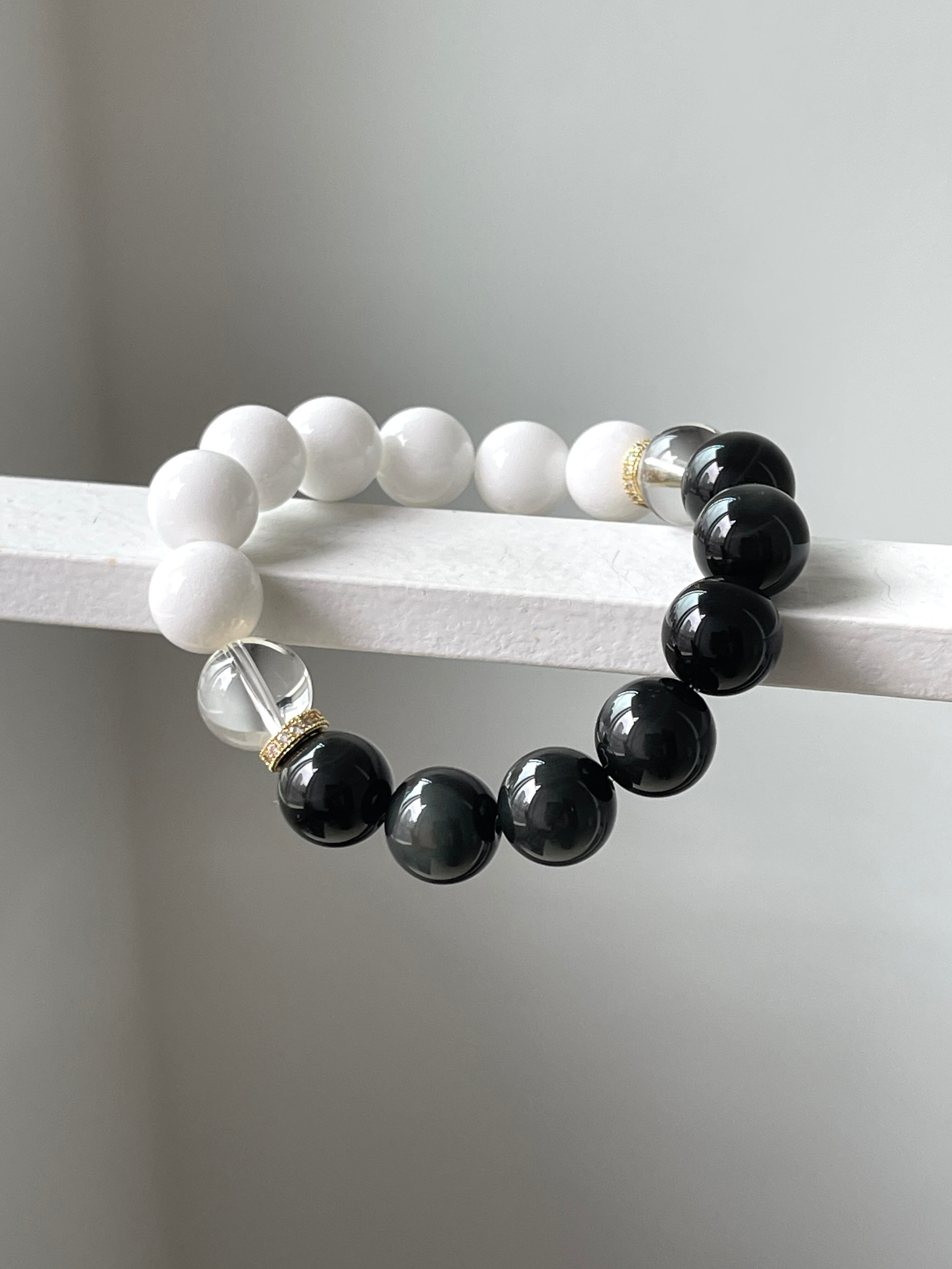 このブレスレットは、相反するエネルギーを内に秘め、持ち主の心と魂に深いバランスをもたらします。