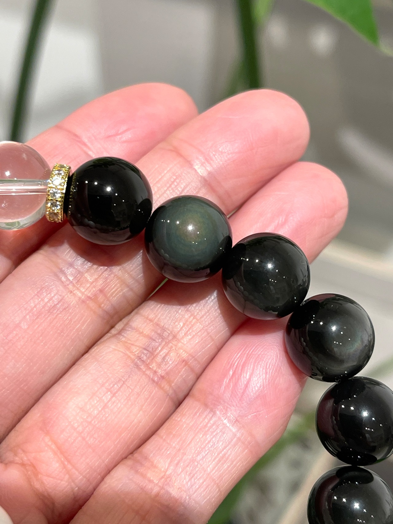 レインボーオブシディアンとクォーツァイトの持つエネルギーは、まるで宇宙の陰と陽。
