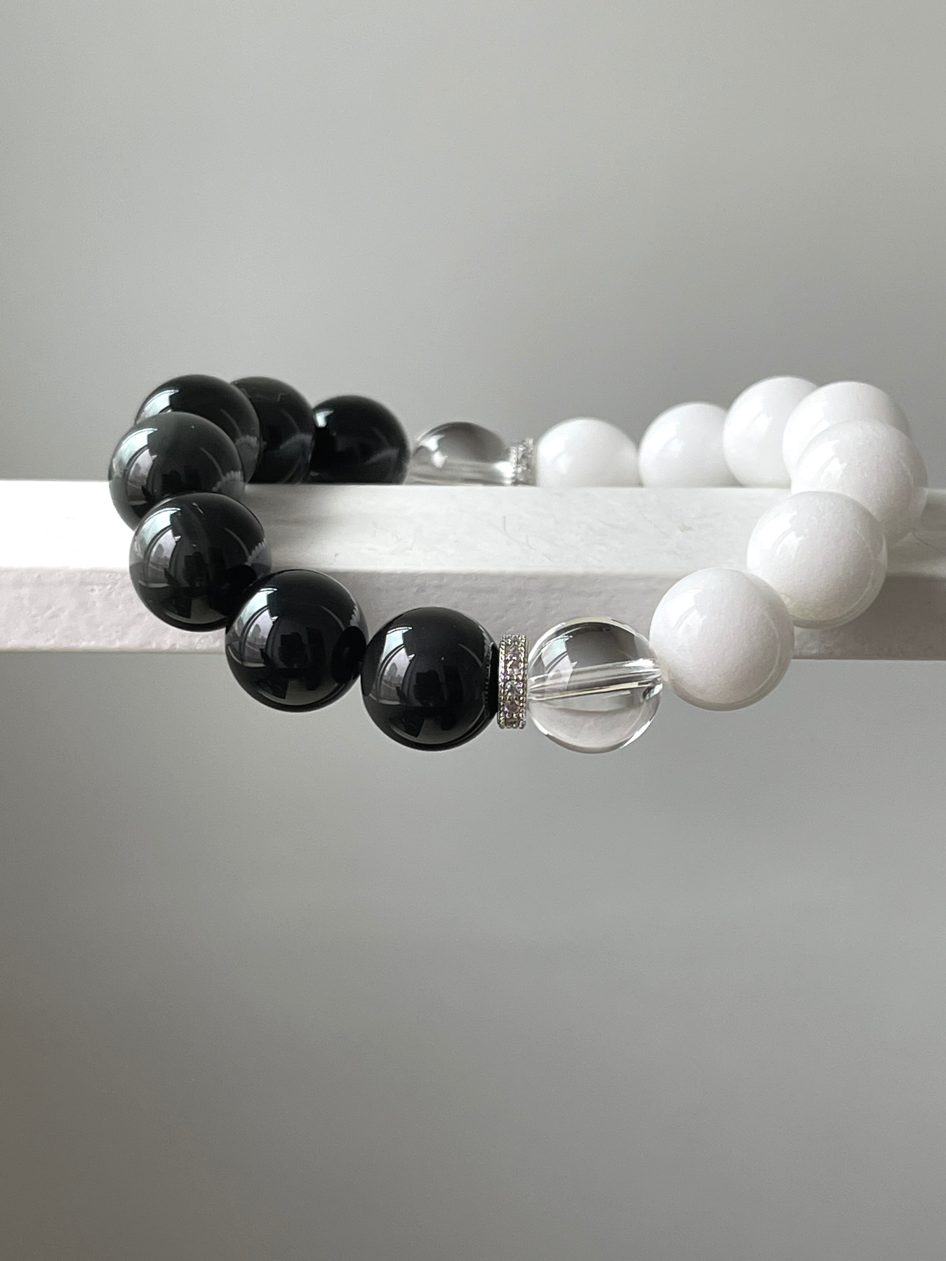 【陰と陽の調和】黒と白♡パワーストーンブレスレット