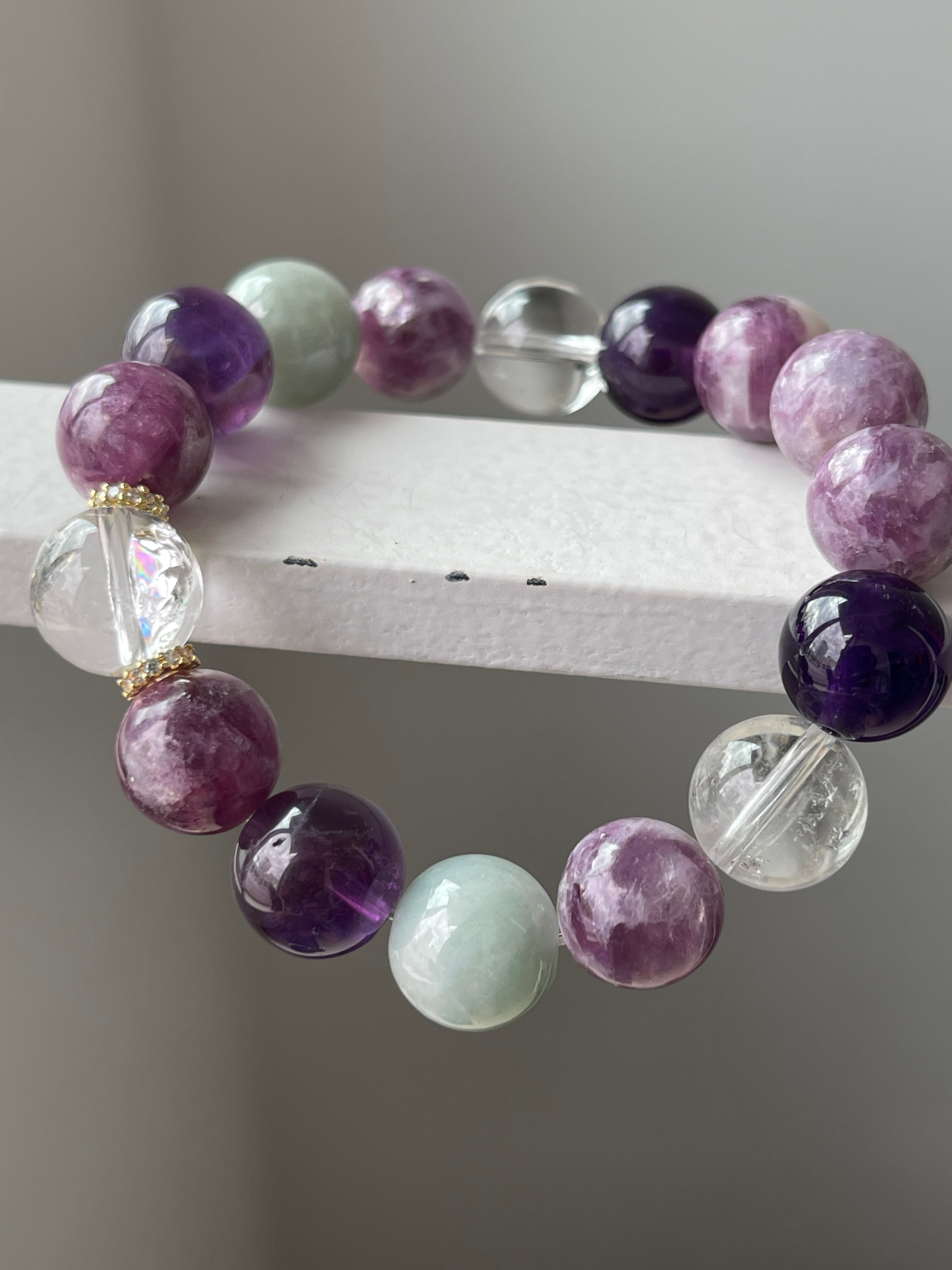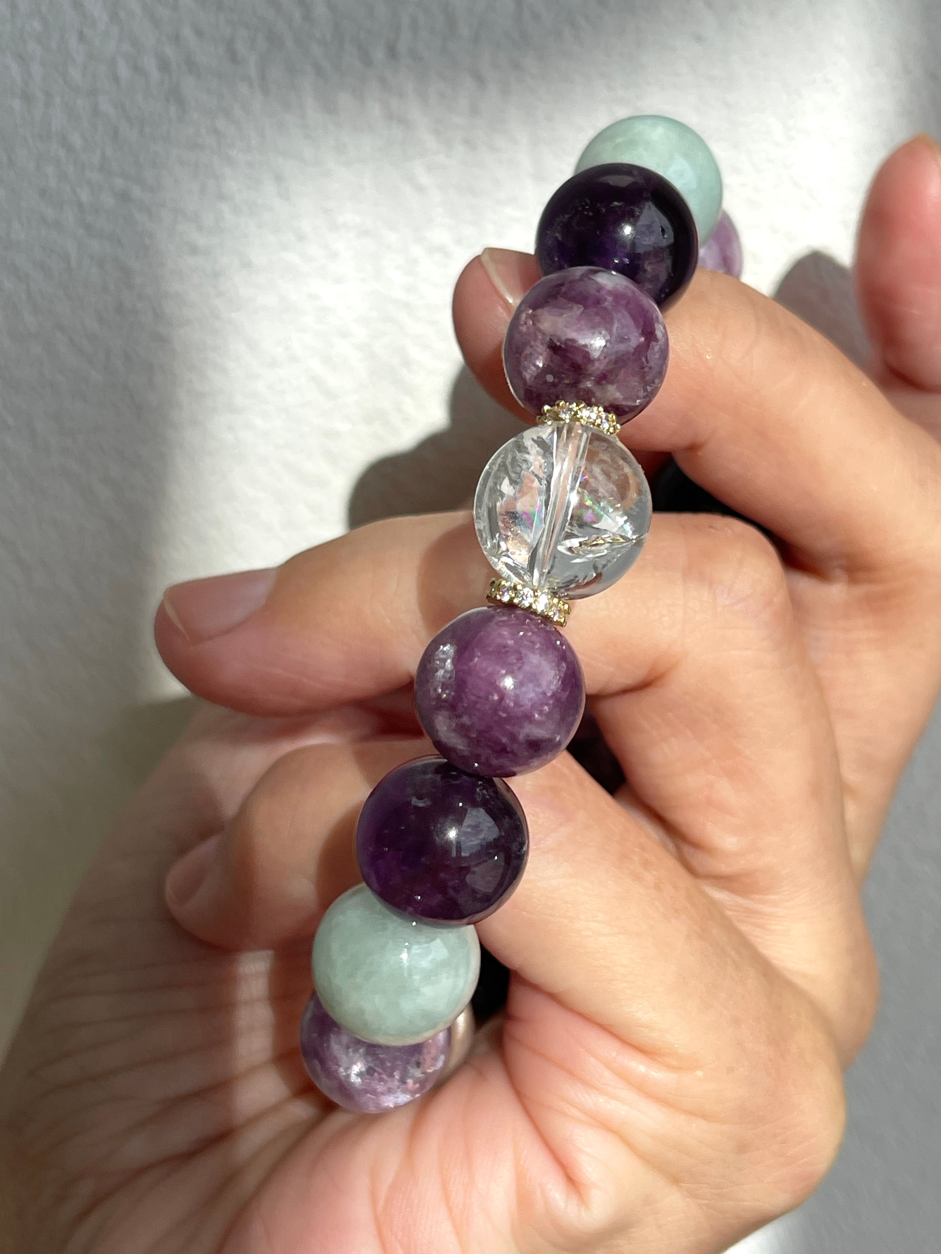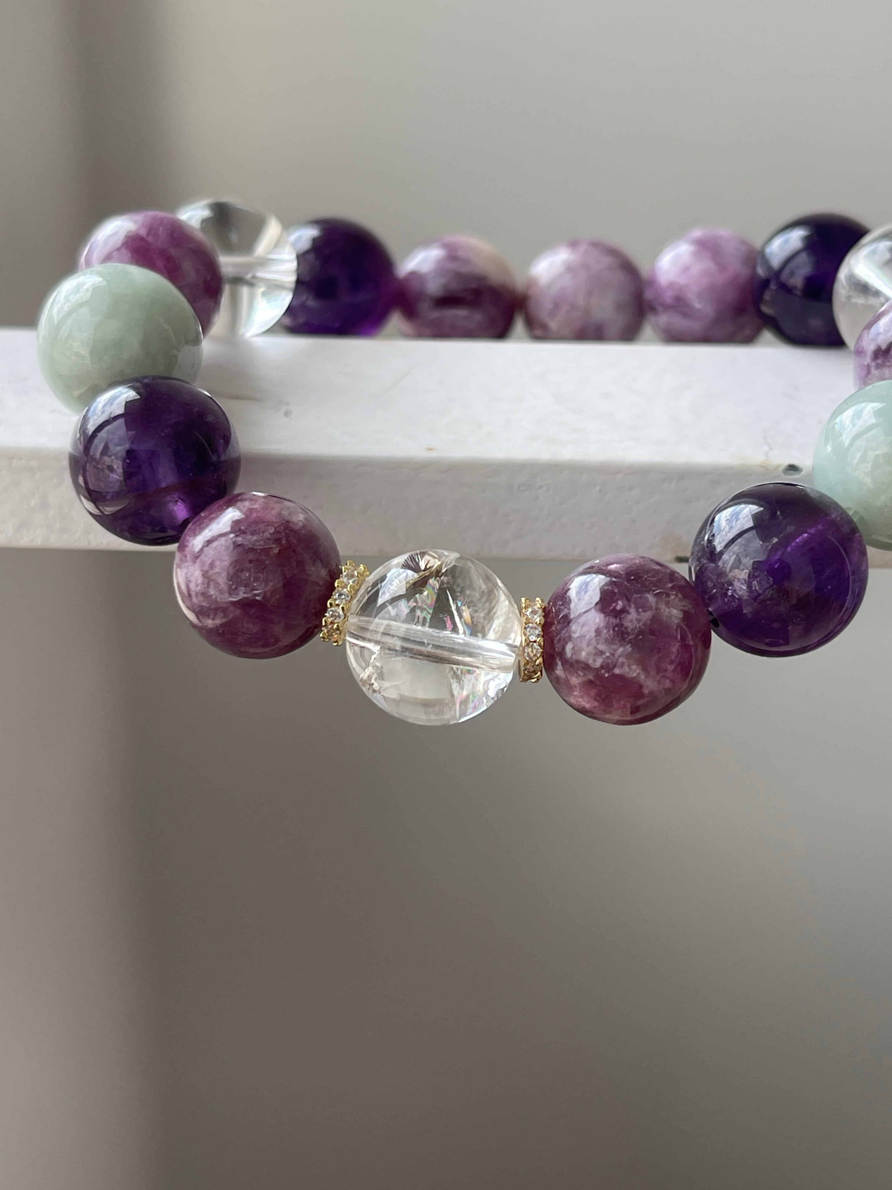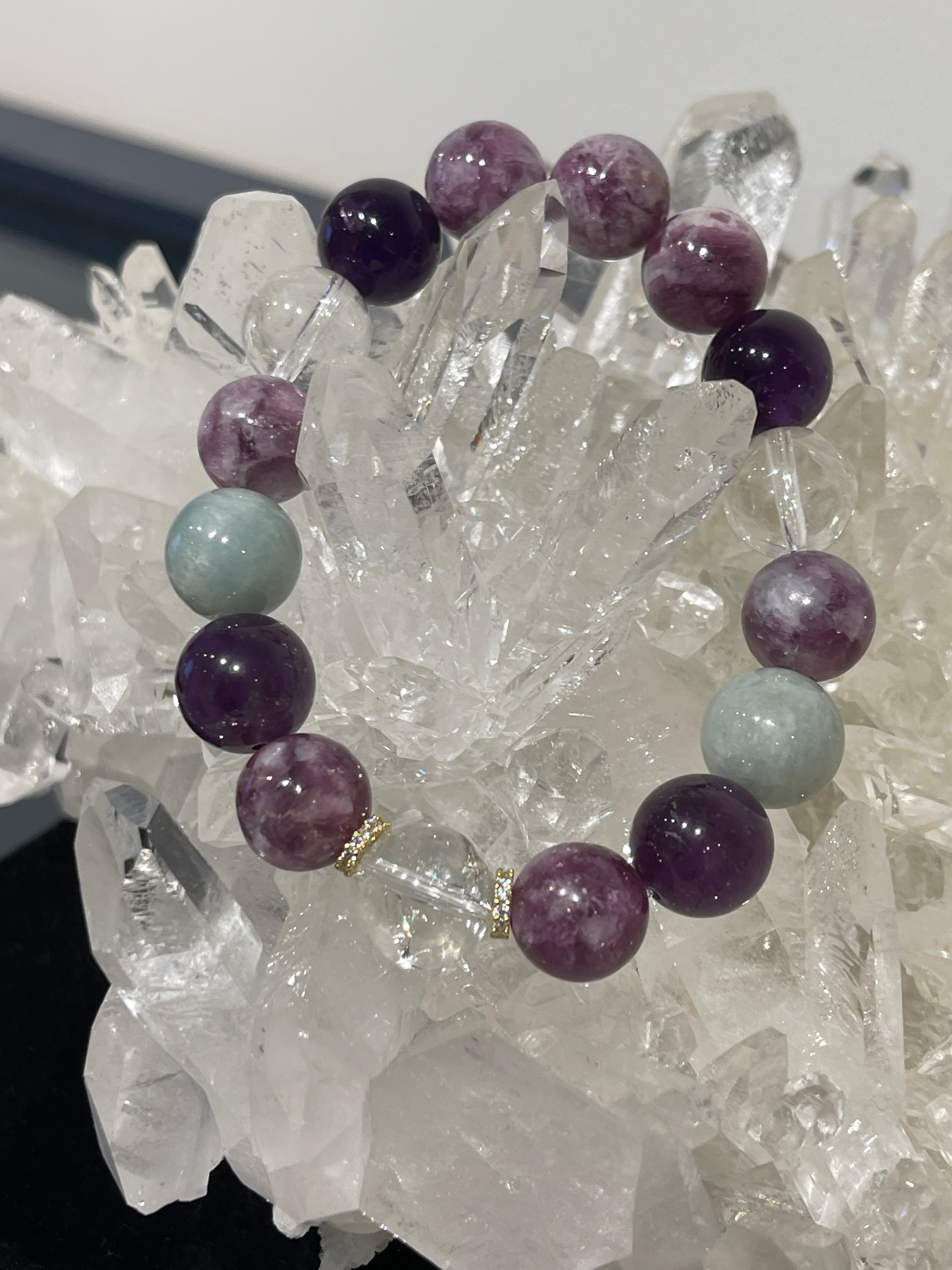 【人生の転機を迎えた貴方に♪】レピドライトシリカ&アイリスクォーツ♡パワーストーンブレスレット