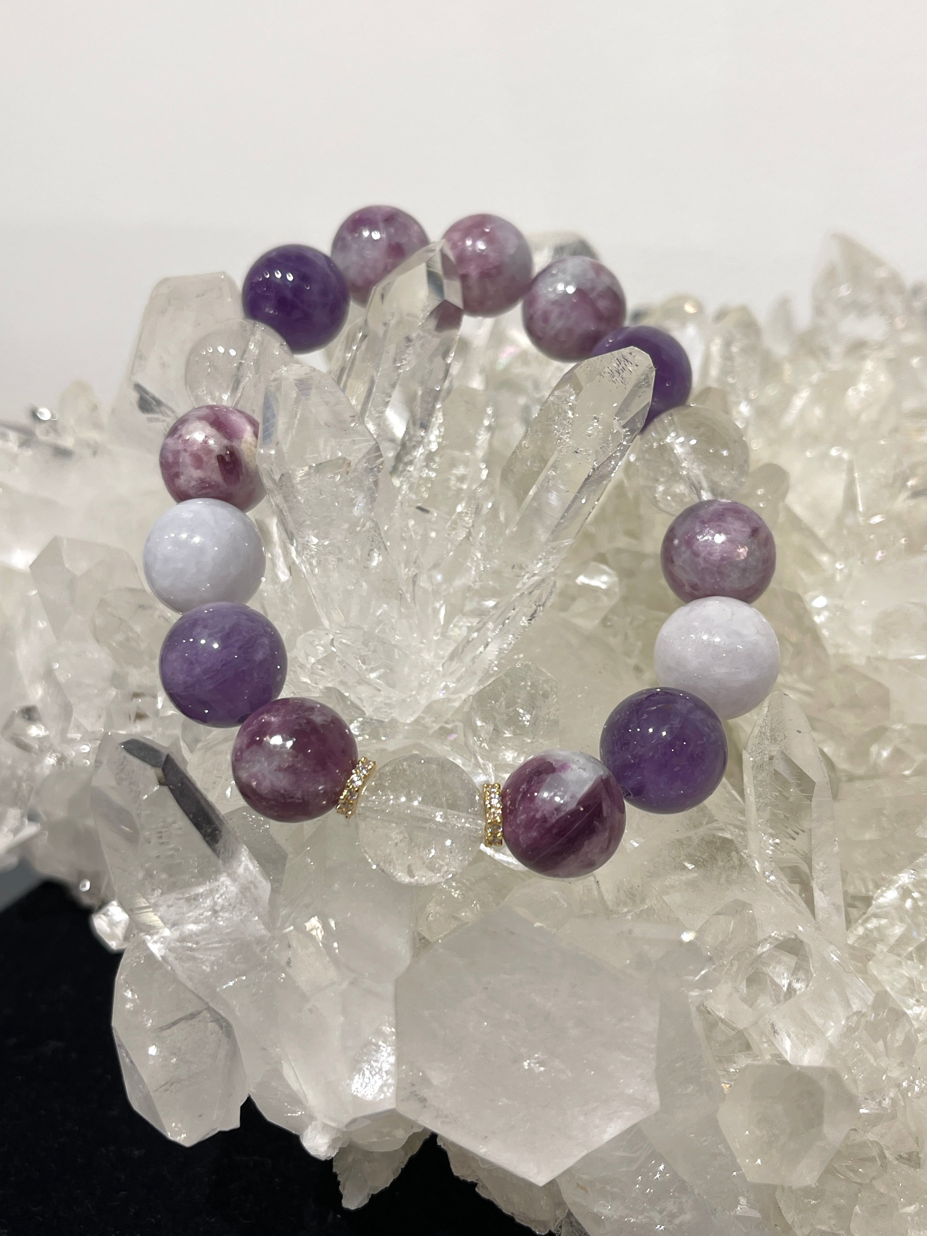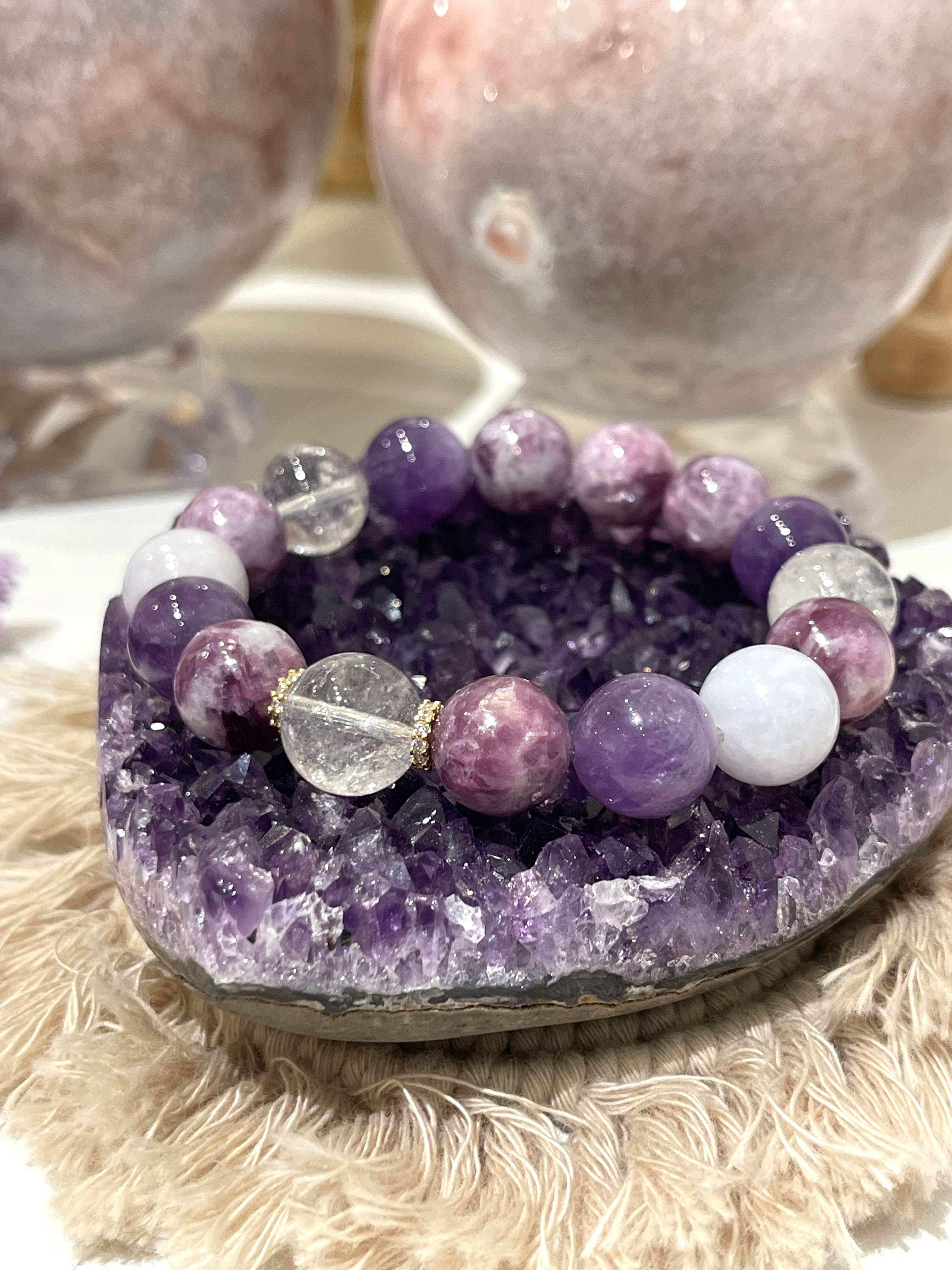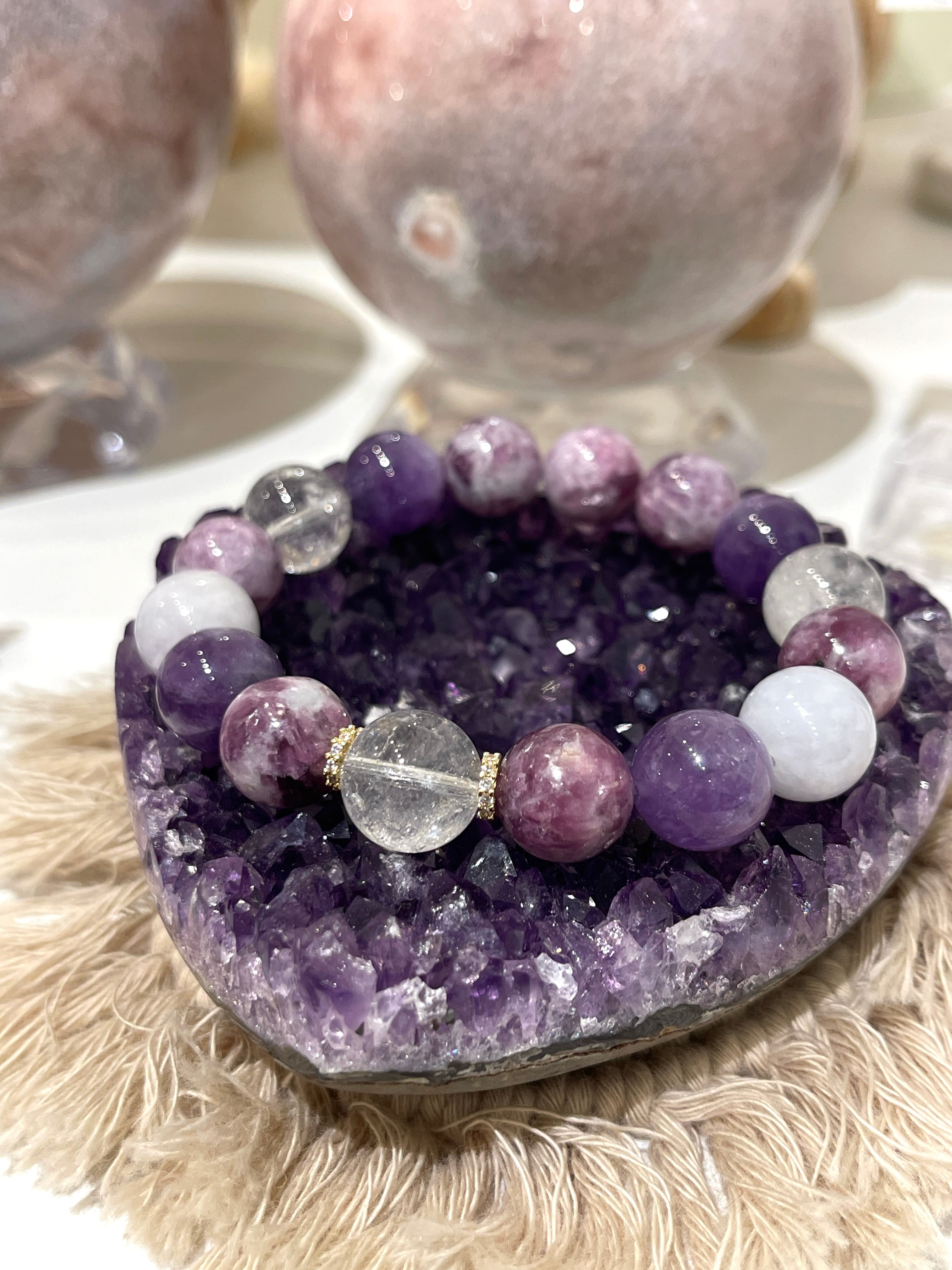 レピドライトシリカにヒマラヤ水晶、アメジスト、
