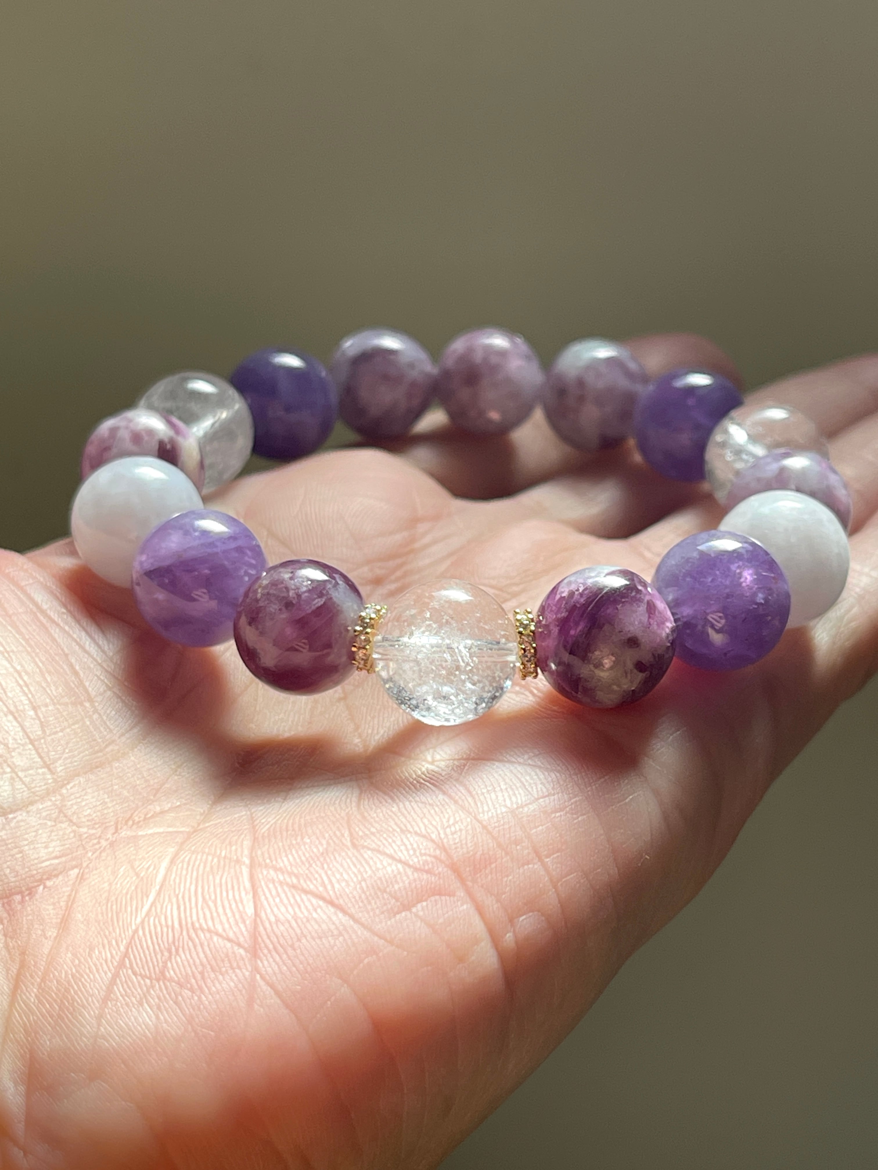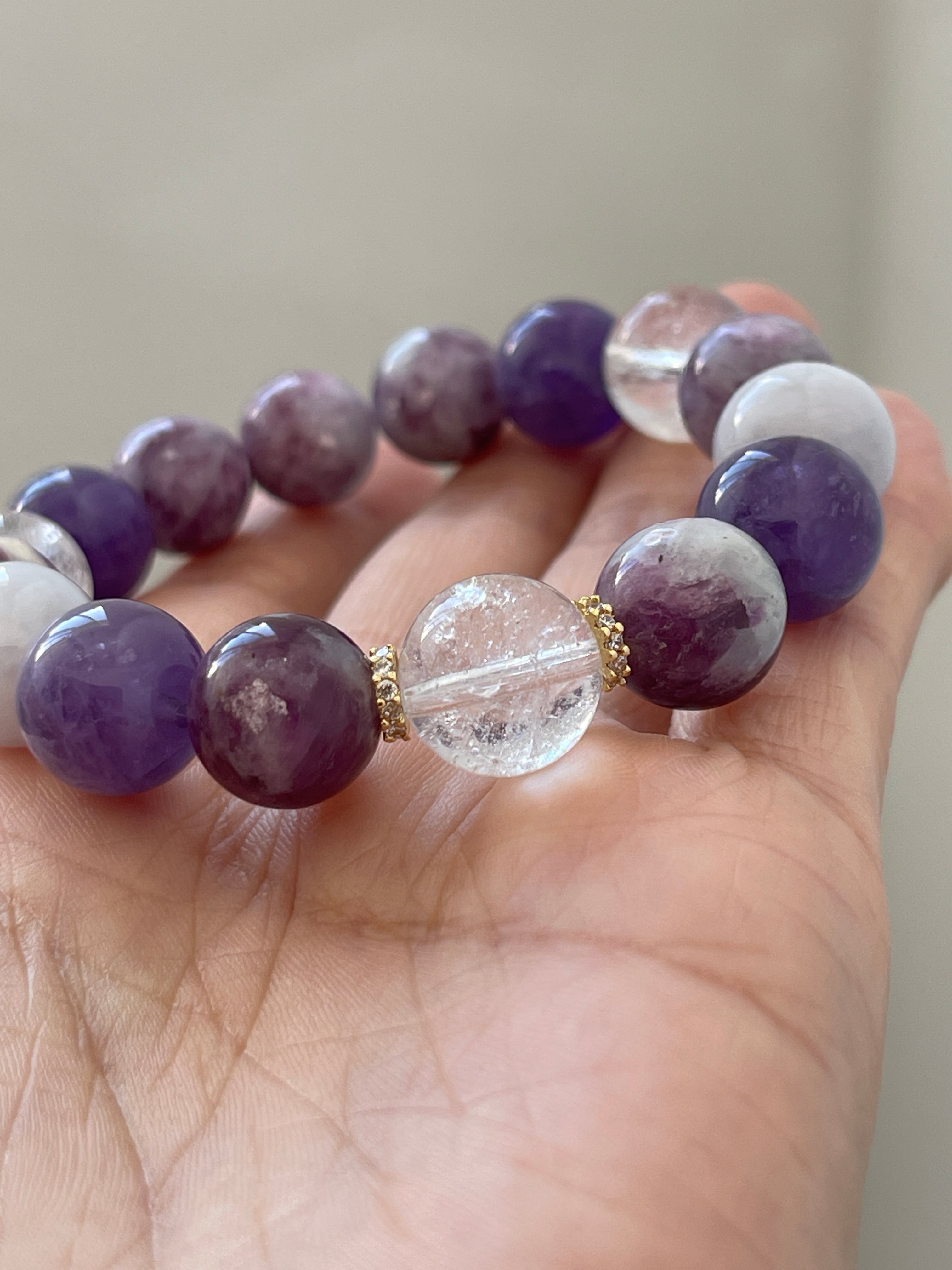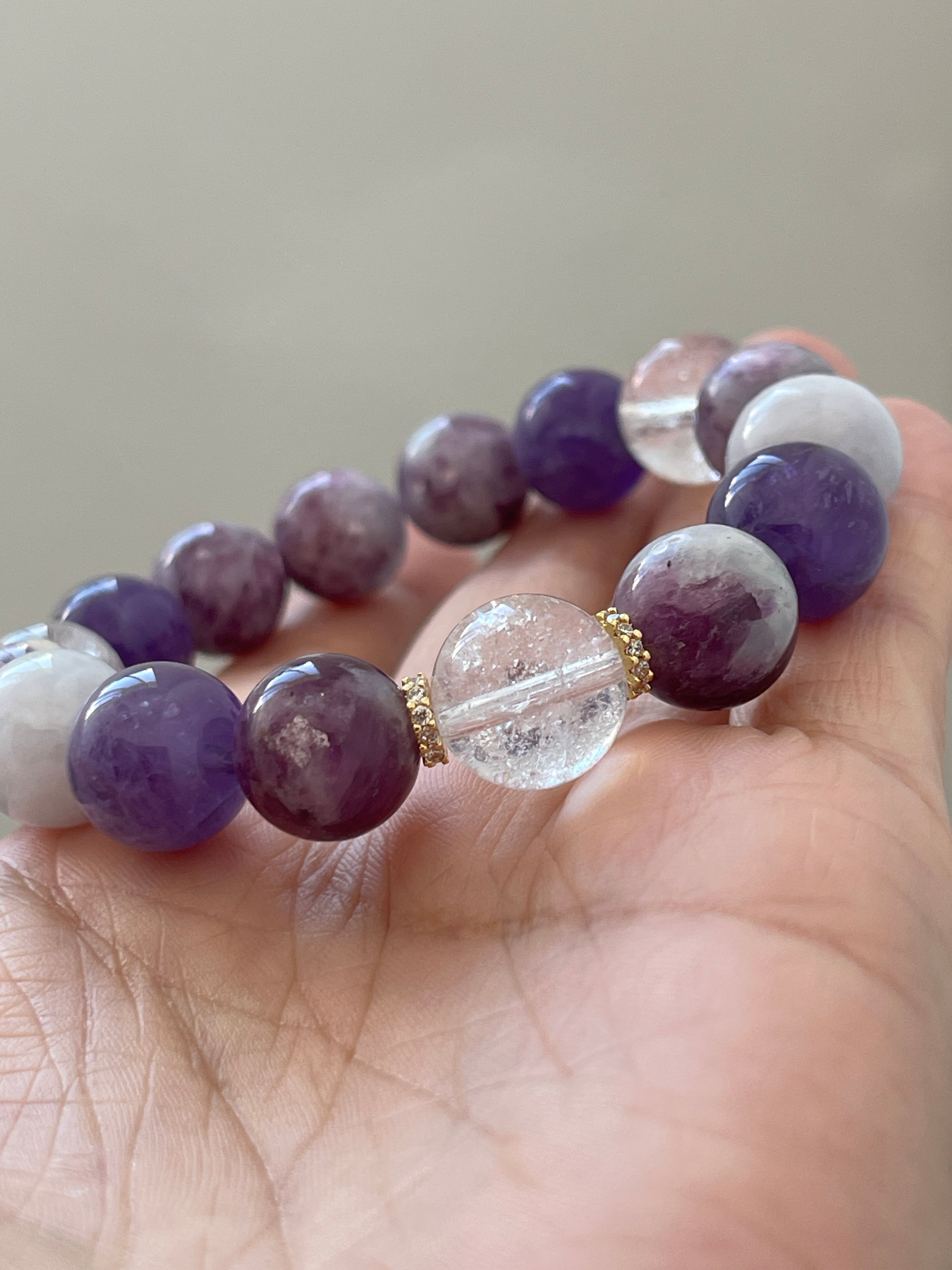 【人生の転機を迎えた貴方に♪】レピドライトシリカ&ヒマラヤ水晶♡パワーストーンブレスレット