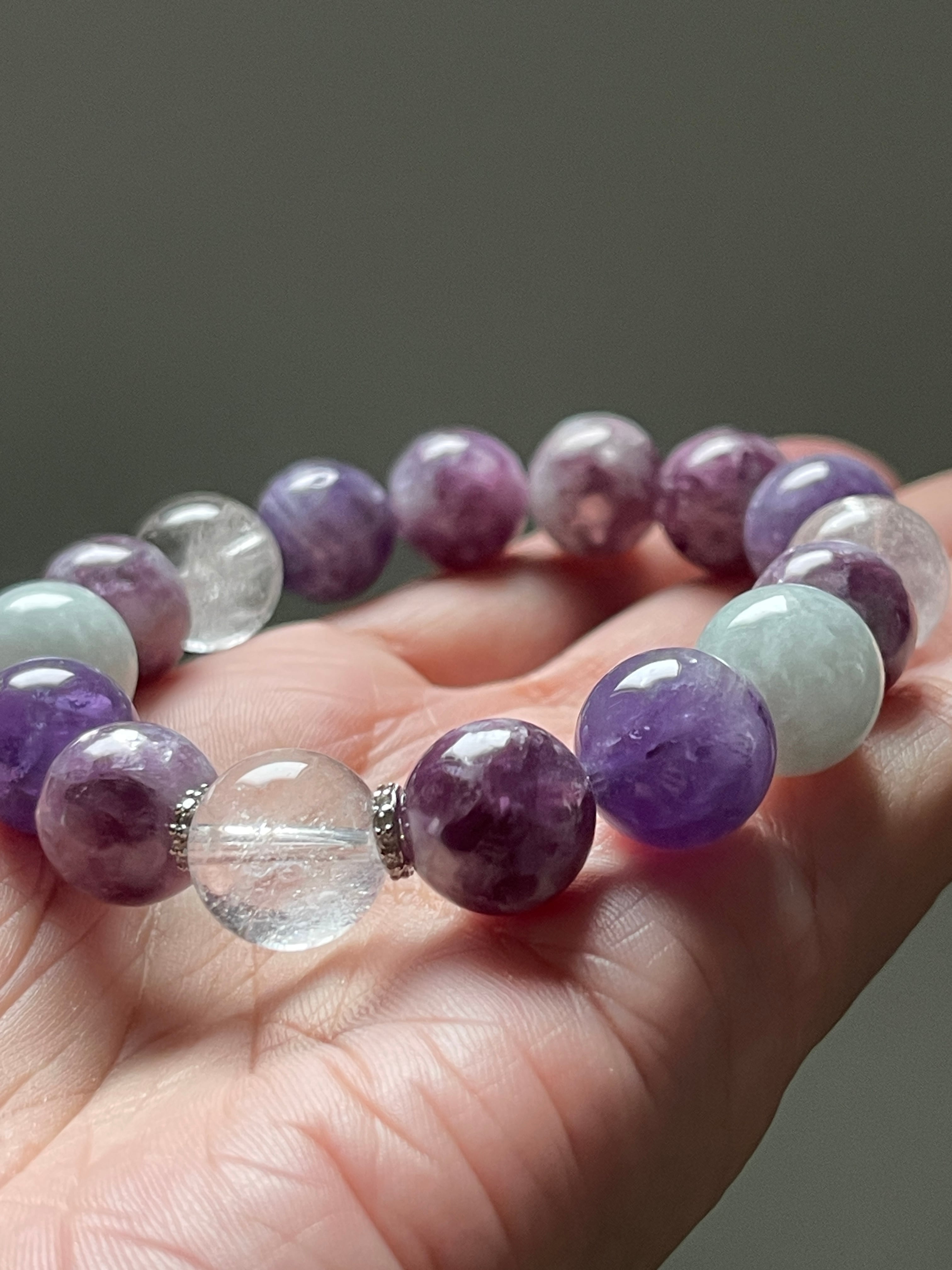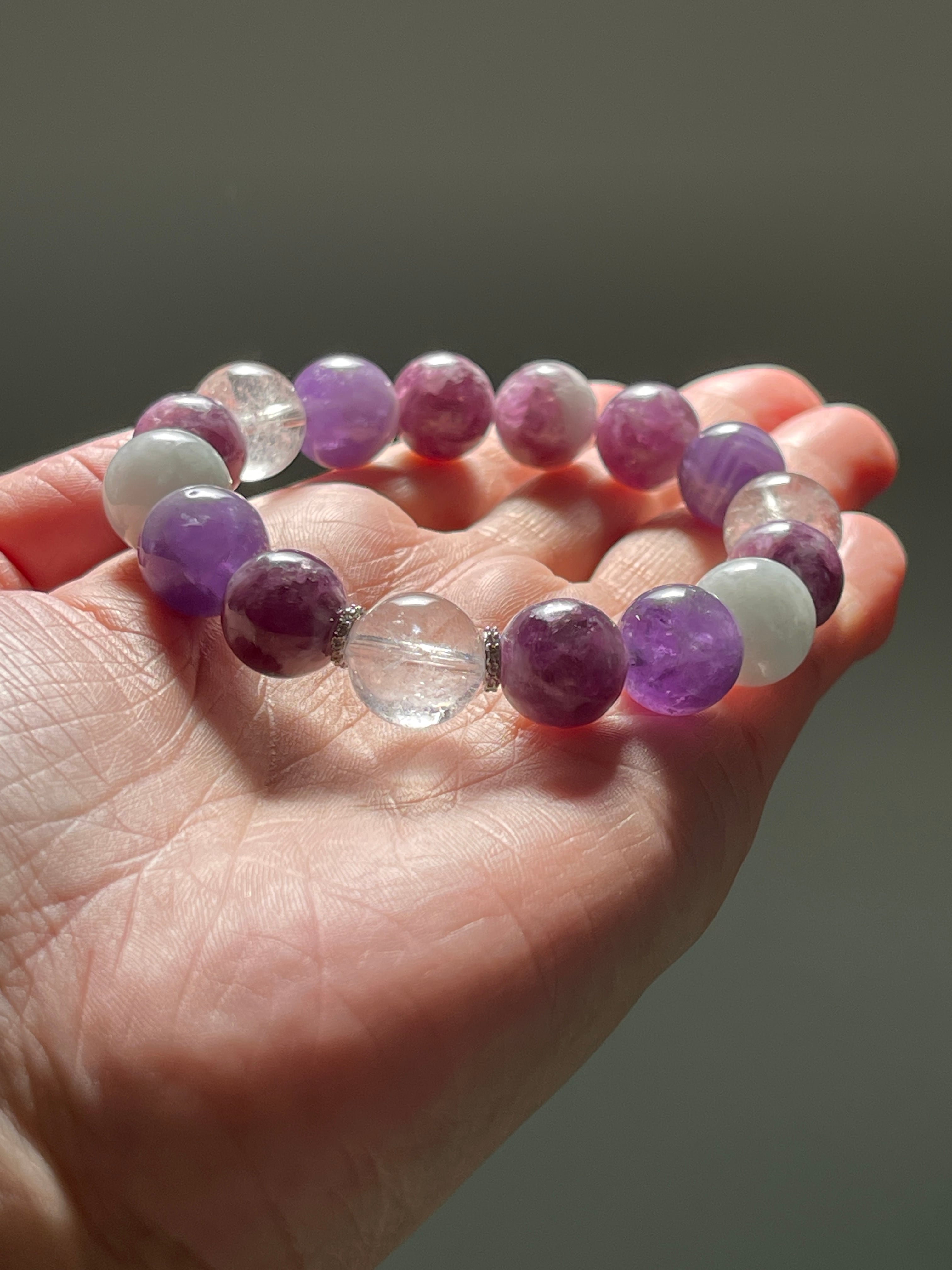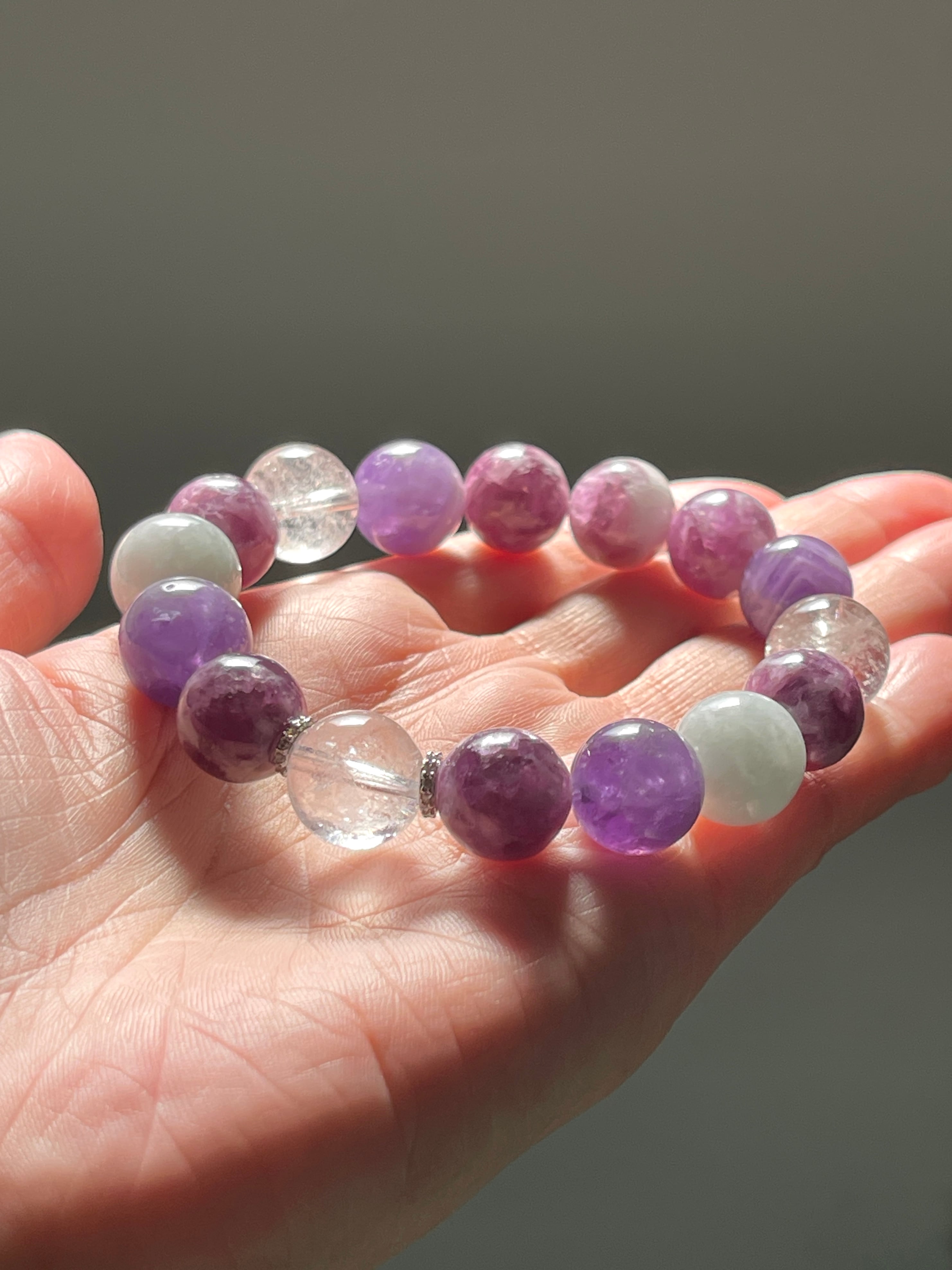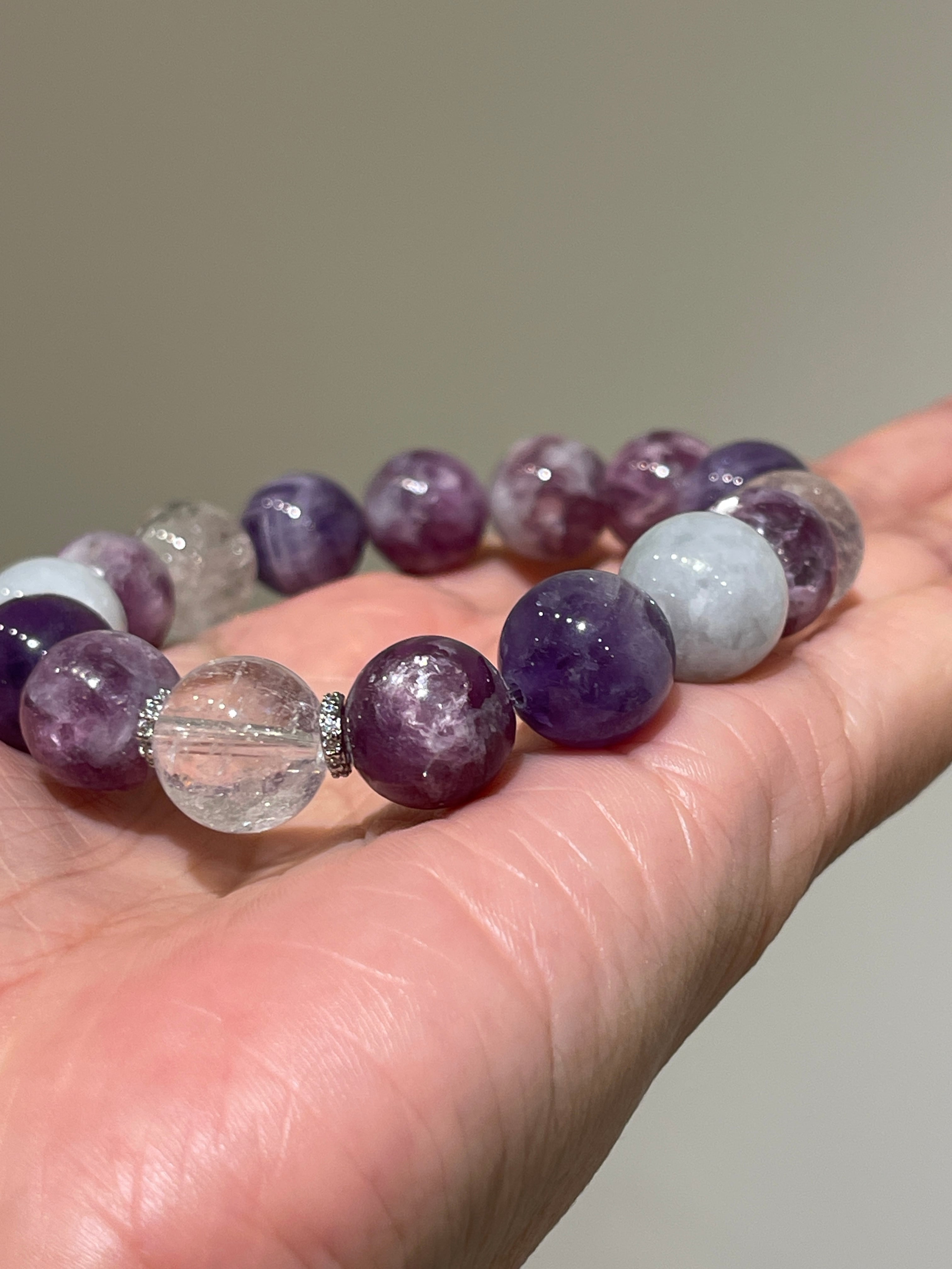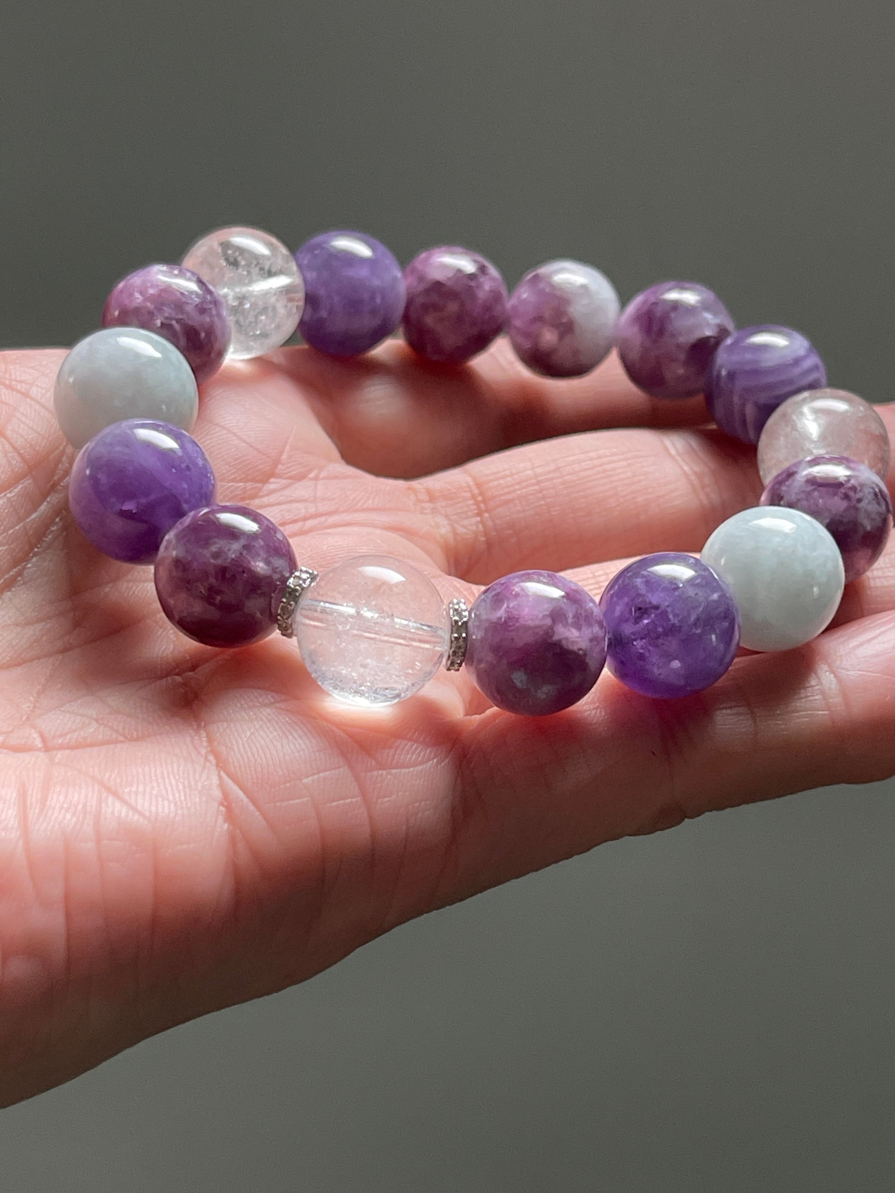 【人生の転機を迎えた貴方に♪】レピドライトシリカ&ヒマラヤ水晶♡パワーストーンブレスレット