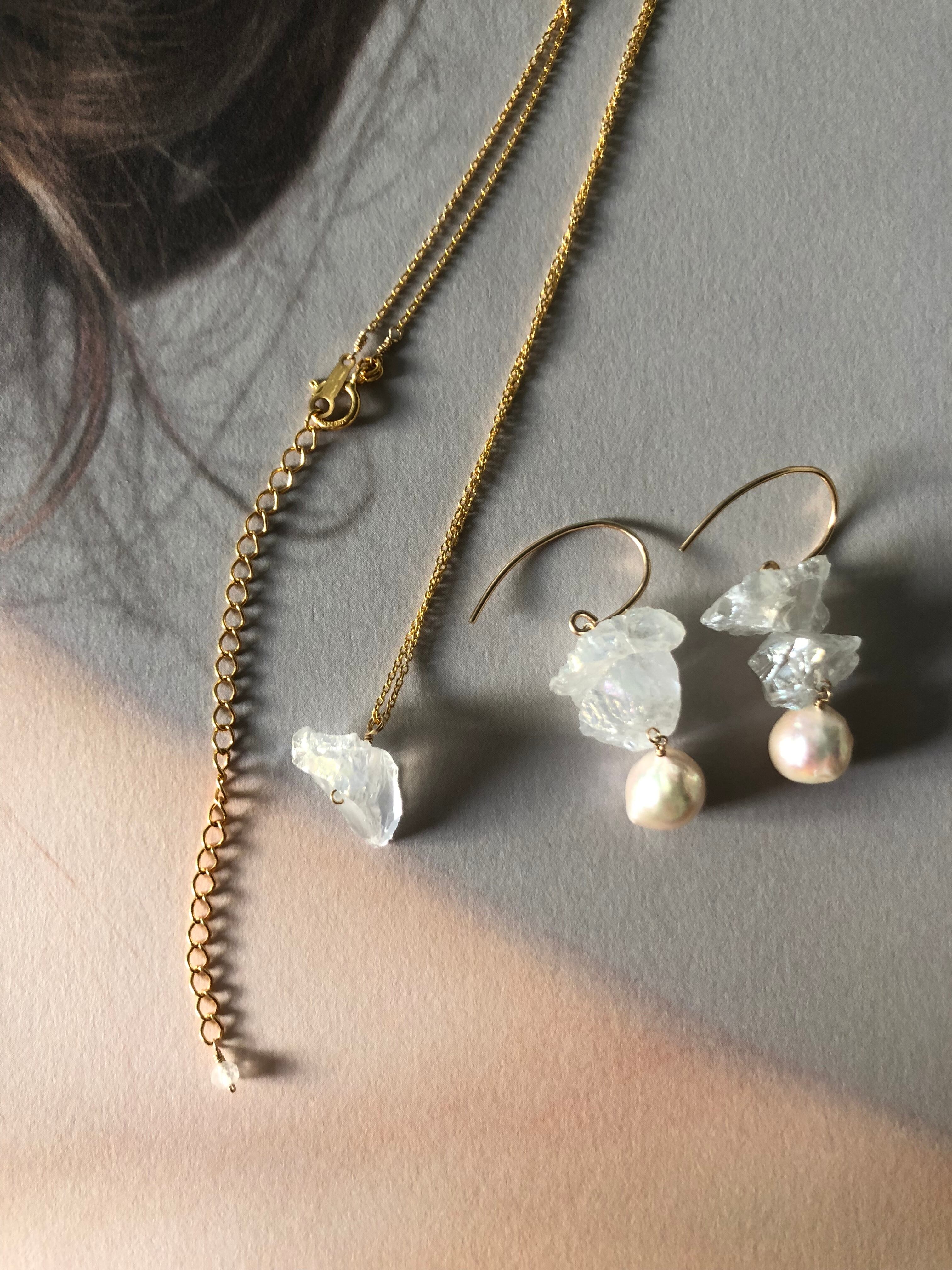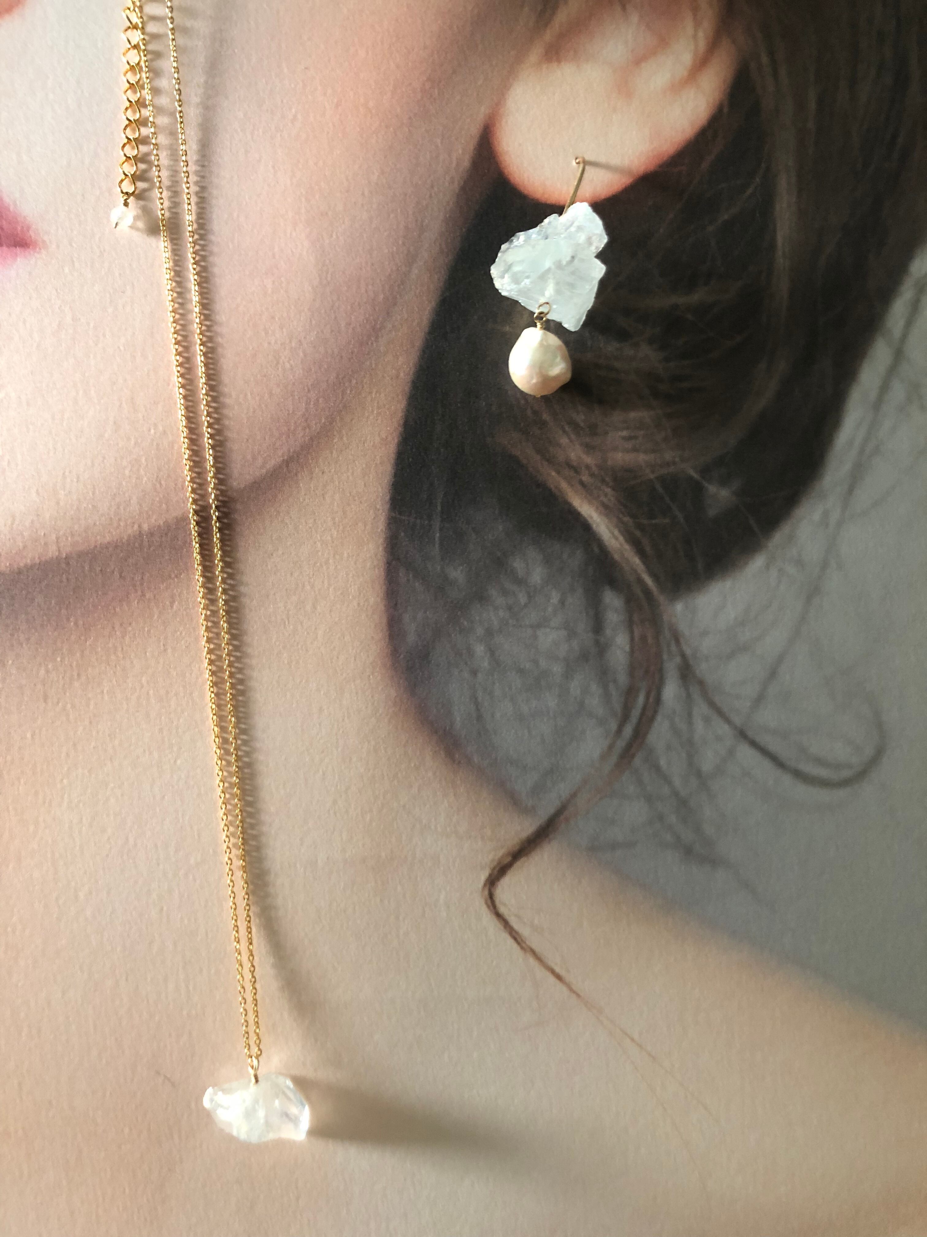 約8.5ミリあるアコヤパールと組み合わせ、耳元が優しく華やかな印象です。