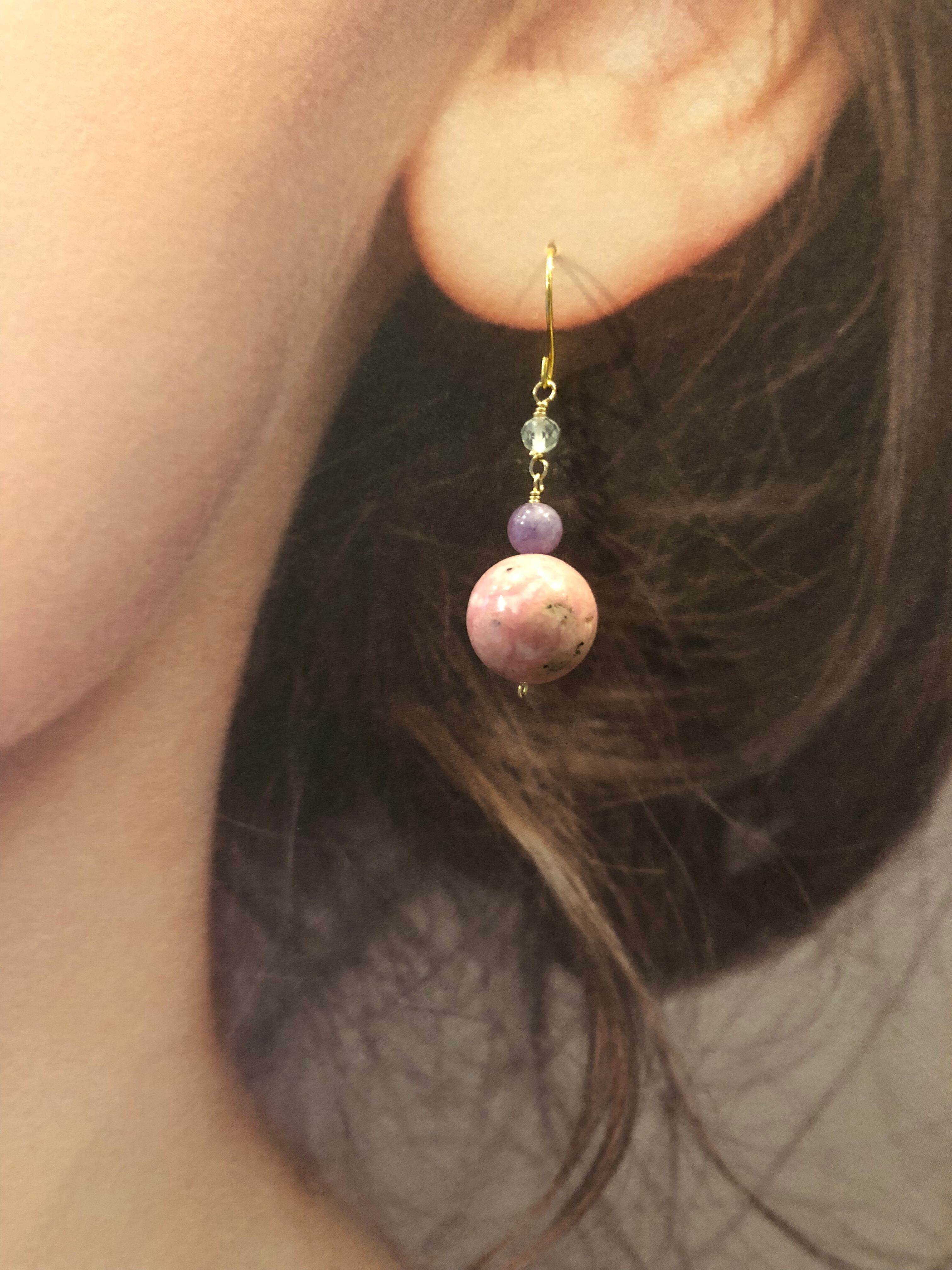 ラベンダーカラーのジェイドと透明トパーズを合わせ女性らしい雰囲気のピアスになりました。