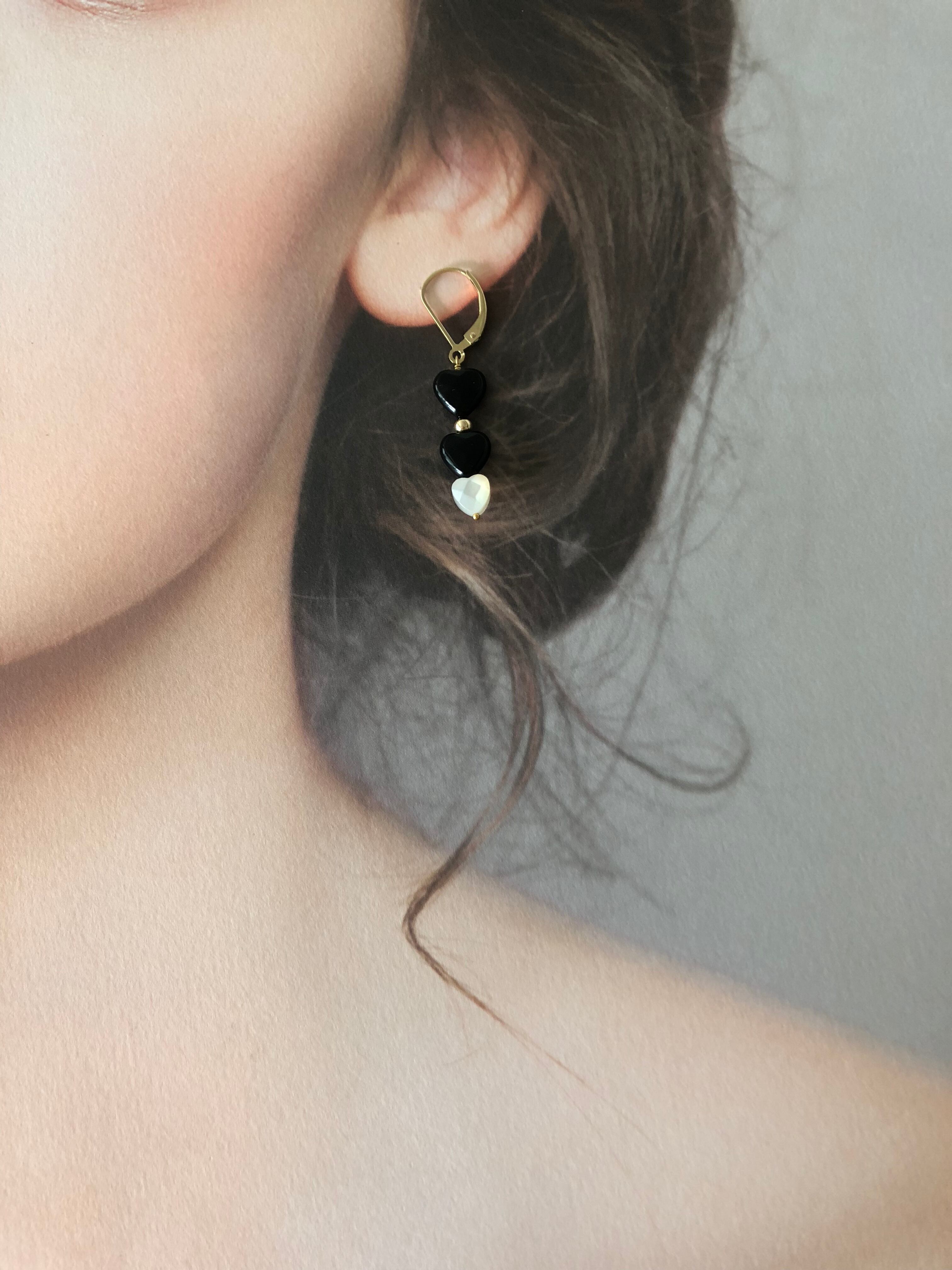 ハートのアシンメトリーピアス★オニキス 白蝶貝