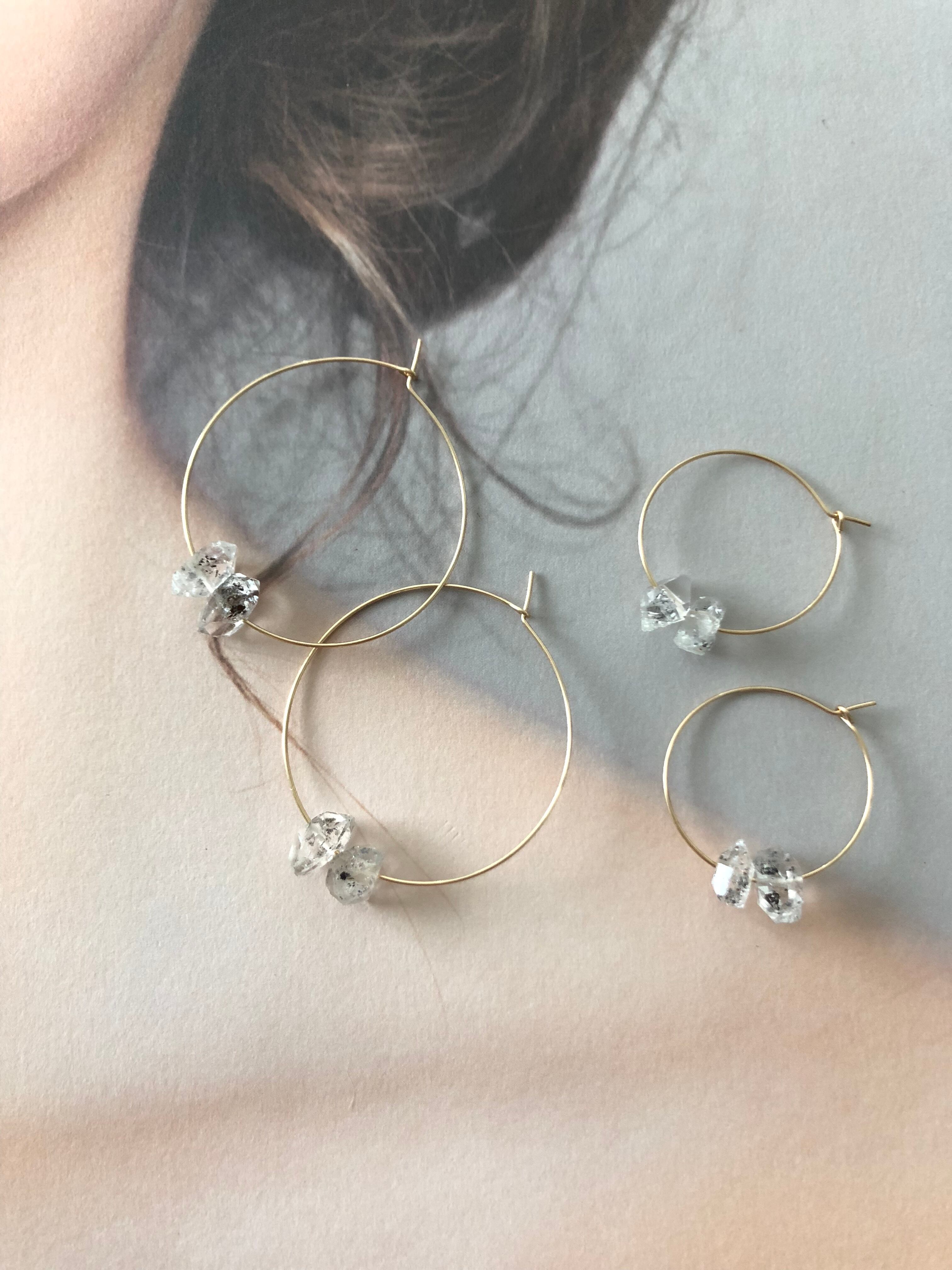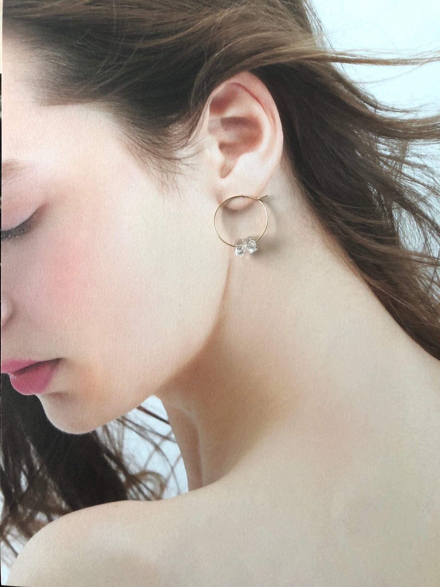 パキスタン産ダブルポイント水晶のフープピアスです。