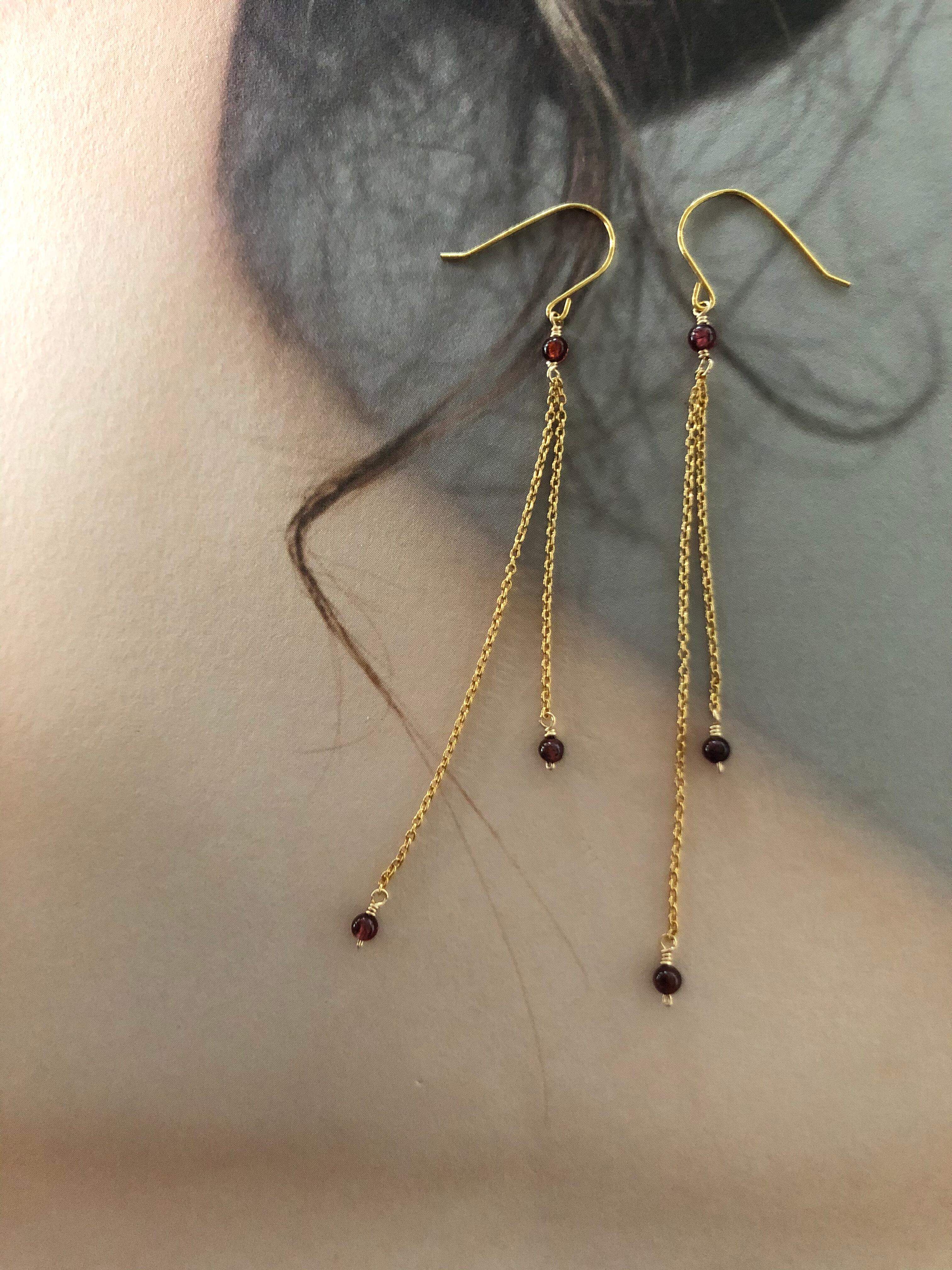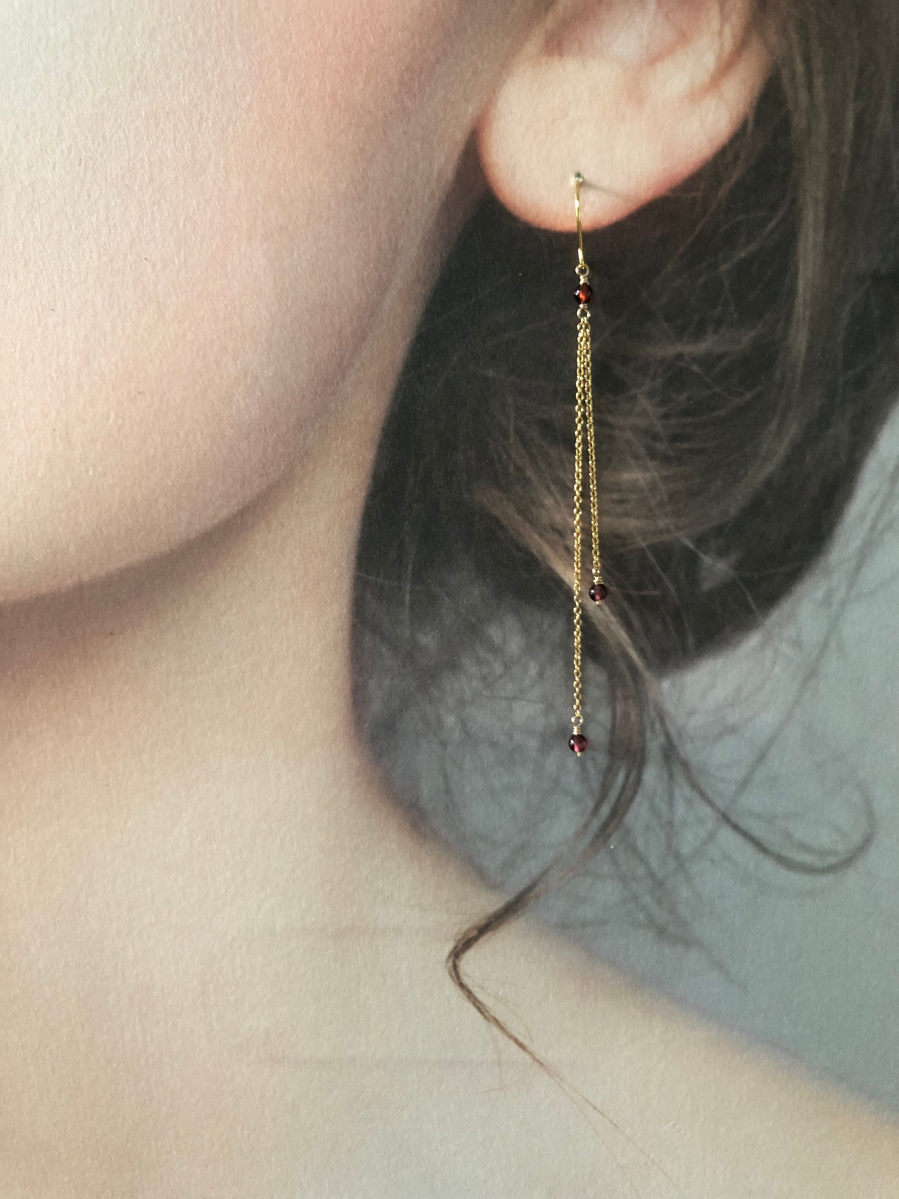 小粒のガーネットが大人っぽくチェーンピアスを引き立てます。