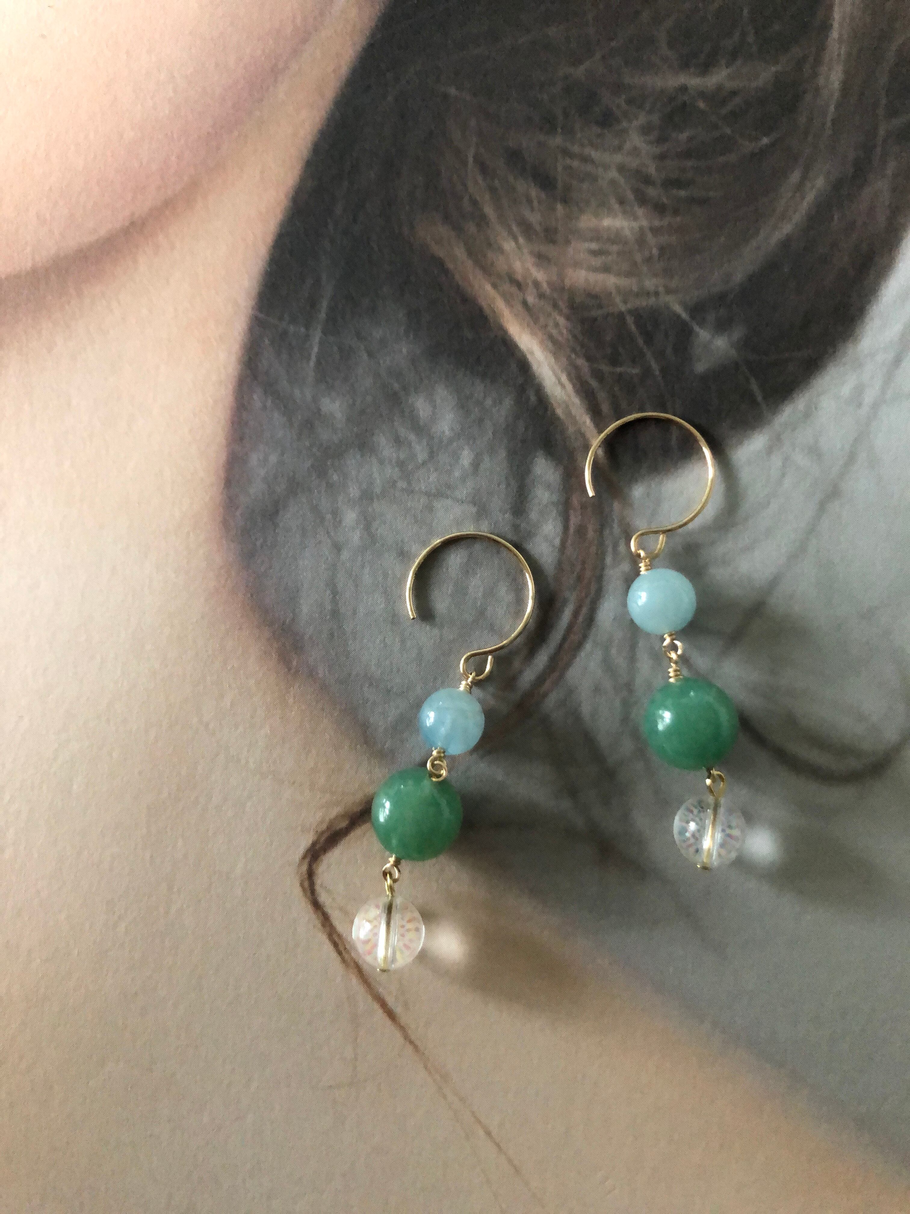 癒しのエネルギーが高いグリーンアベンチュリンとアクアマリン、水晶を組み合わせました♡