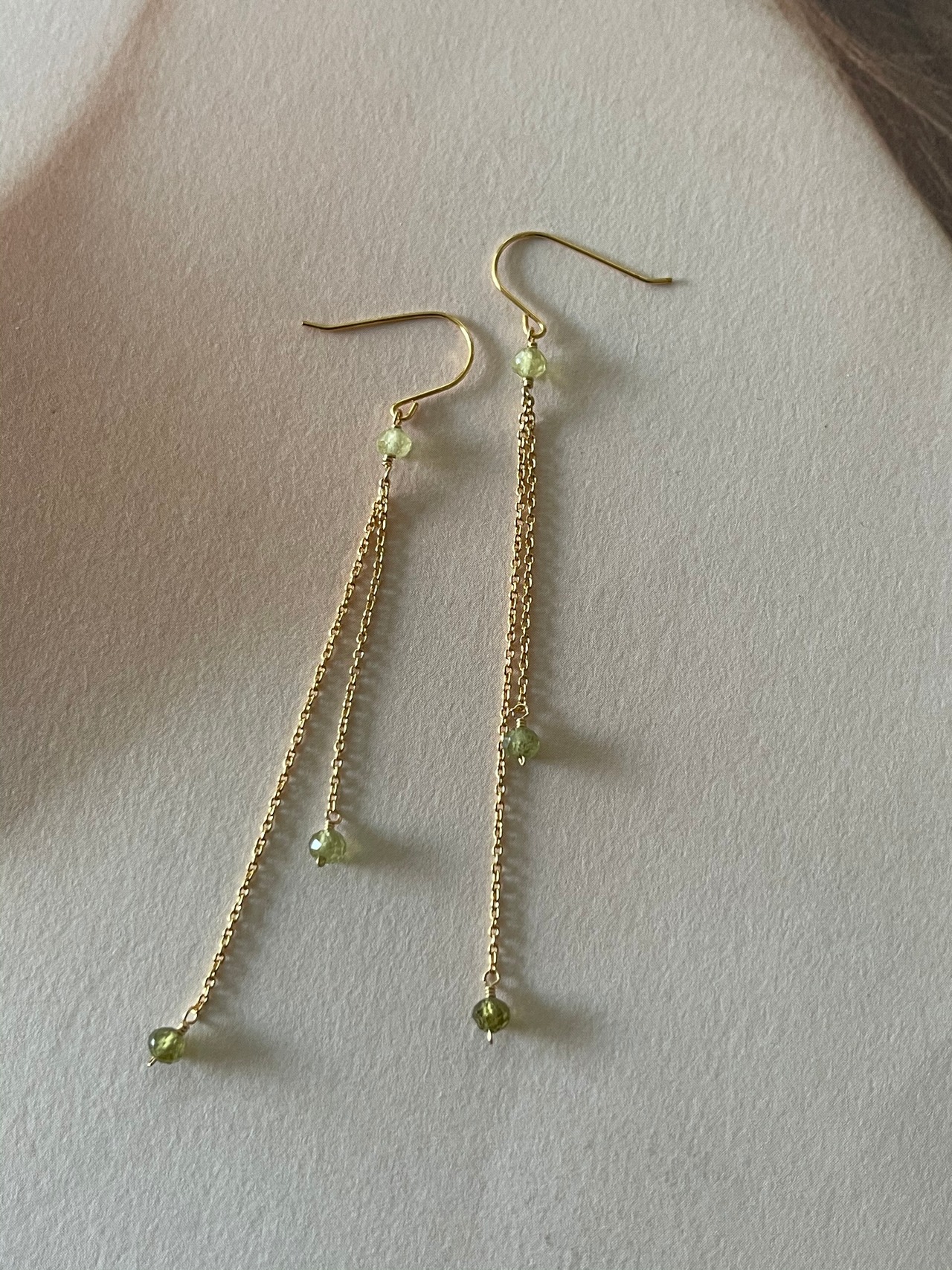 グロッシュラーガーネットのロングピアスです。