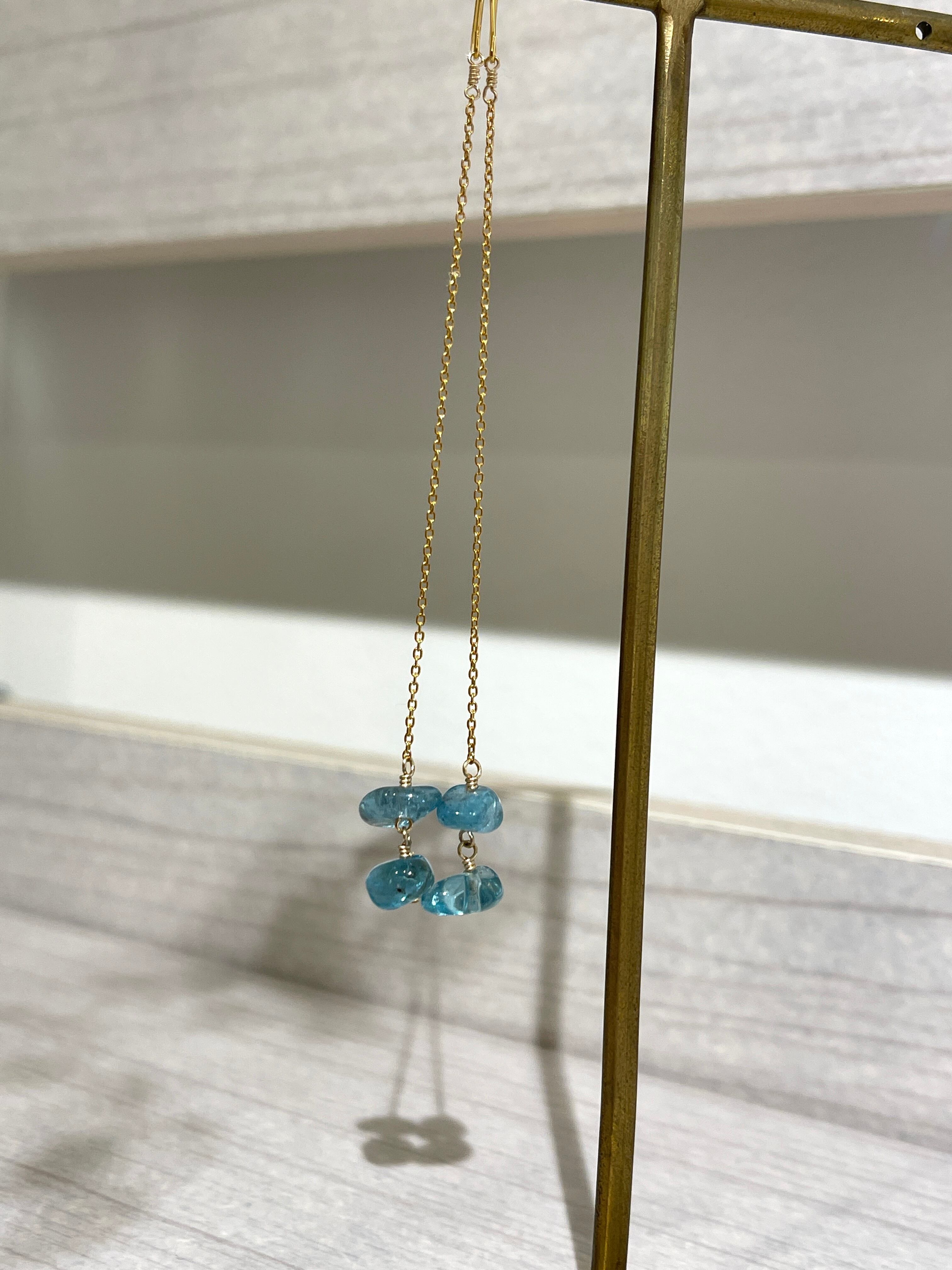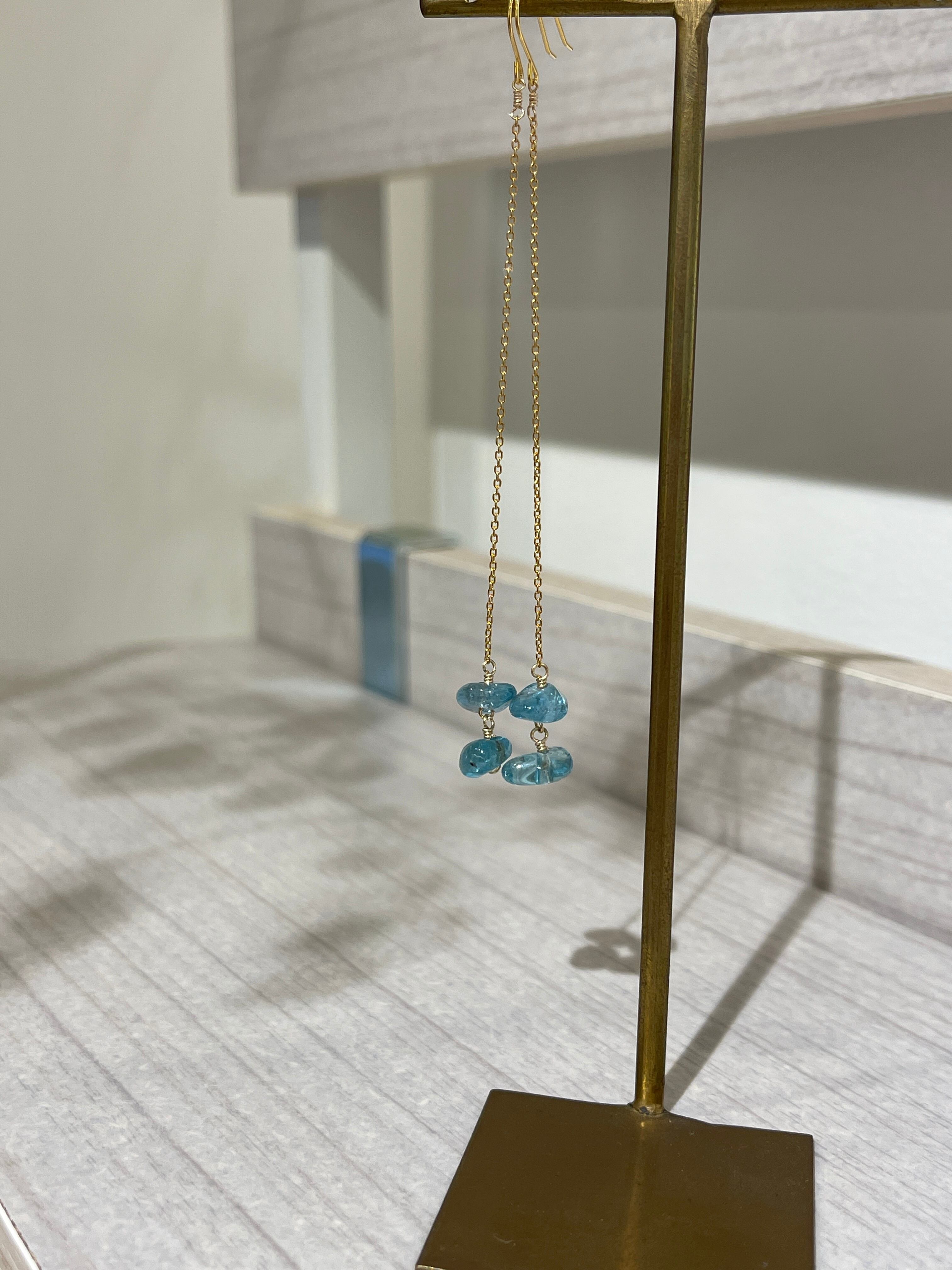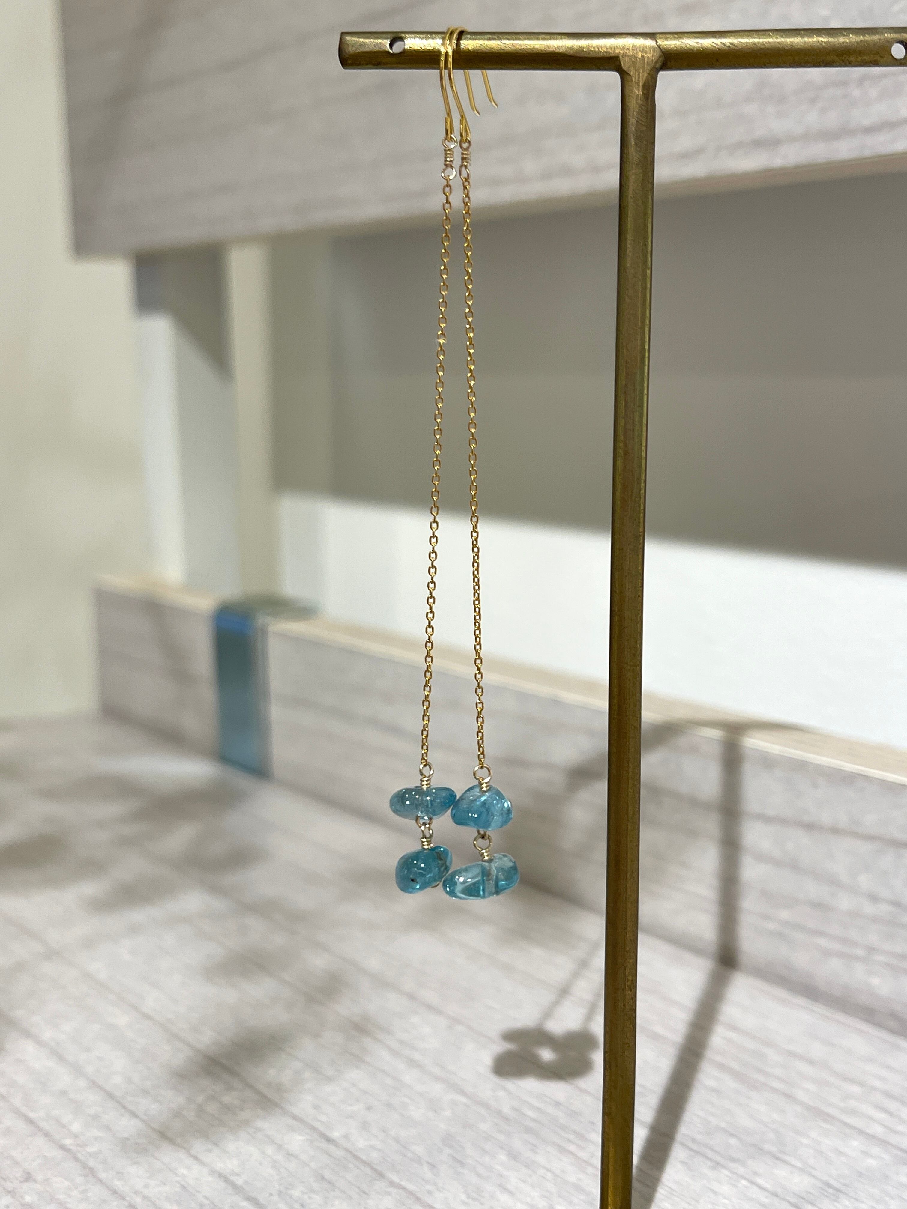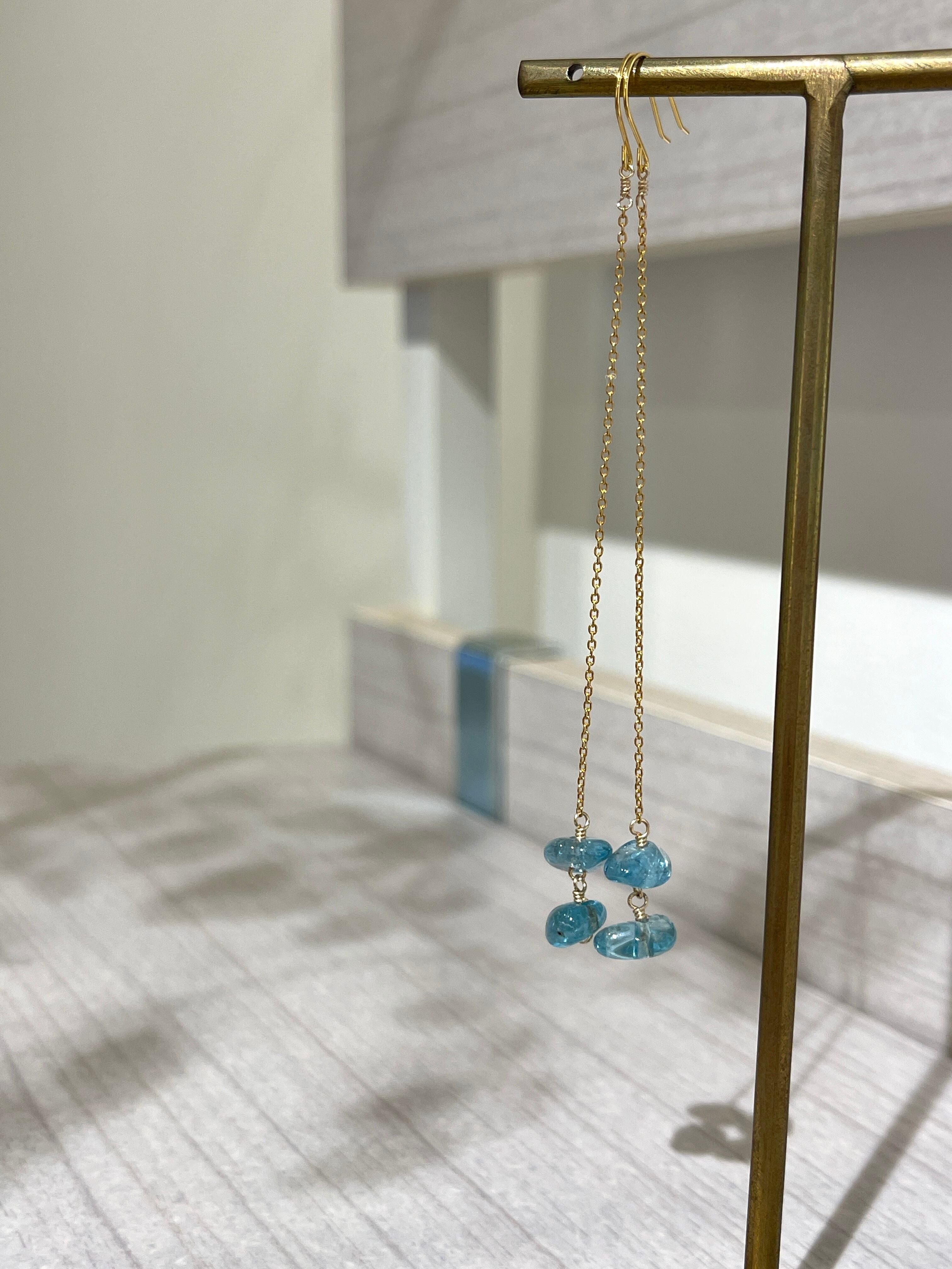美しいブルーが印象的なアパタイトのロングピアスです。