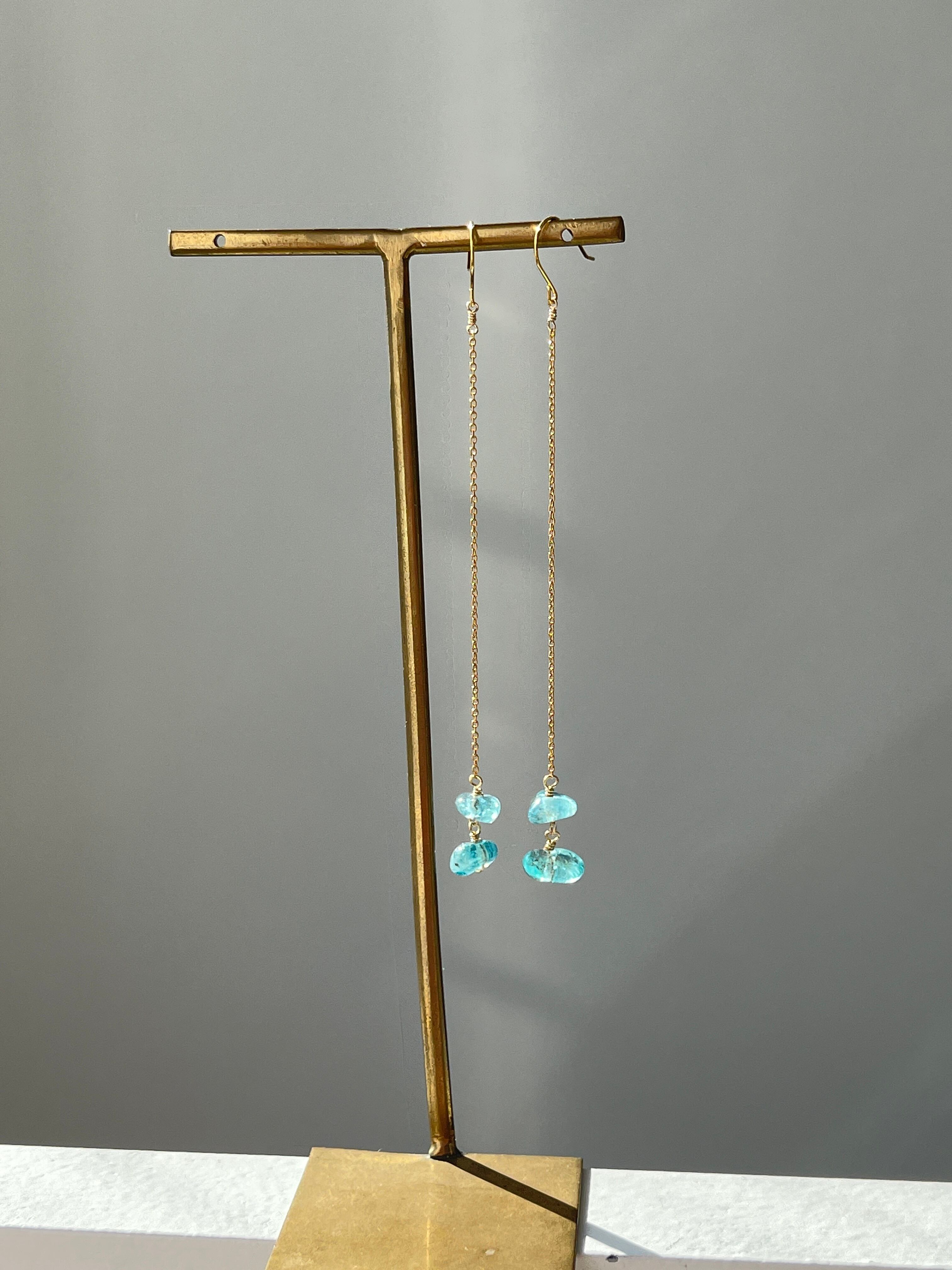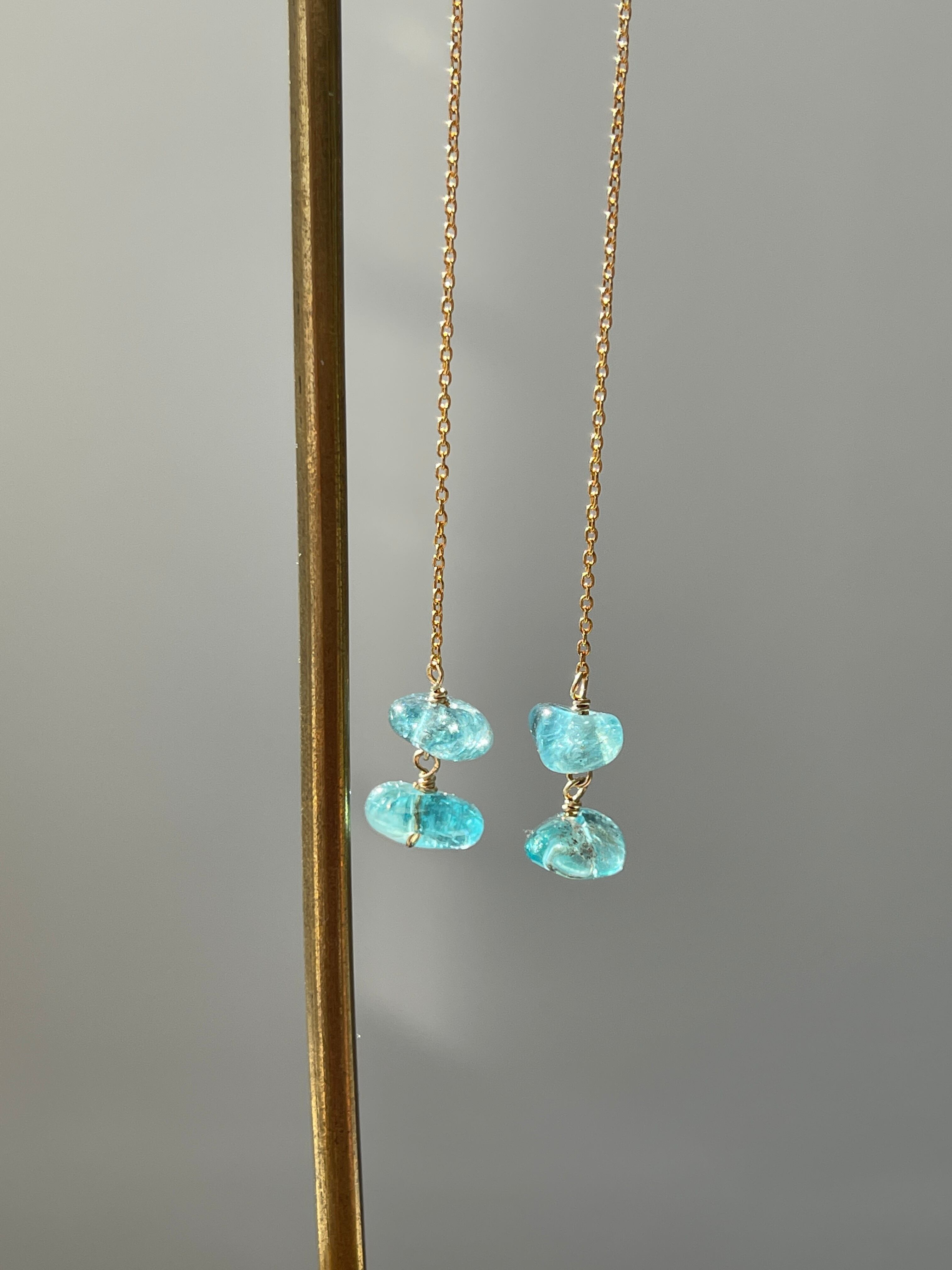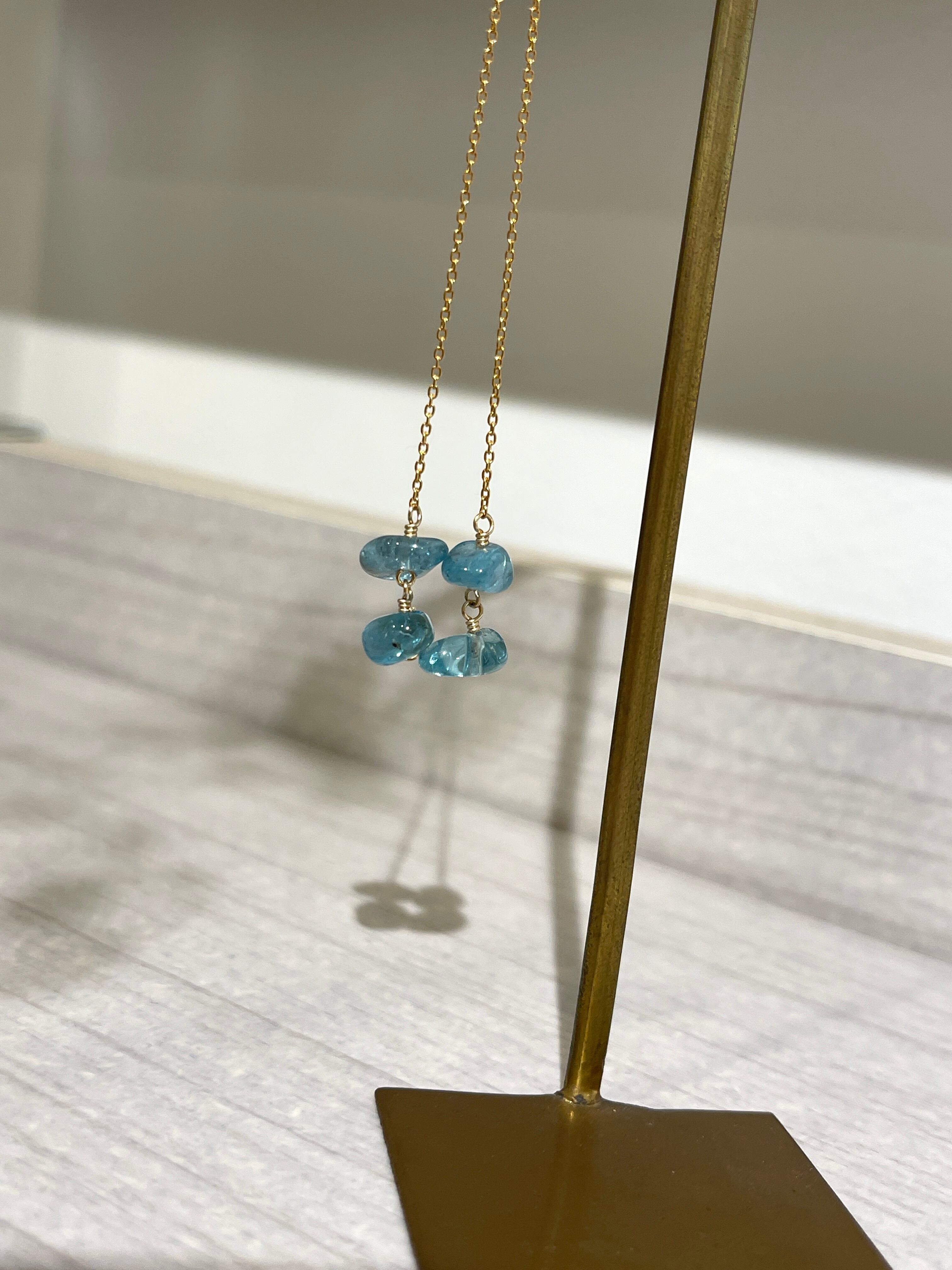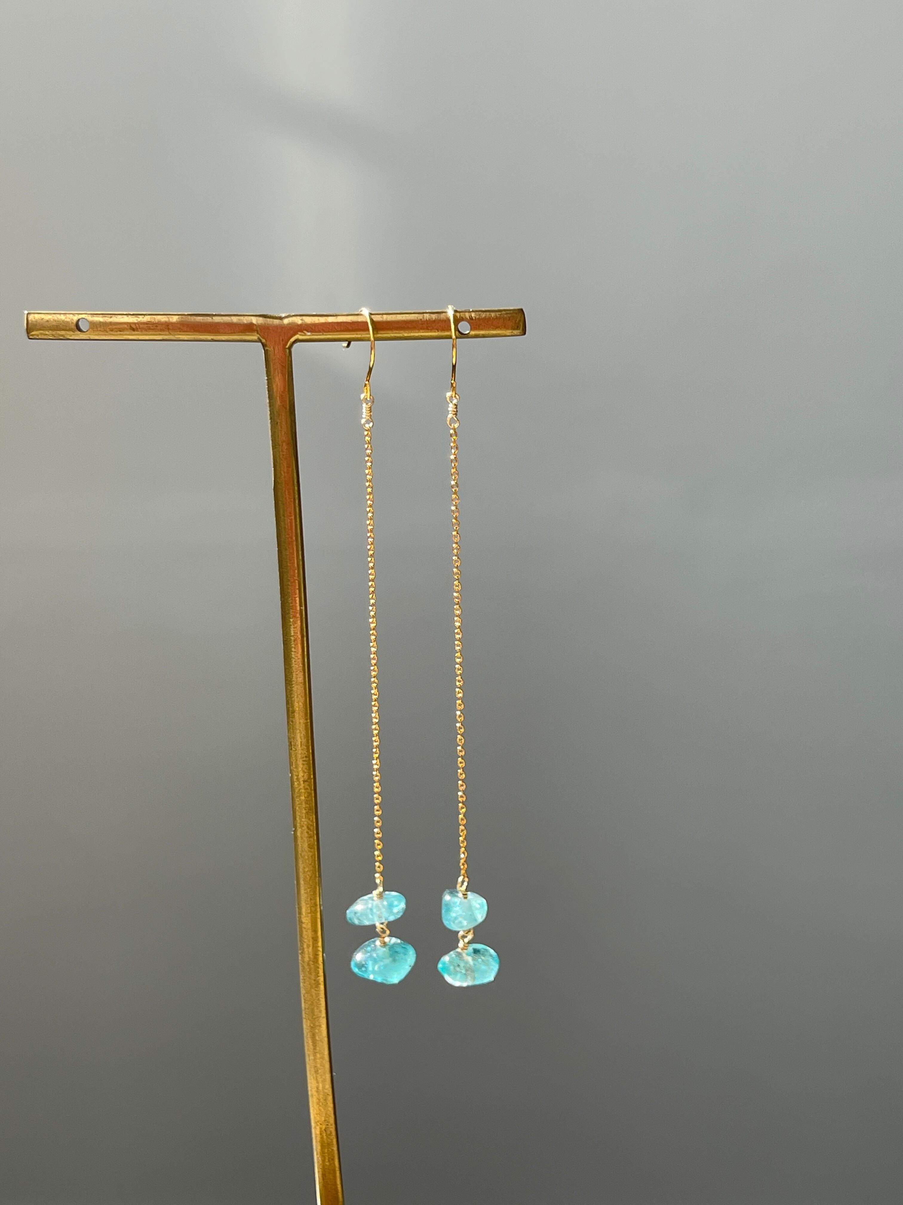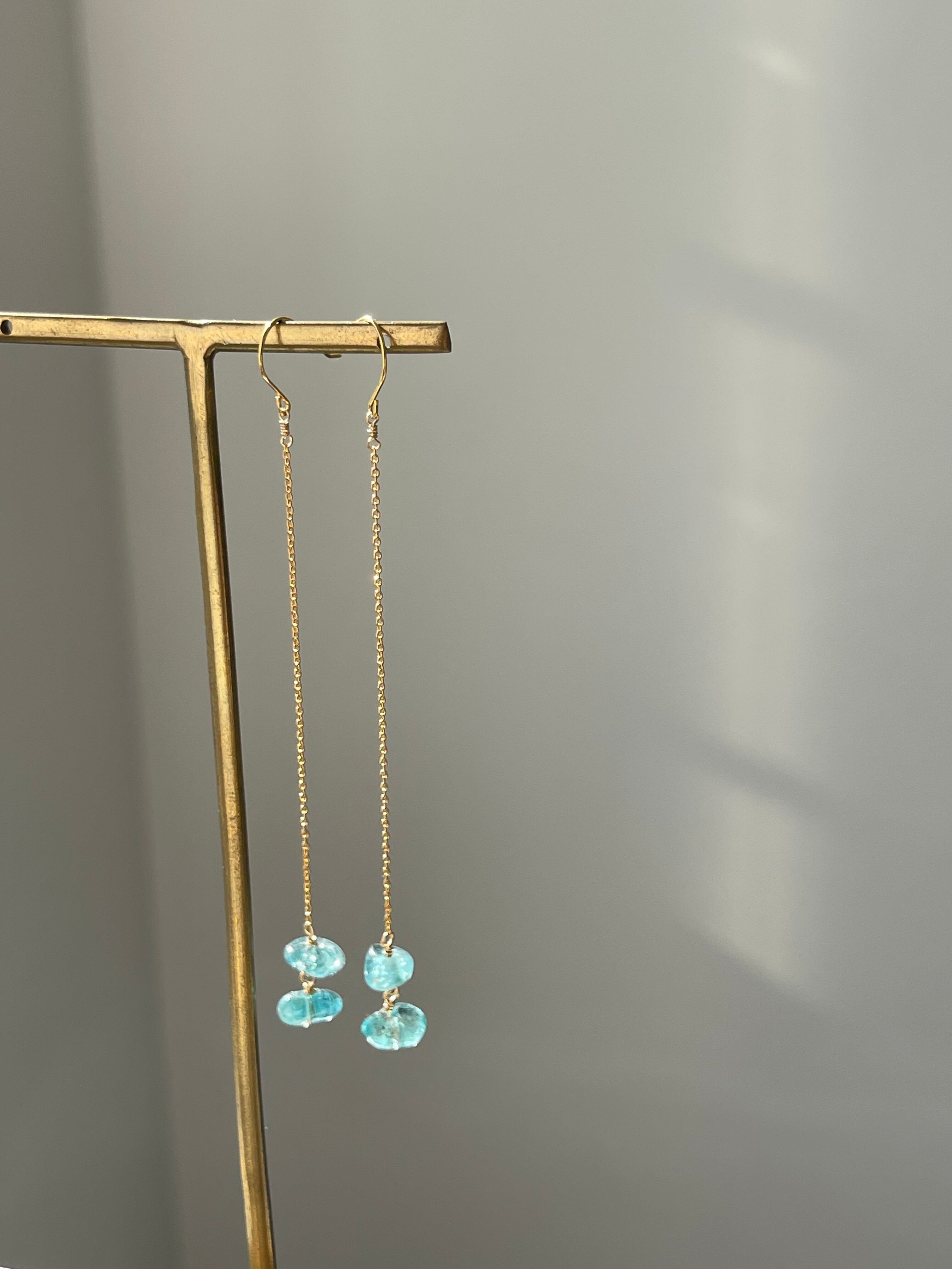 美しいブルーが印象的なアパタイトのロングピアスです。