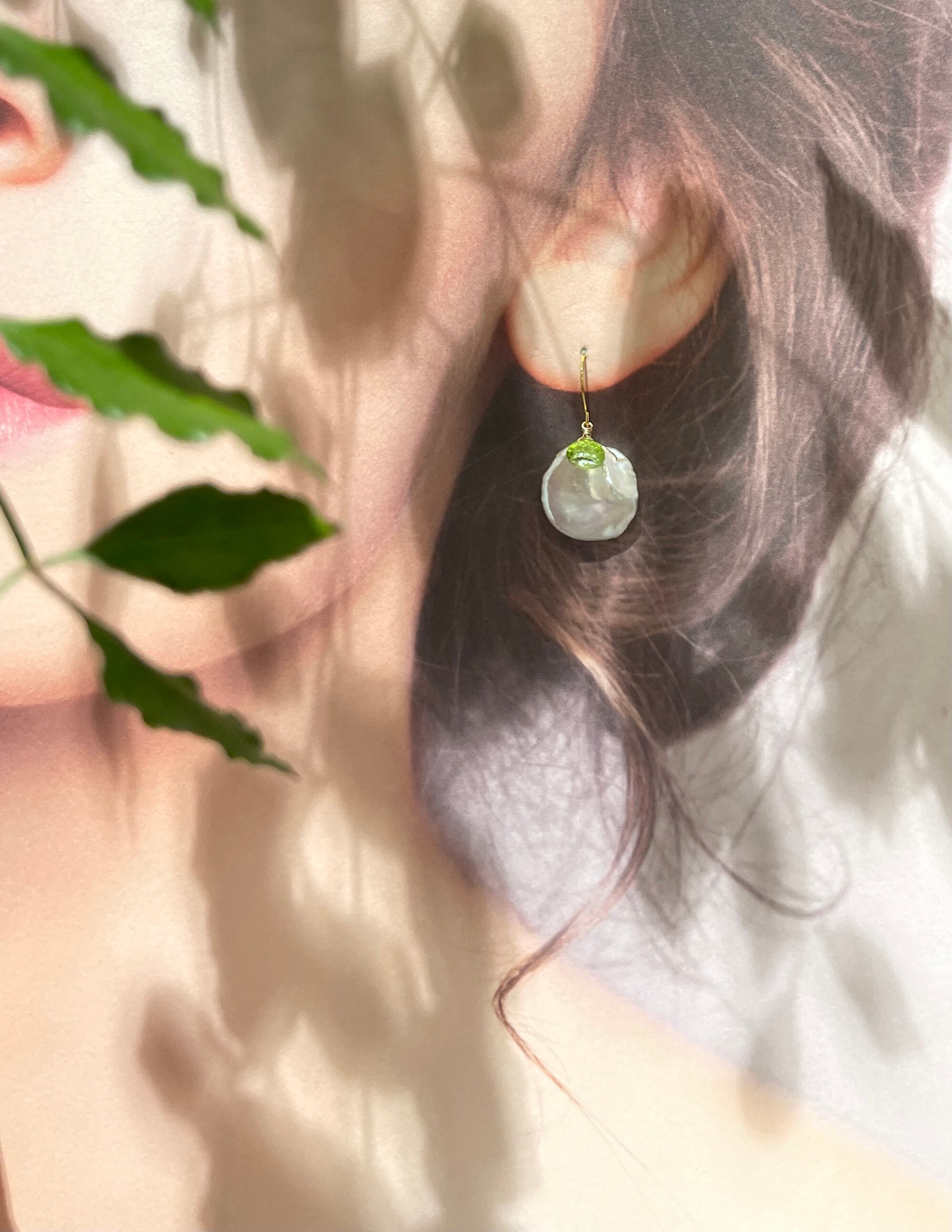 鮮やかなグリーンが美しいペリドットと淡水パールのピアスです♪