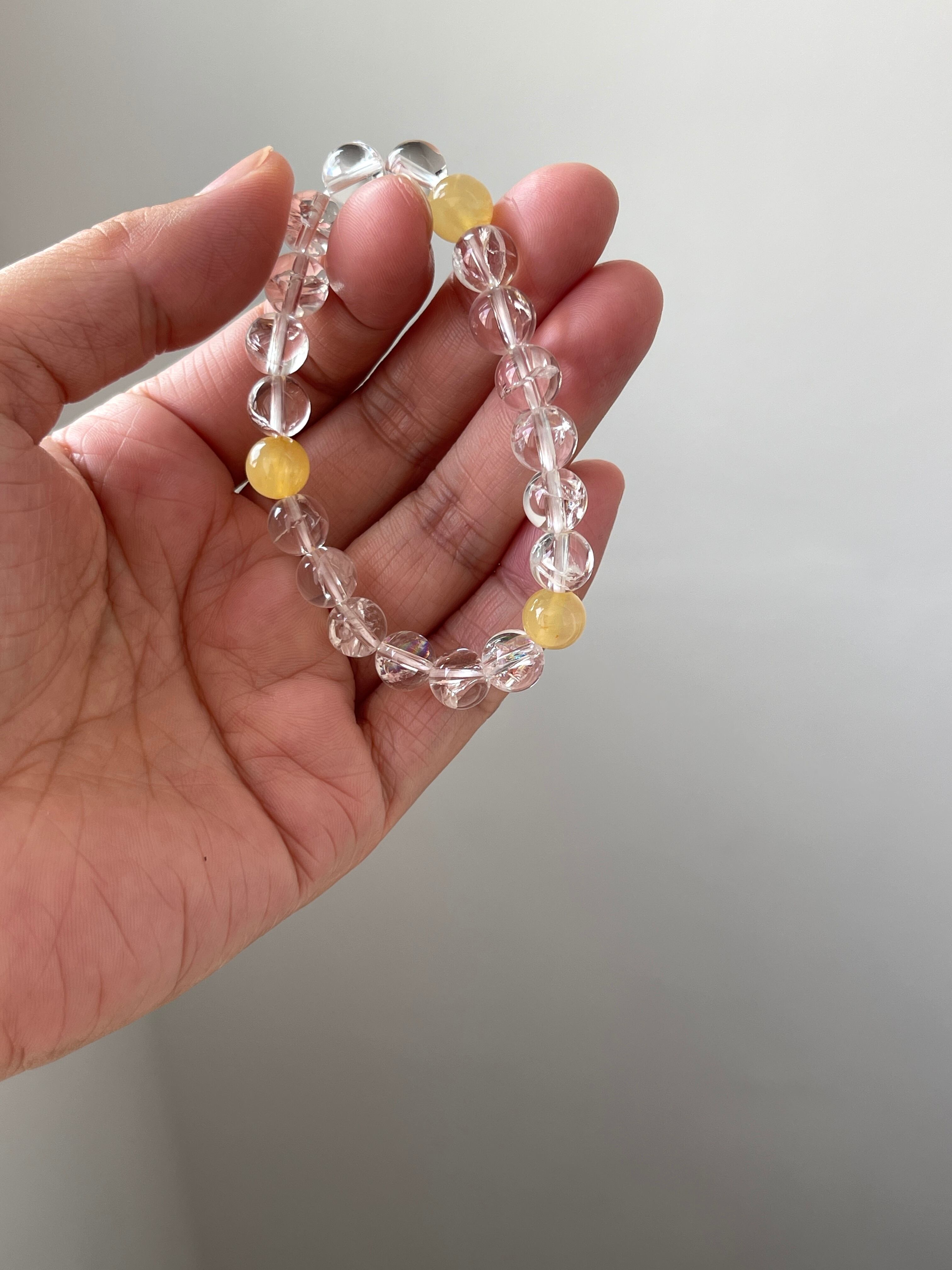 天然アラゴナイト&アイリスクォーツ(虹入り水晶)♡ブレスレット①