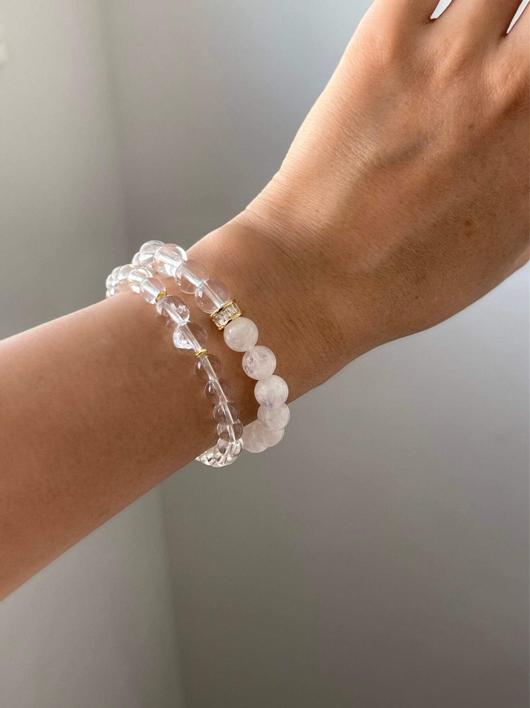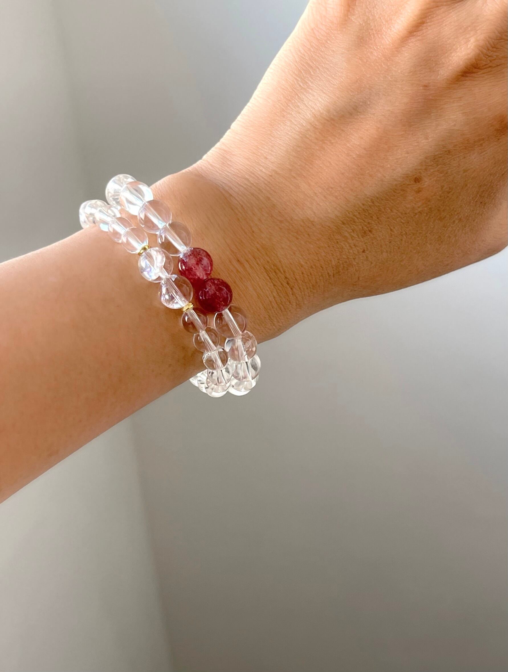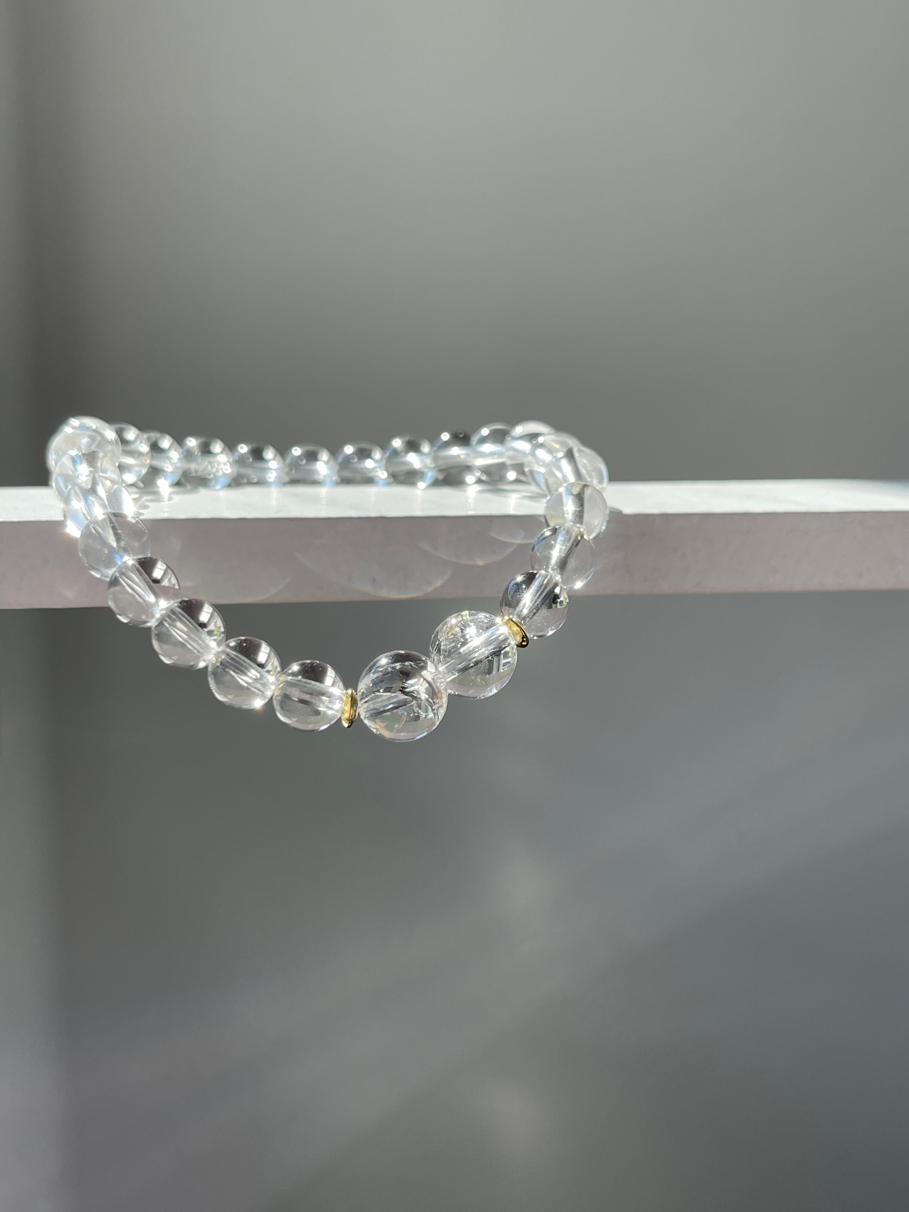 こちらのブレスレットは中心に2石、虹入り水晶を使用しています。