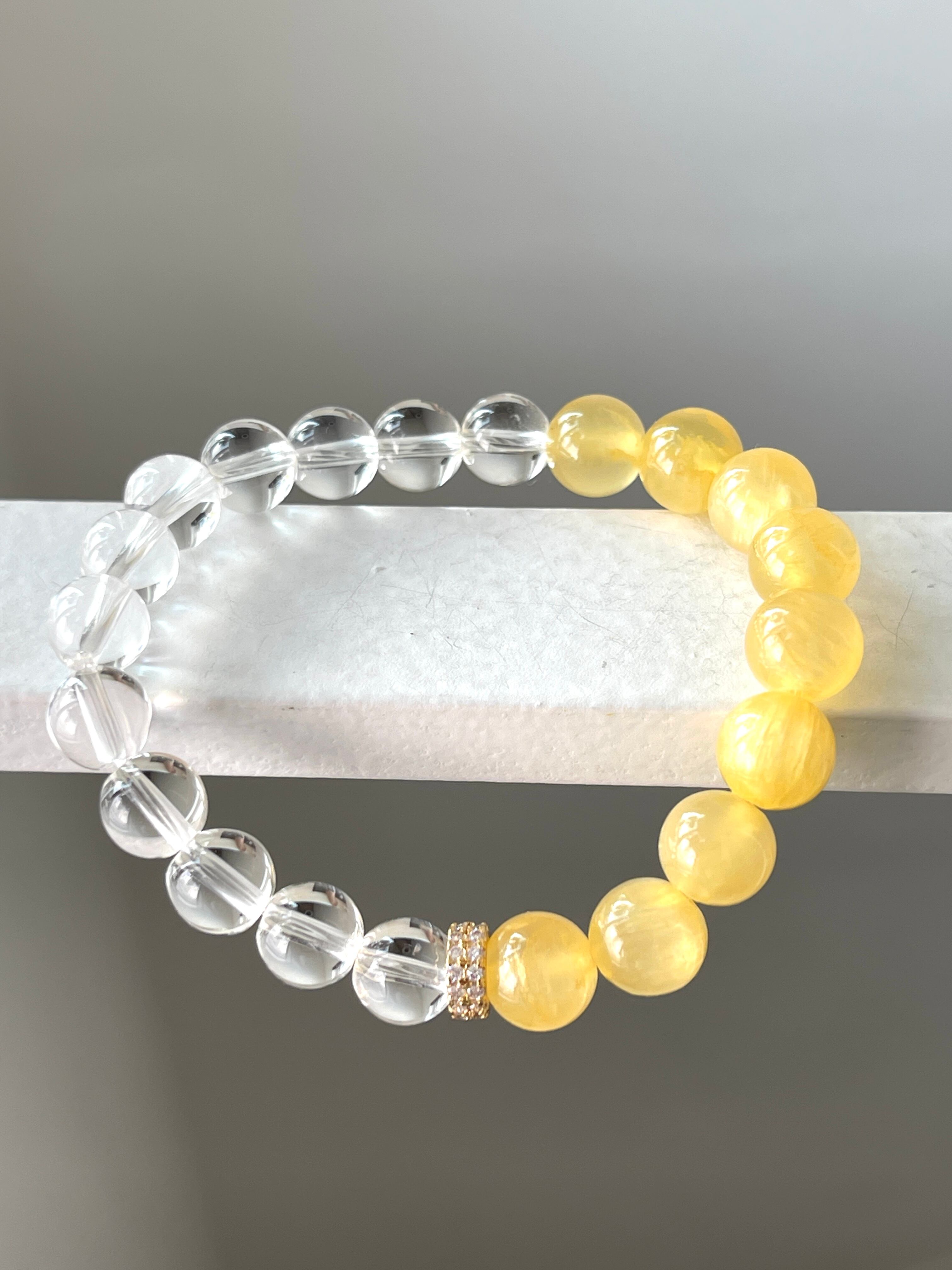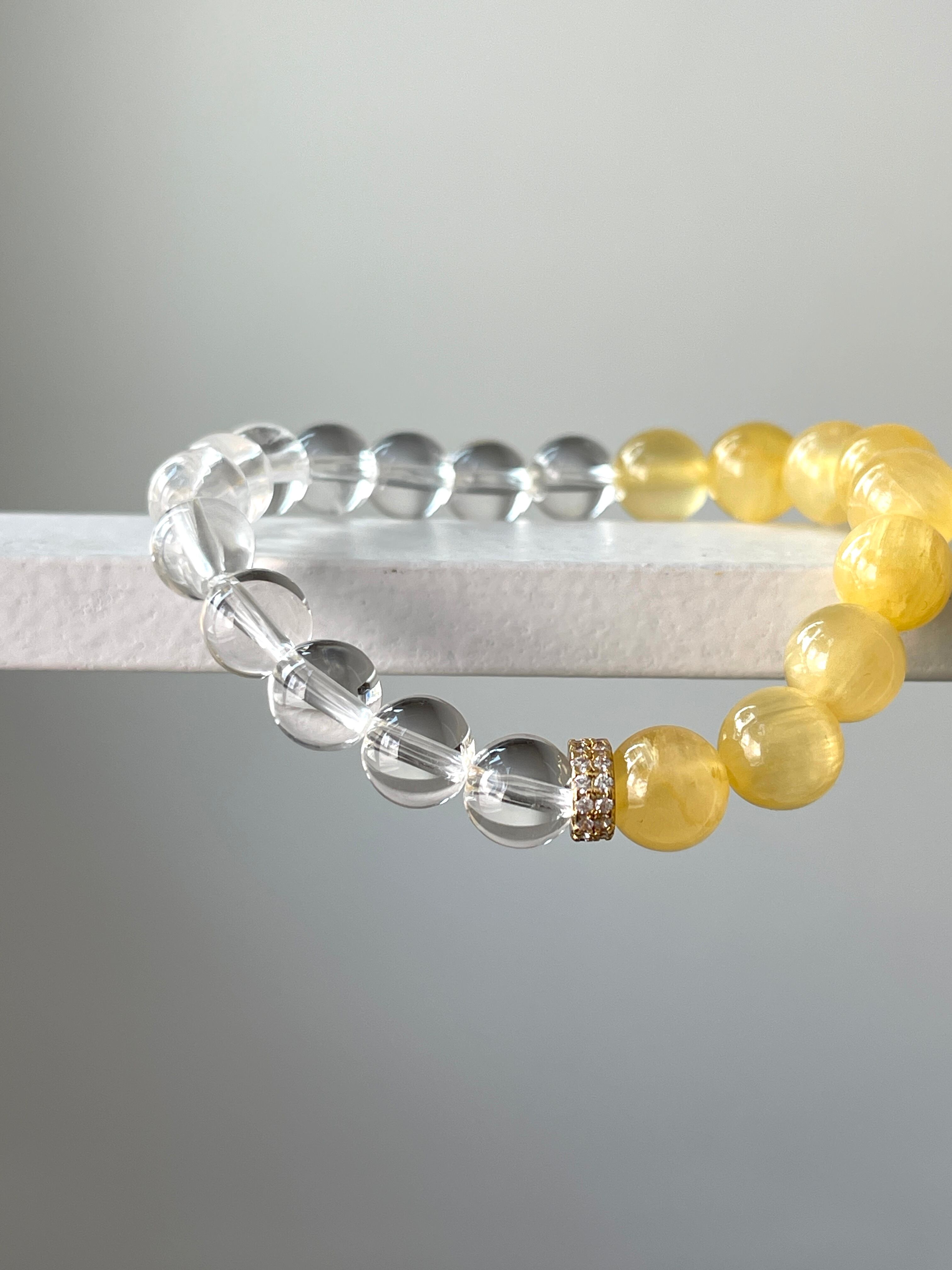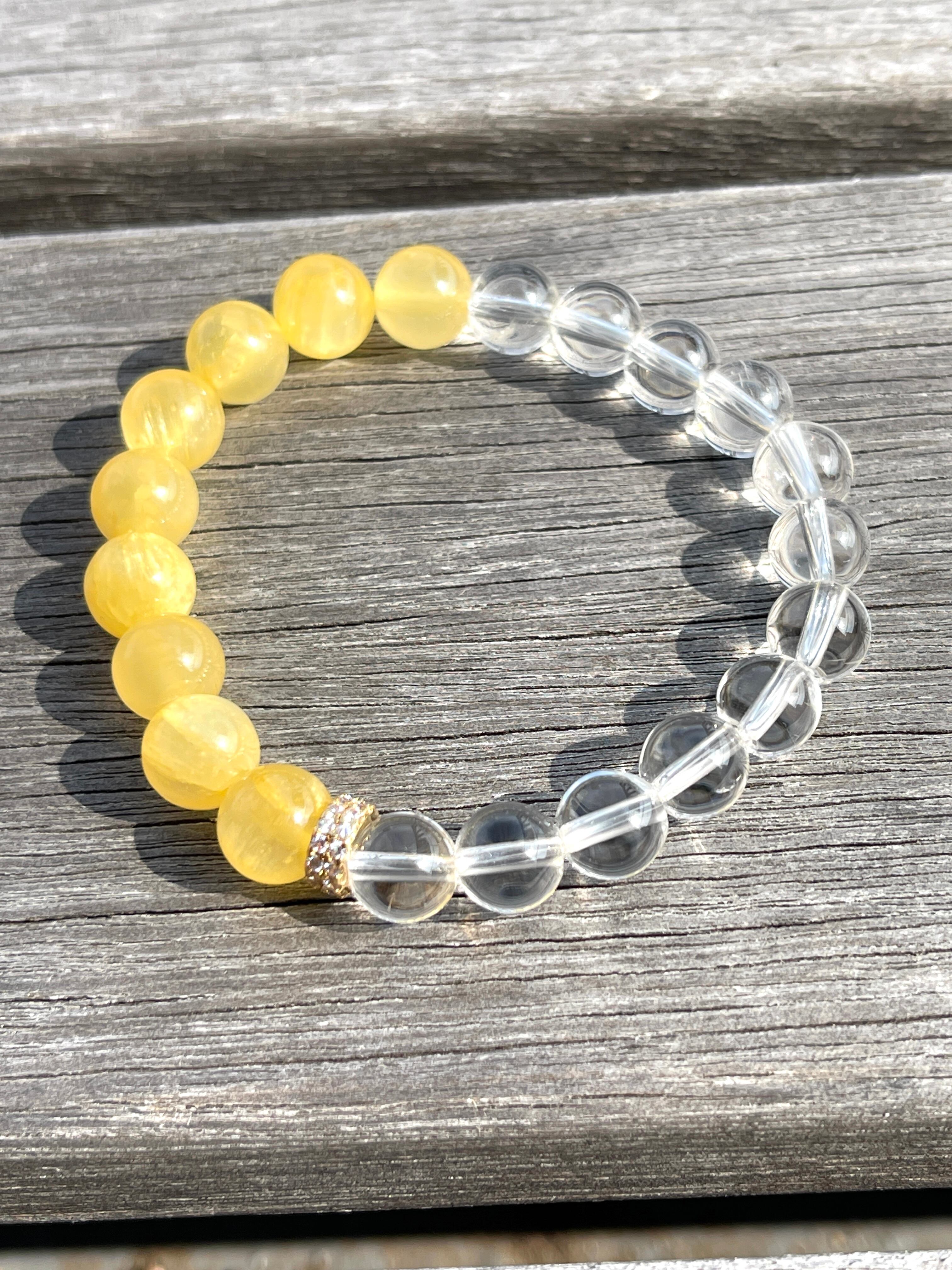 【人脈、ご縁を引き寄せ】アラゴナイト&水晶ブレスレット♡第3チャクラ対応
