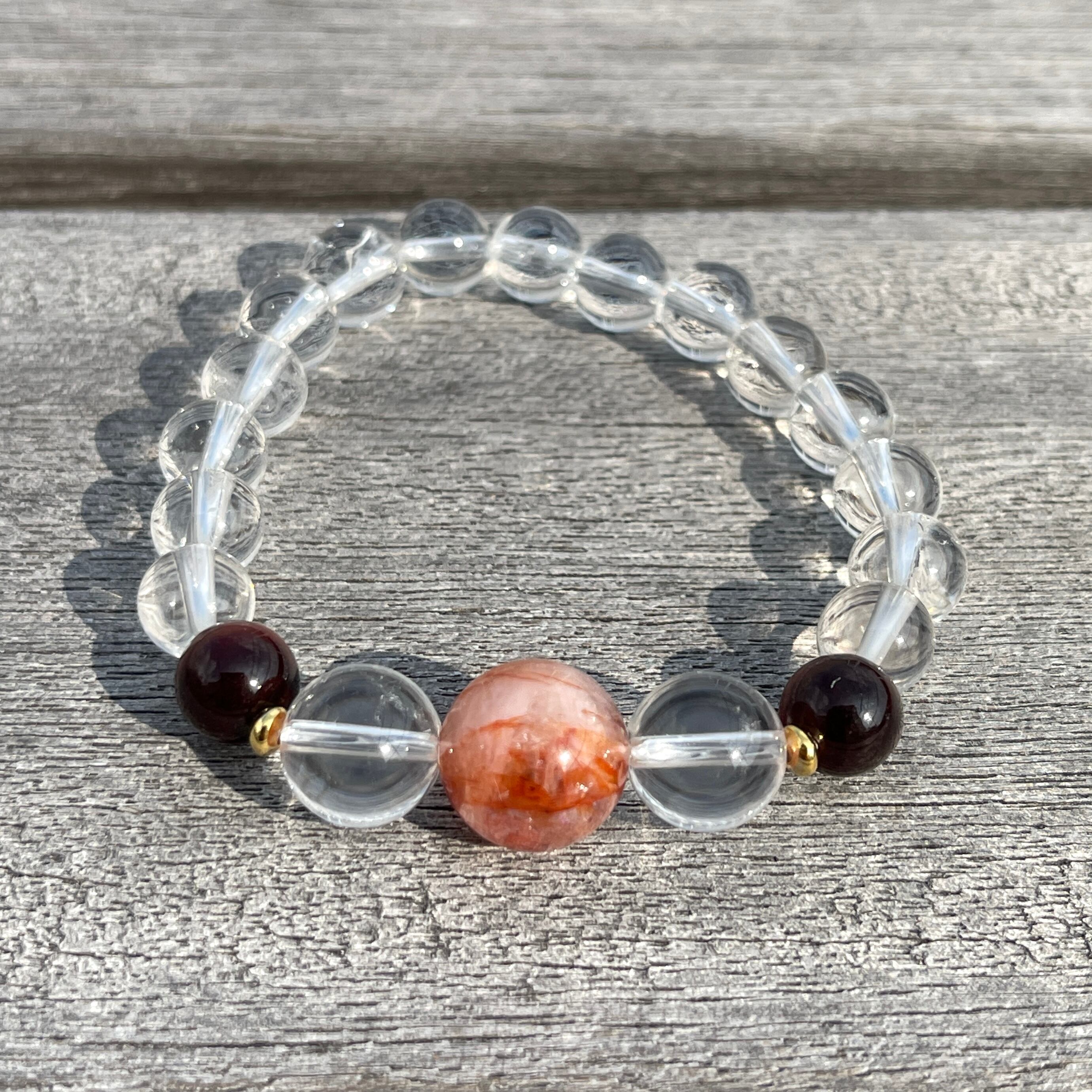 【第1チャクラ対応】レッドヘマタイトクォーツ♡天然水晶♡パワーストーンブレスレット
