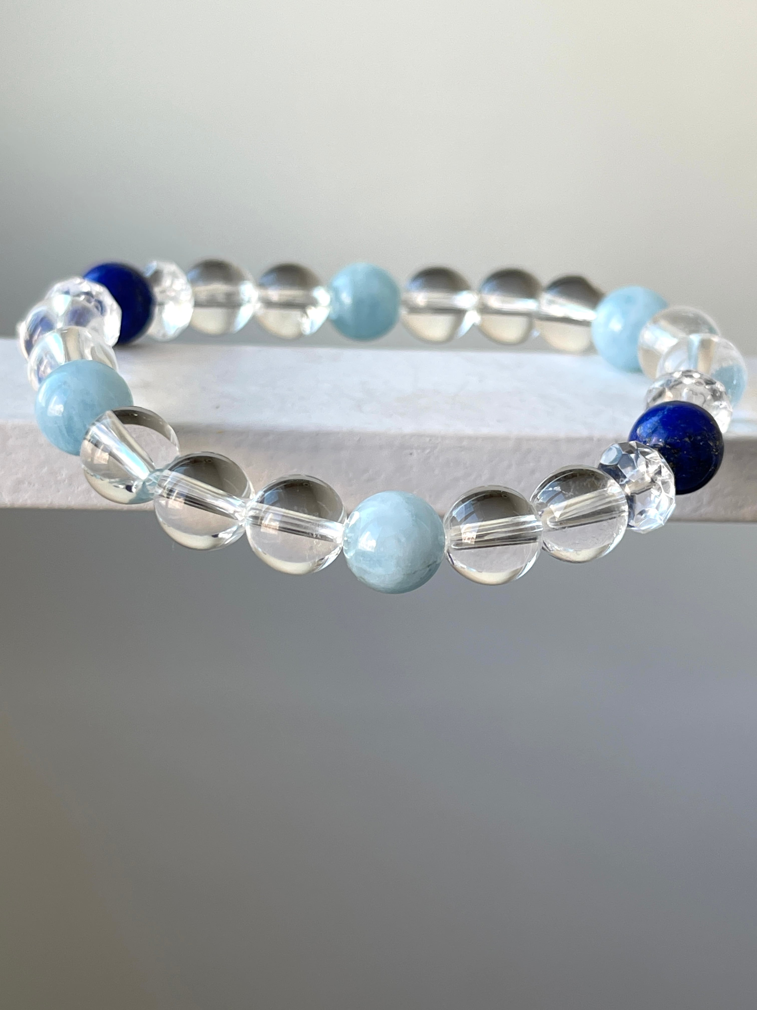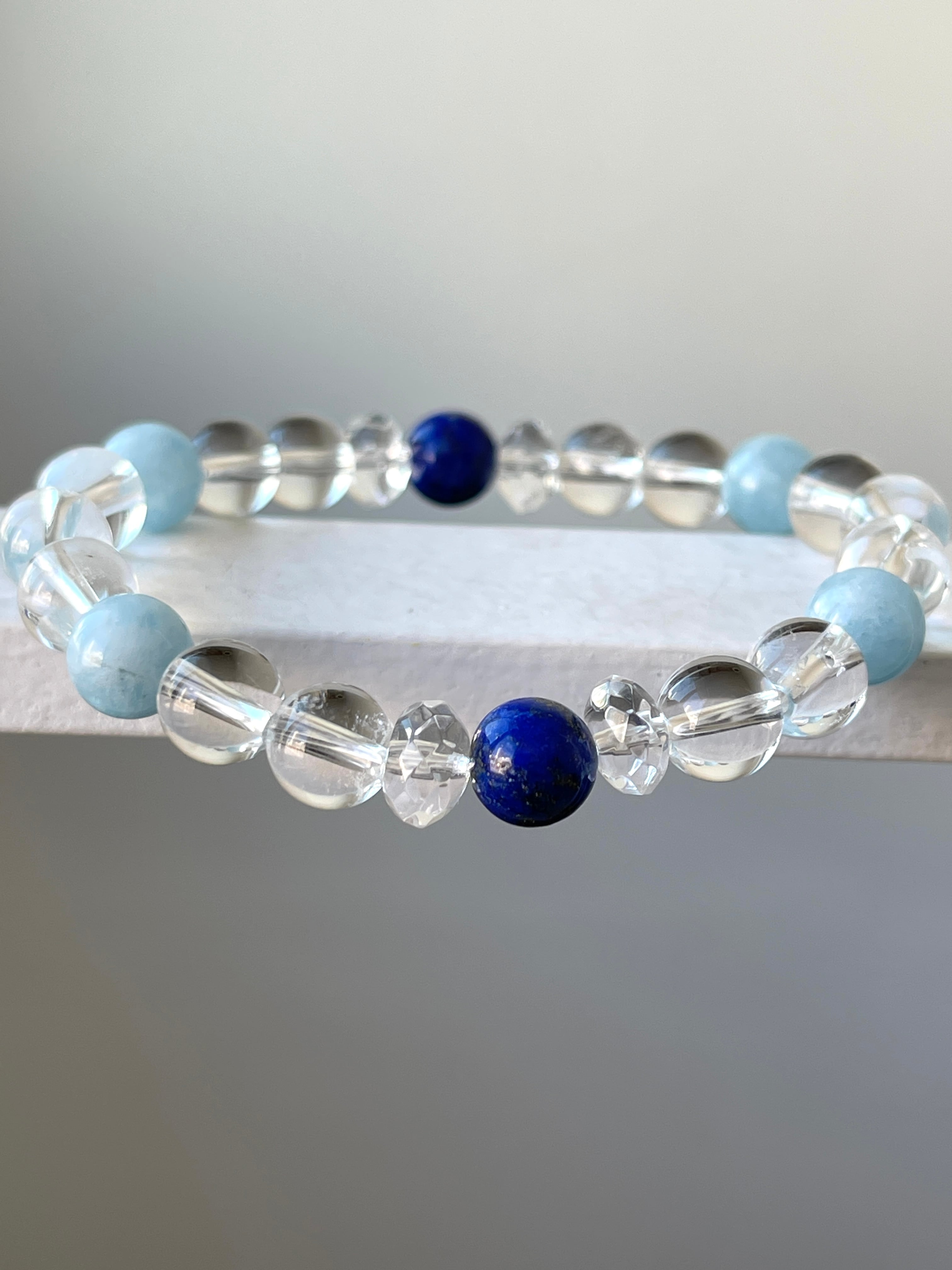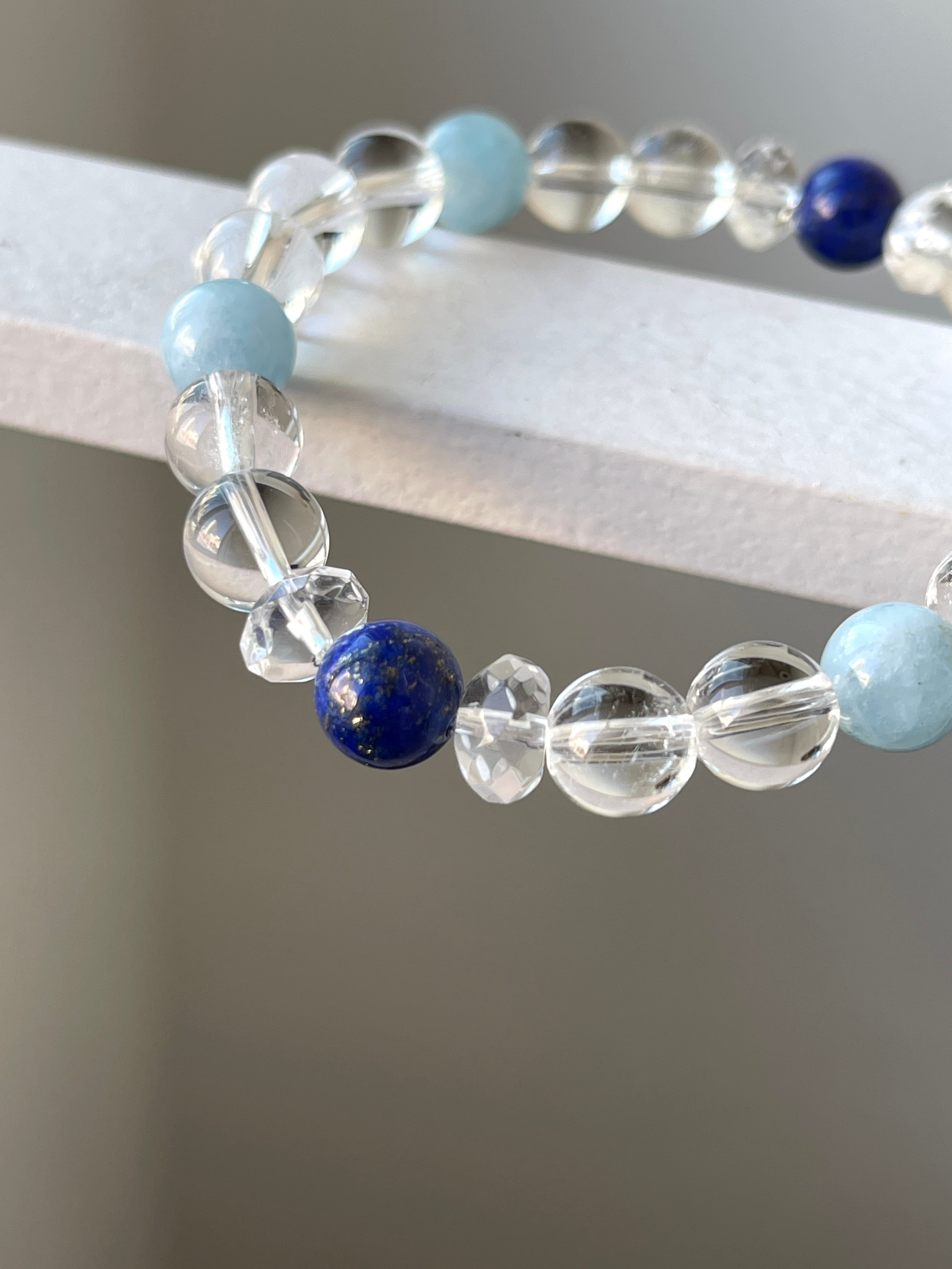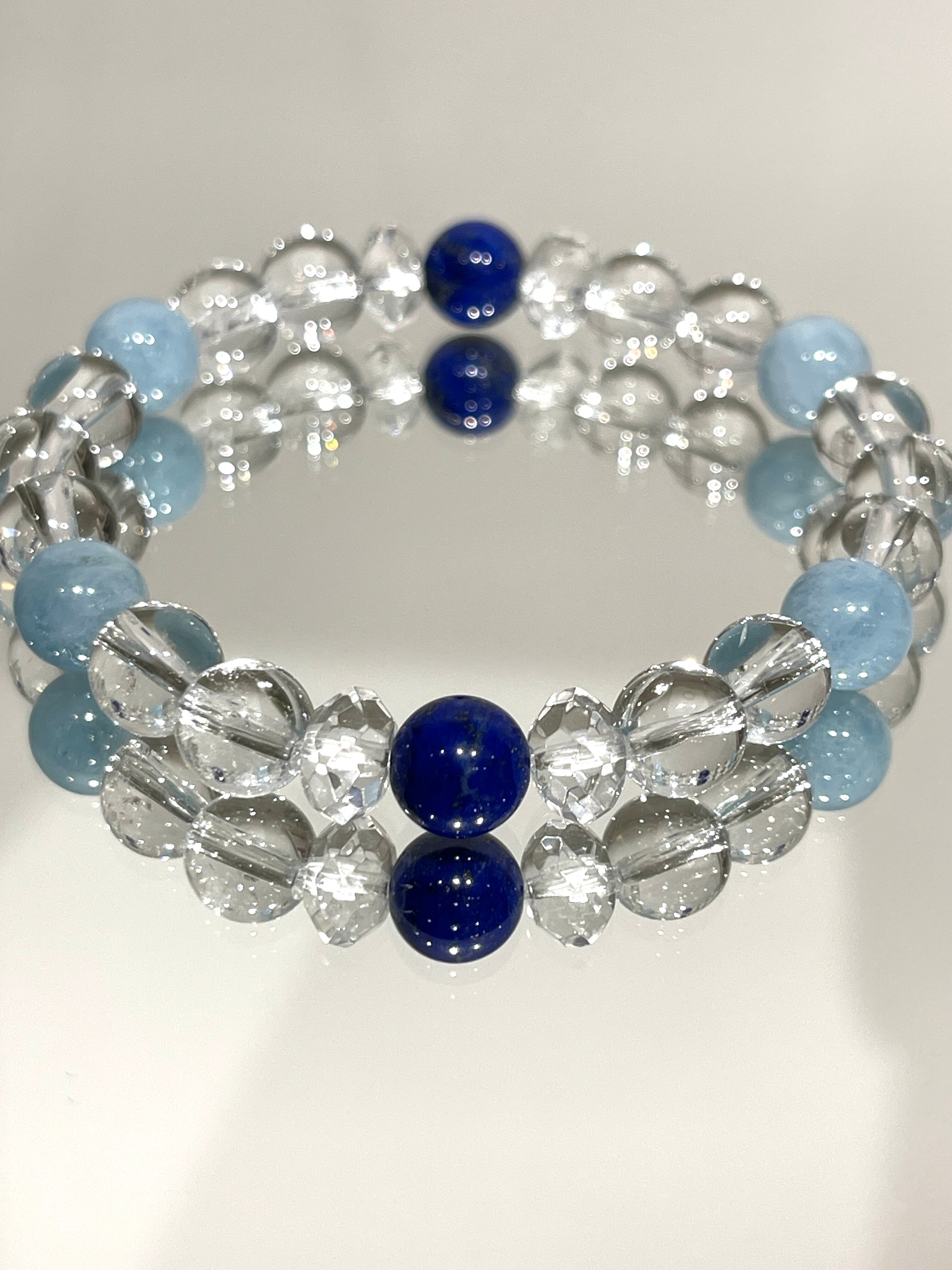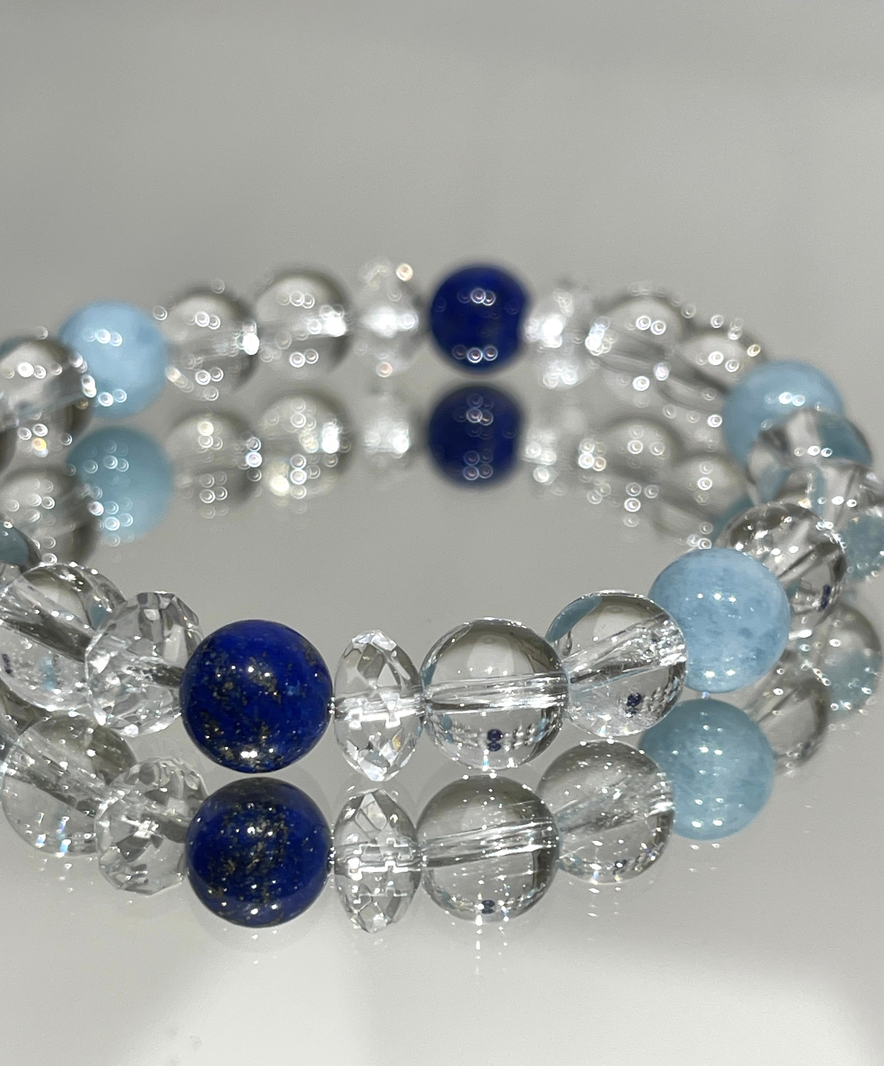天然水晶がラピスラズリとアクアマリンの効果を倍増させます。