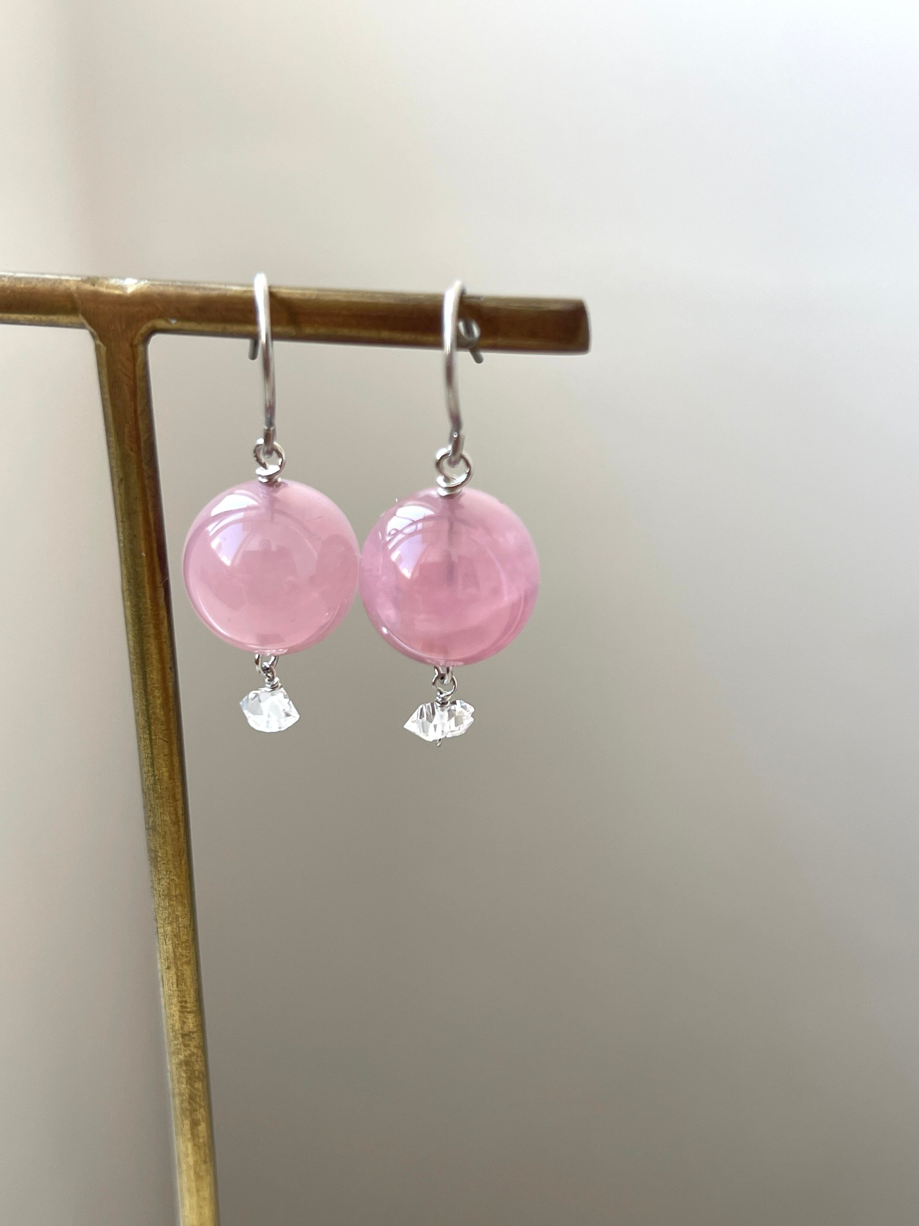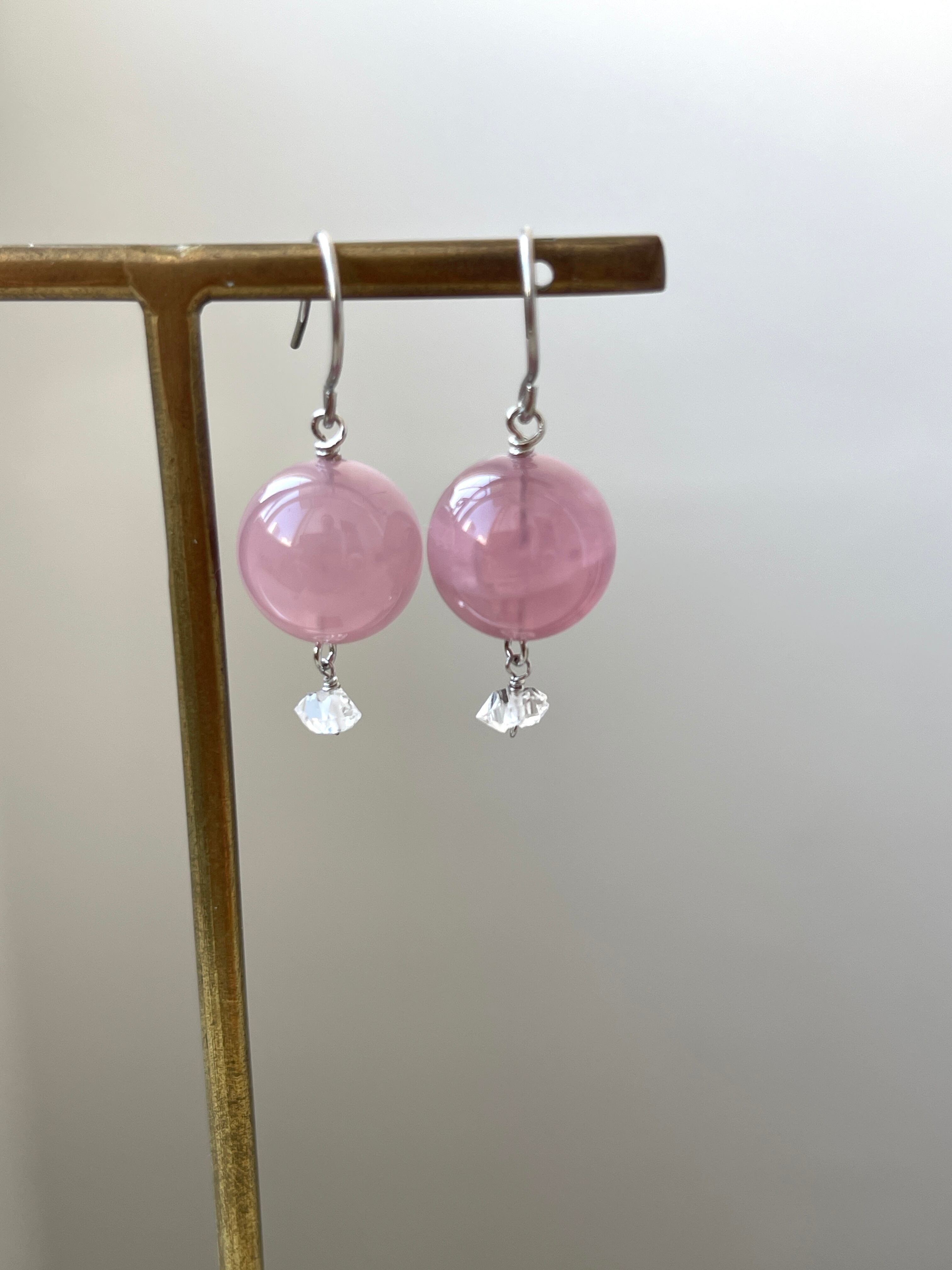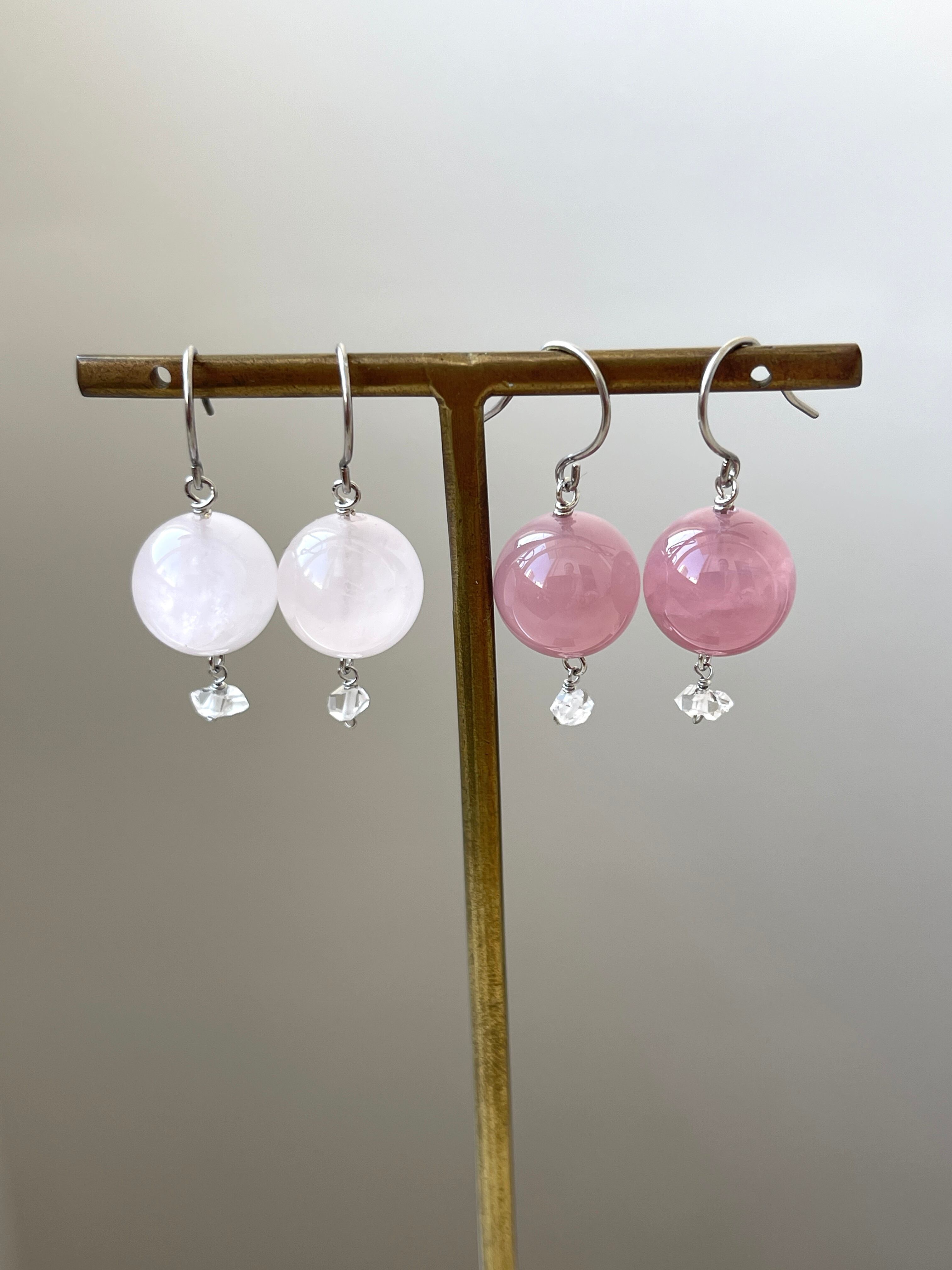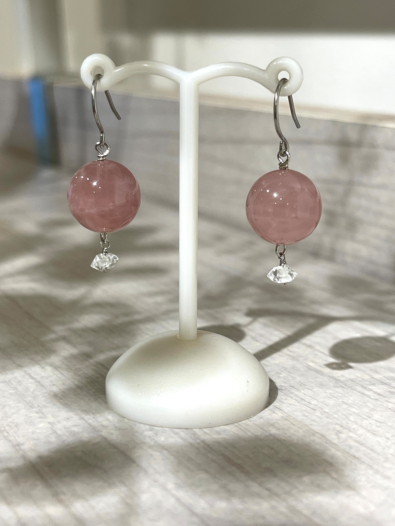 稀少石マダガスカル産ディープローズクォーツとハーキマーダイヤモンドのピアスが入荷しました。