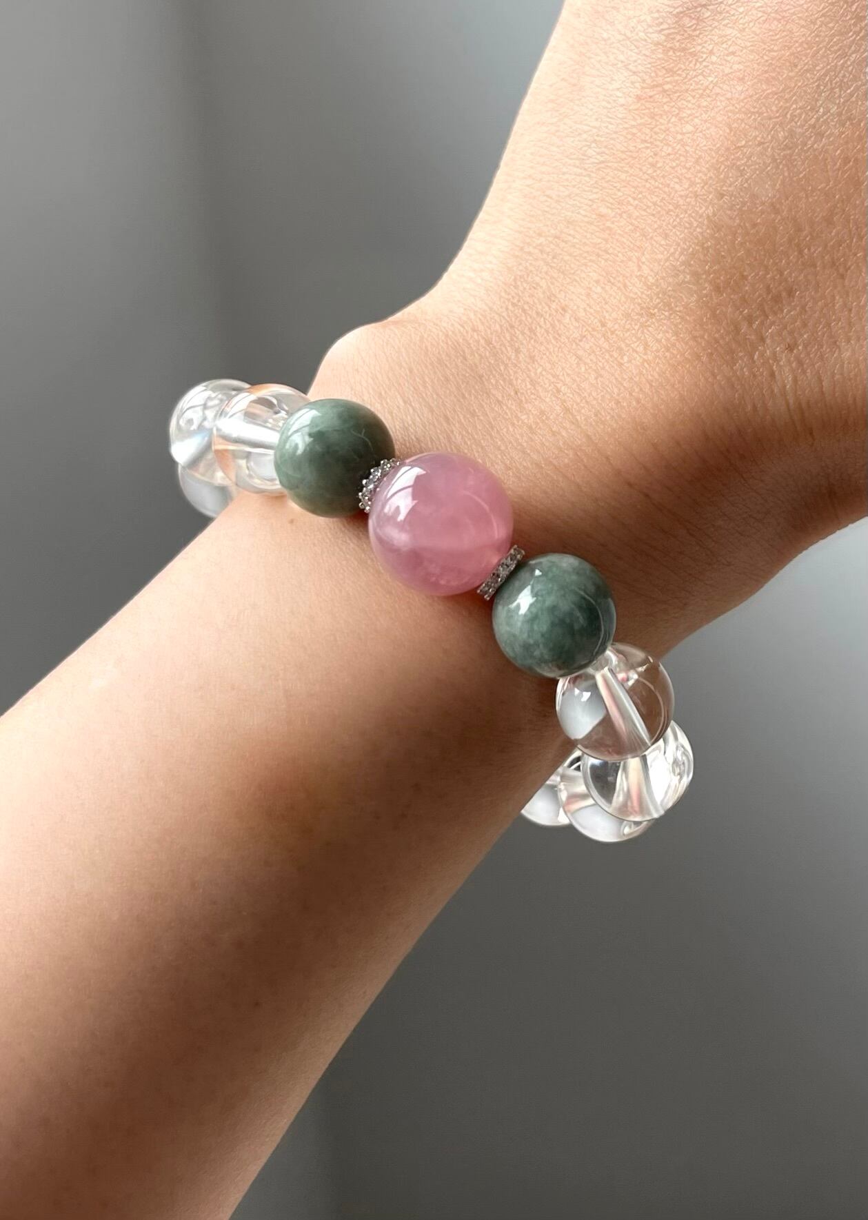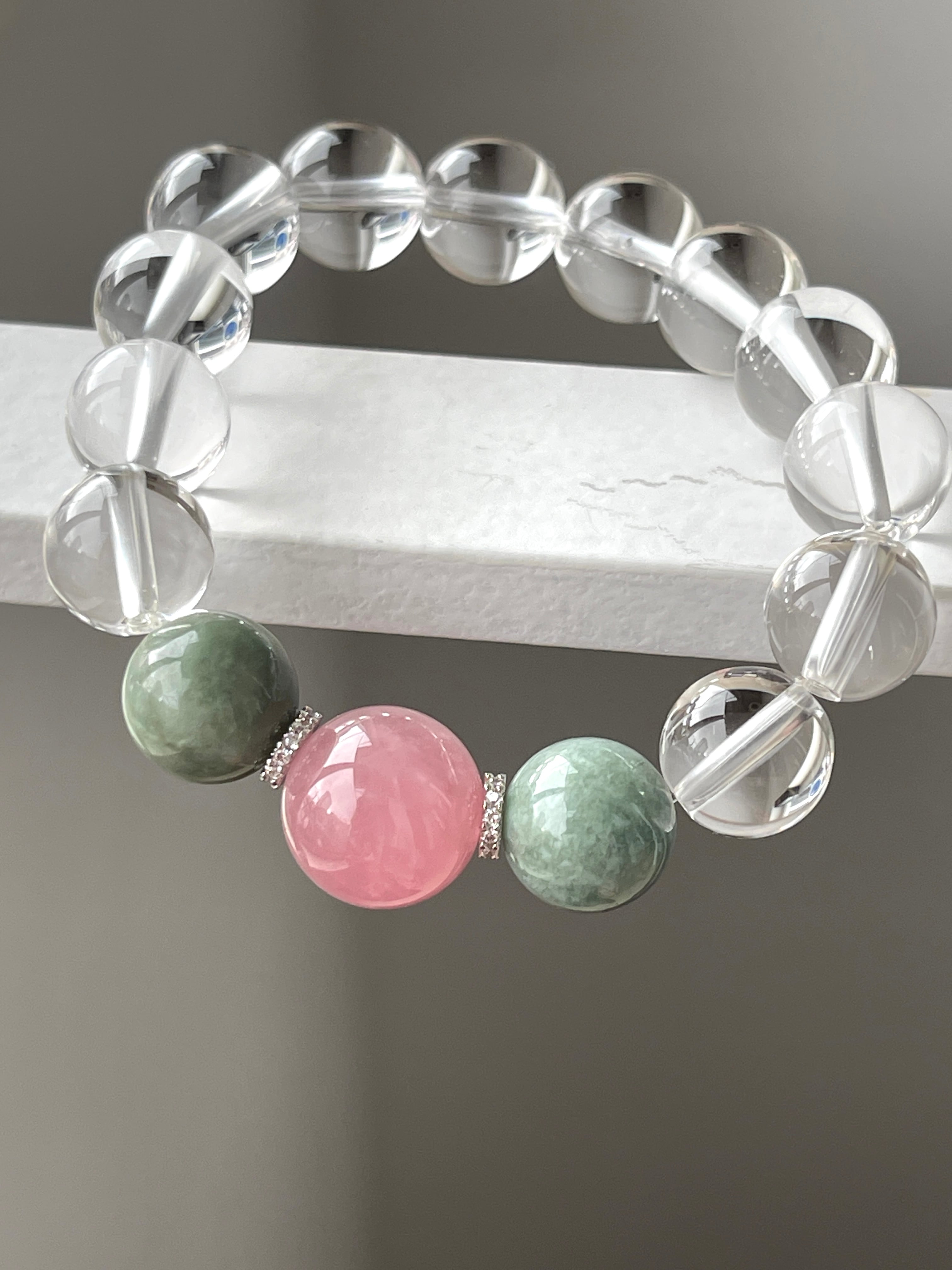 【ハートチャクラ対応】ディープローズクォーツ&ビルマ産翡翠パワーストーンブレスレット