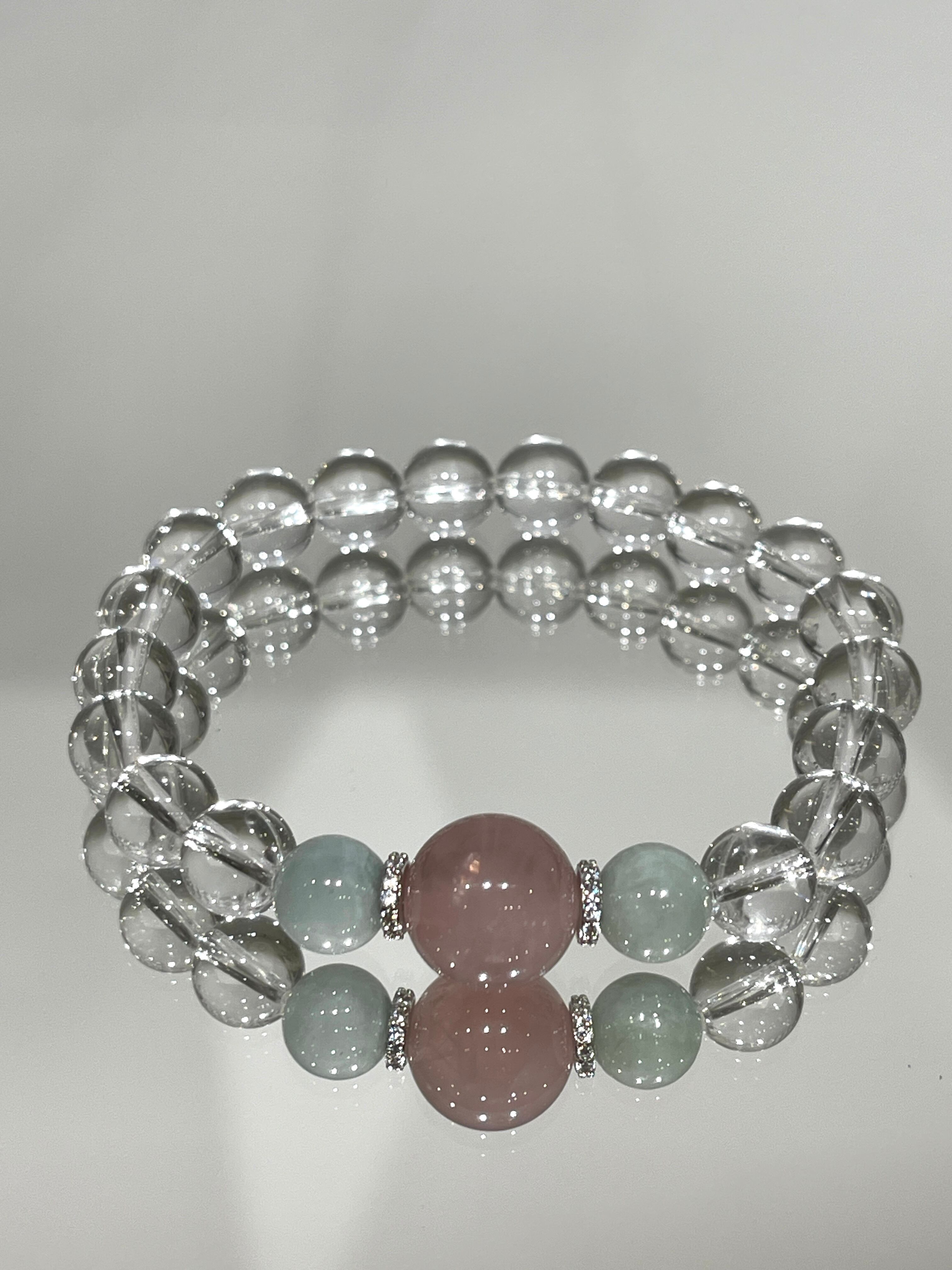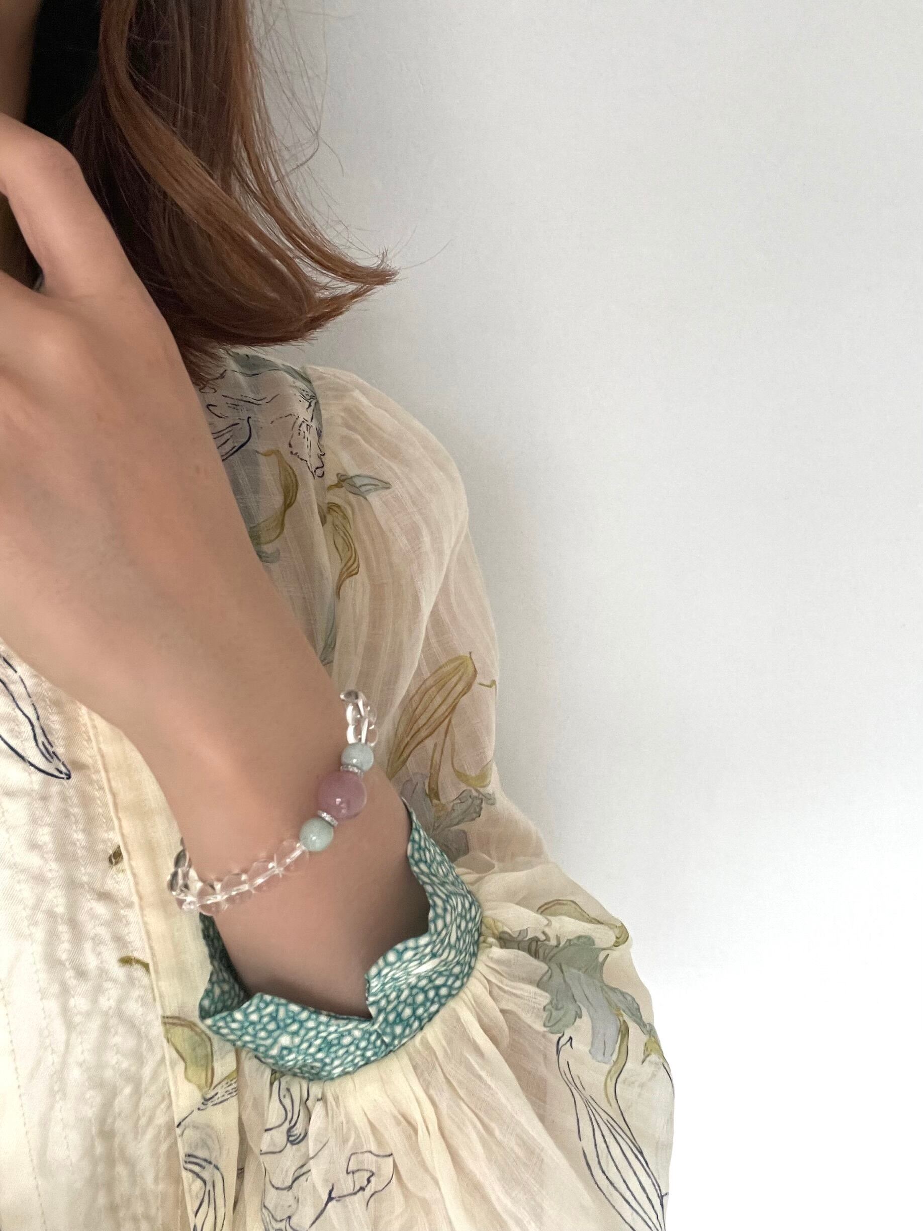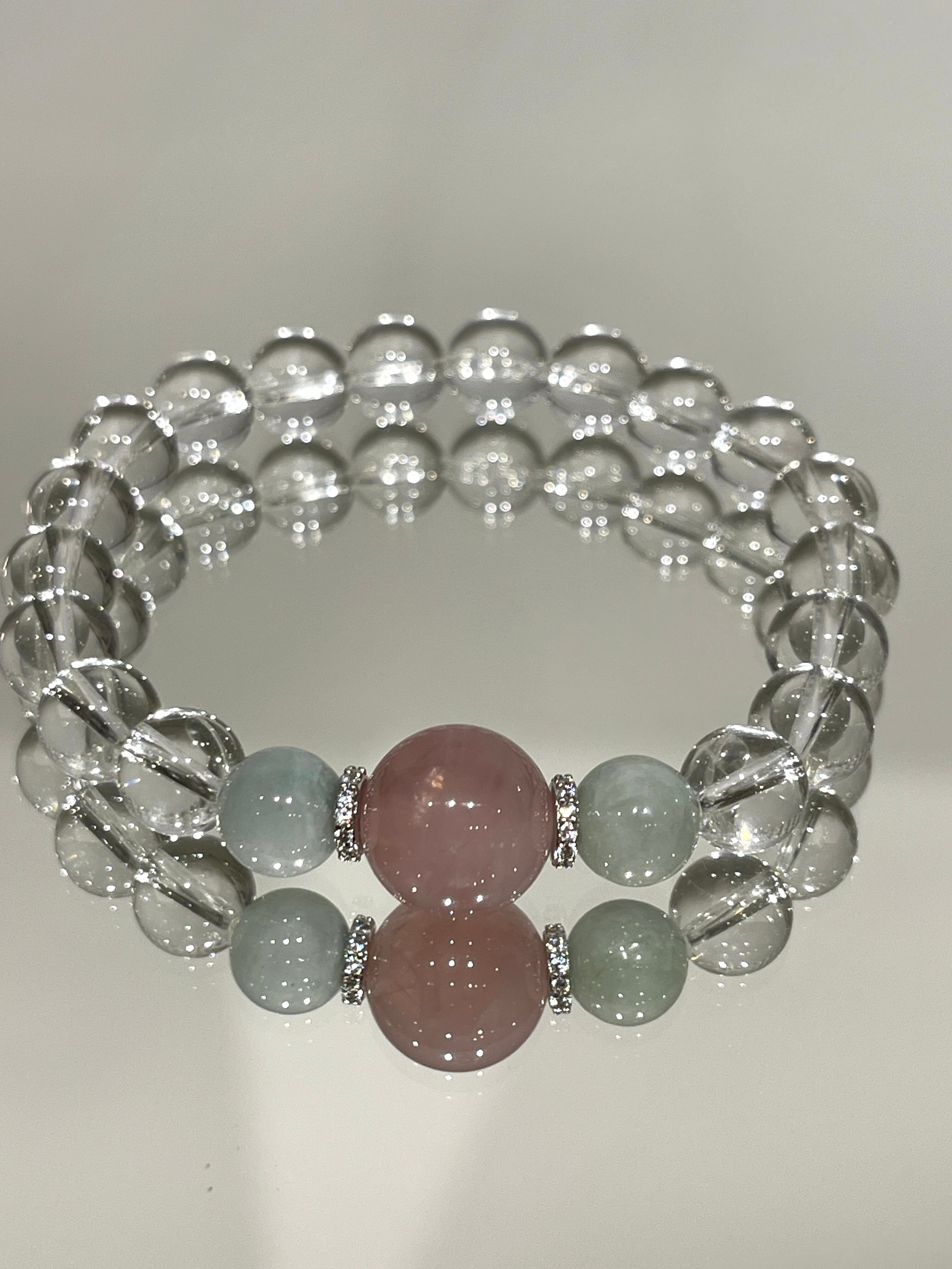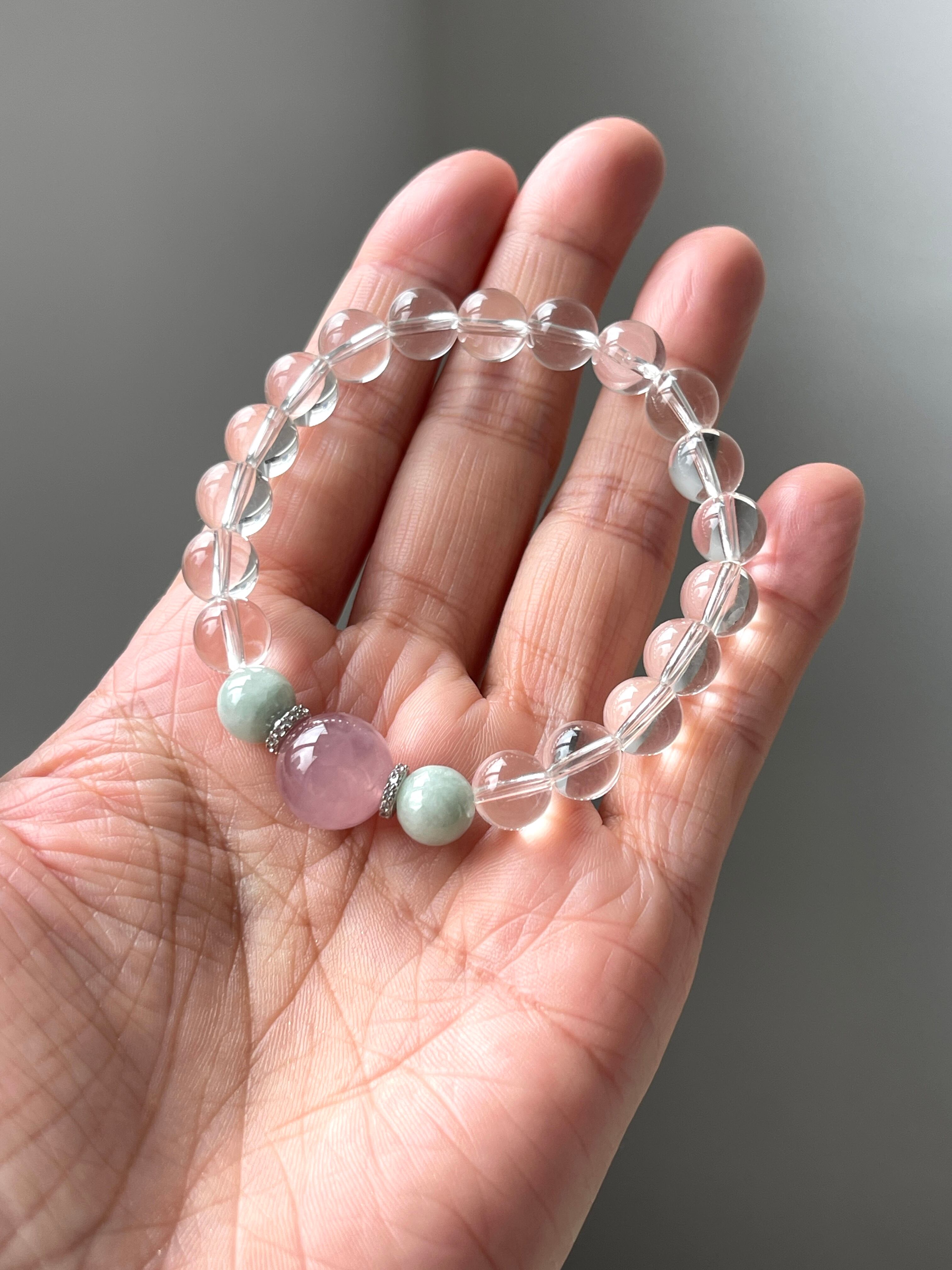 豊かな愛を引き寄せ、トラウマ解消や心の癒しをサポートする力を持っています。ローズクォーツは愛情を高め、翡翠は幸運と調和をもたらし、水晶は浄化とバランスを与えます。このブレスレットは、身につけるだけでポジティブで癒しのパワーを身に纏い、心のバランスを整えます。