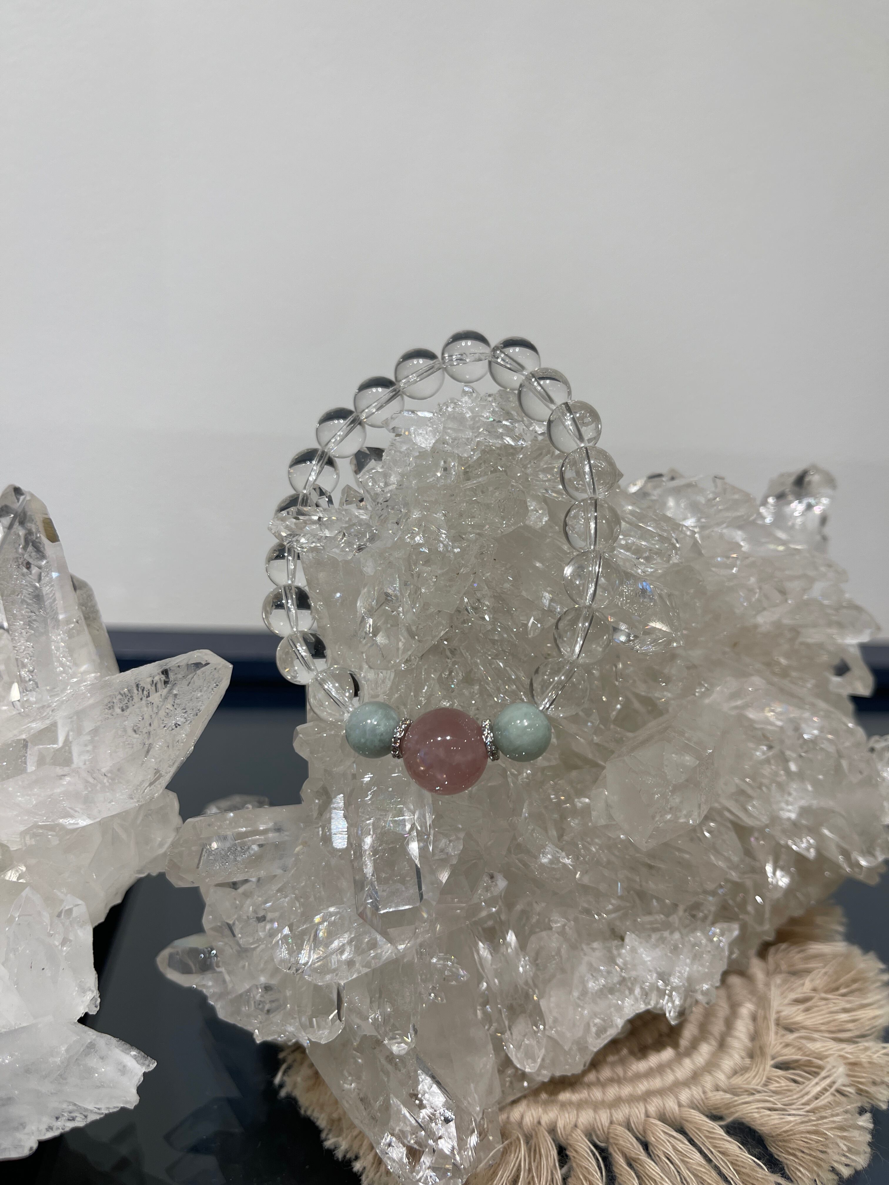 このディープローズクォーツ&ビルマ産翡翠♡天然水晶パワーストーンブレスレットが、あなたの日常をより豊かにし、幸せな気持ちで満たしてくれることを願ってお仕立ていたしました。
