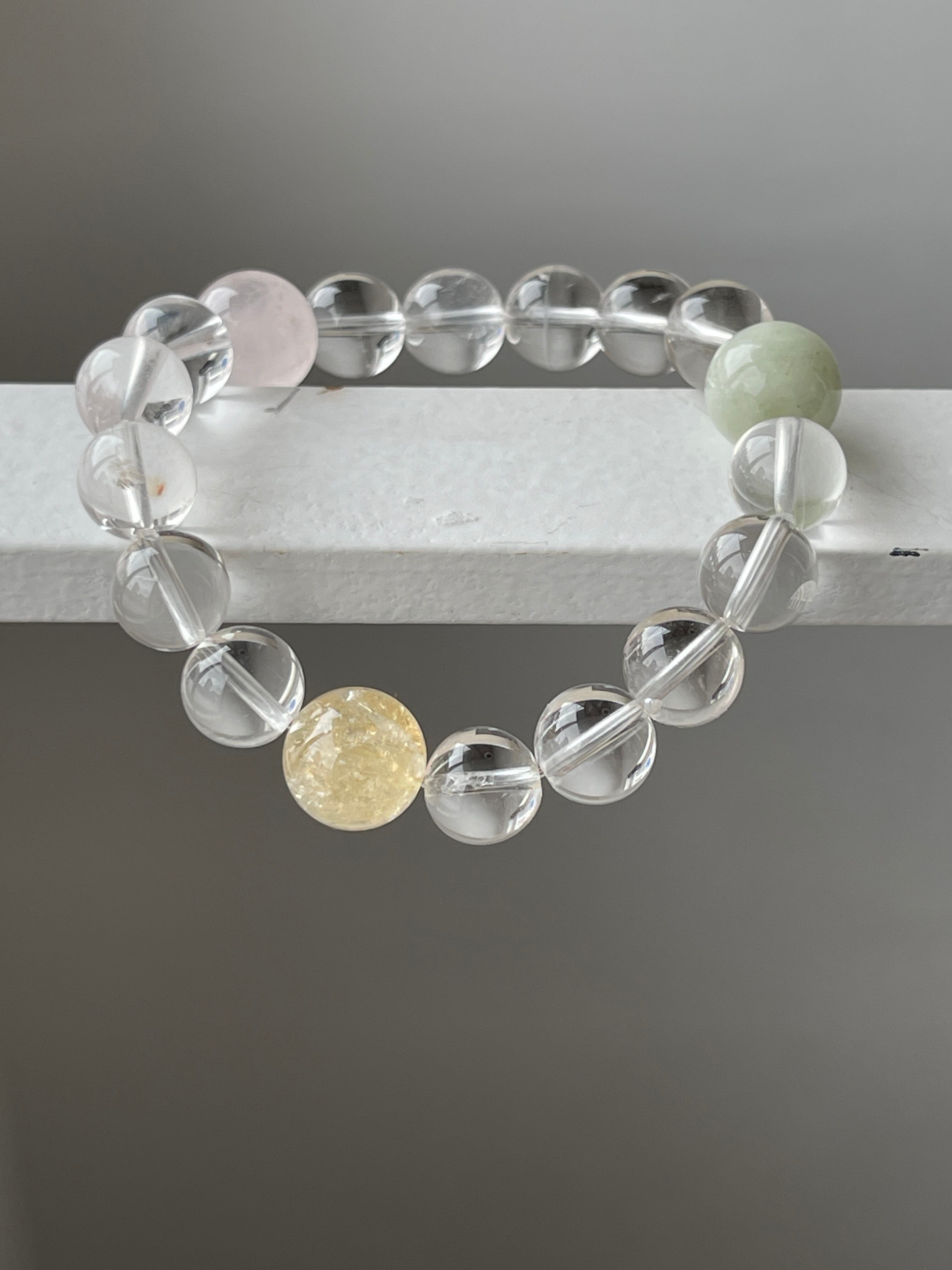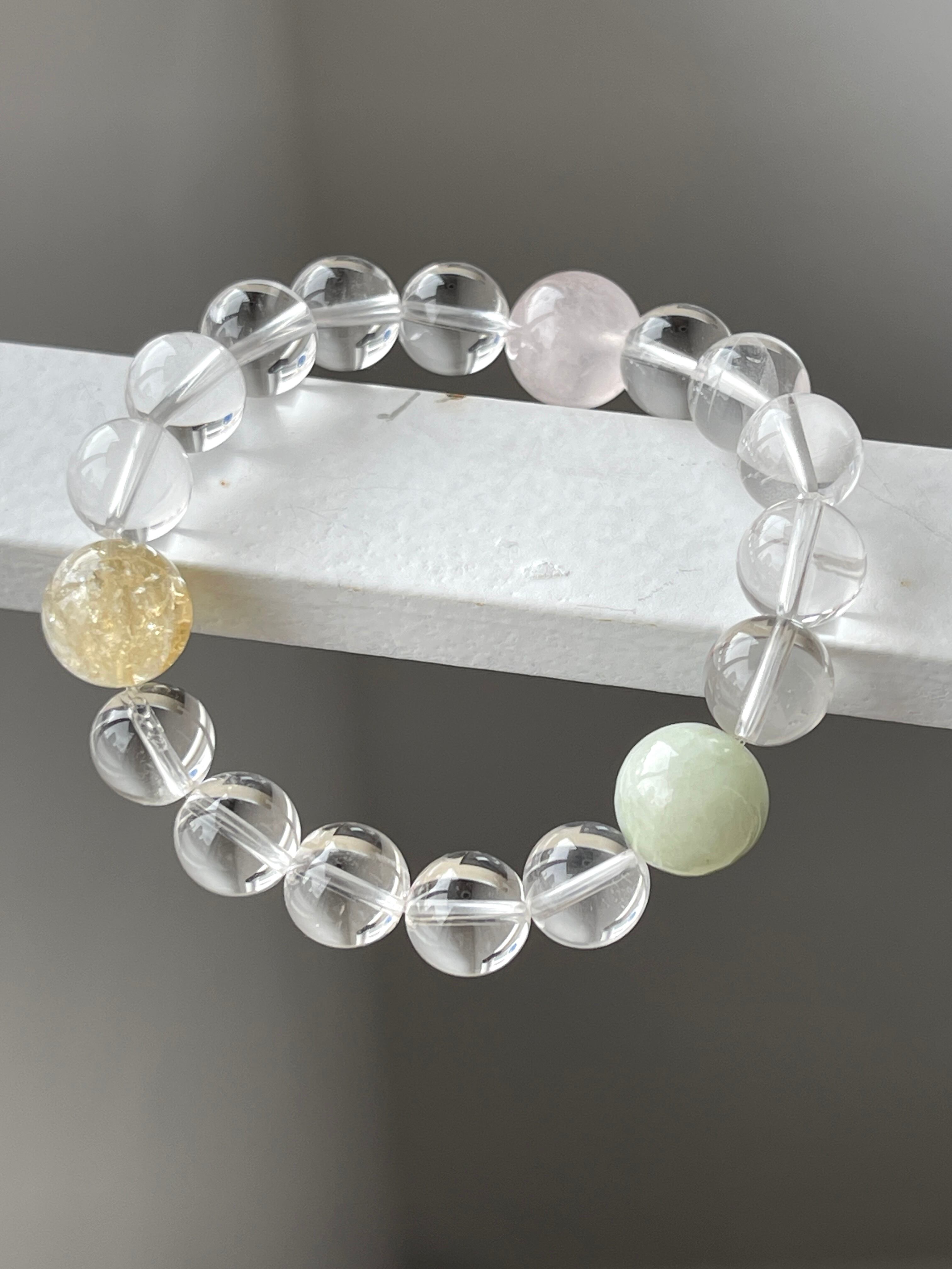石 ビルマ産翡翠、ローズクォーツ、シトリン、天然水晶