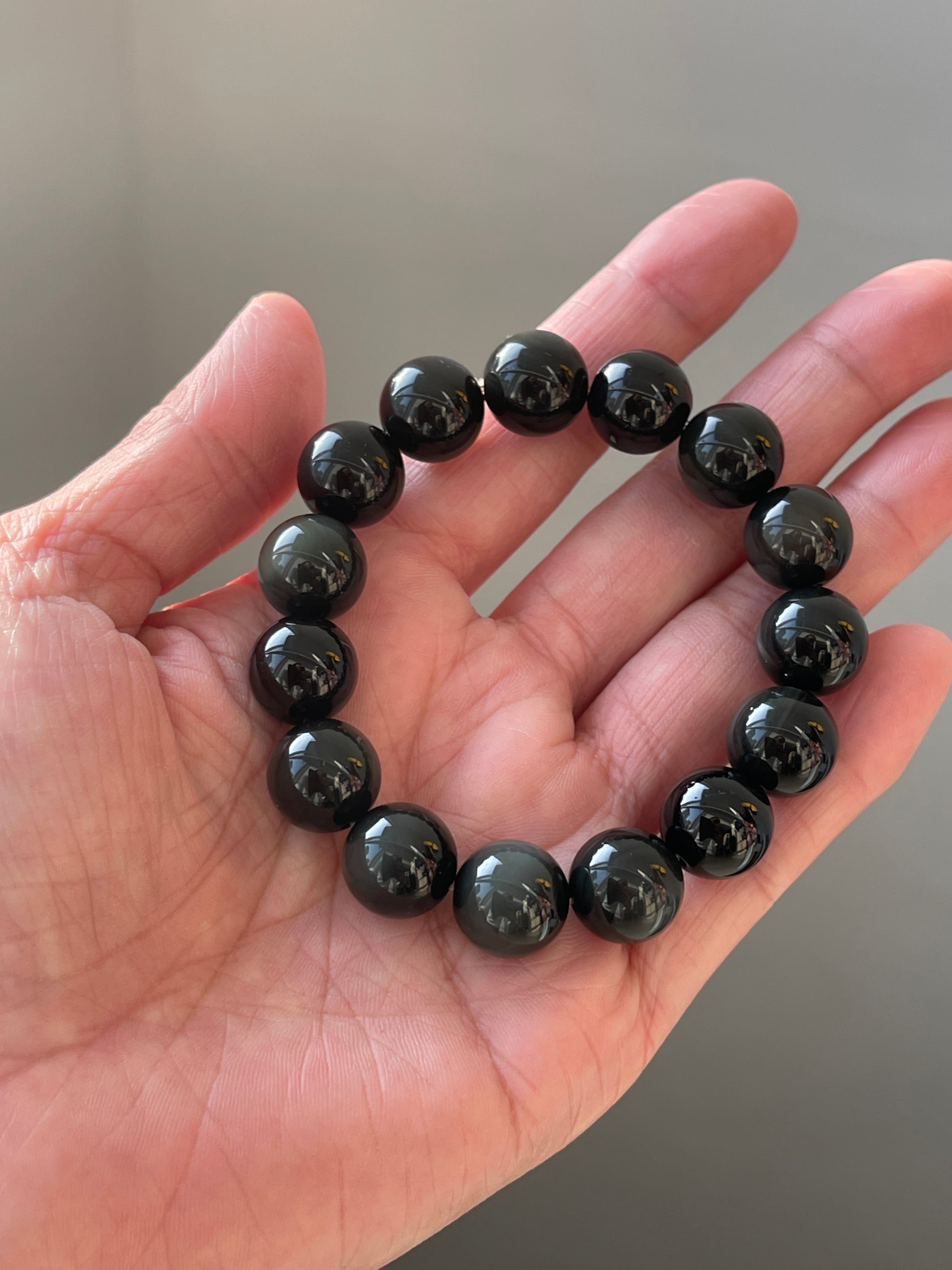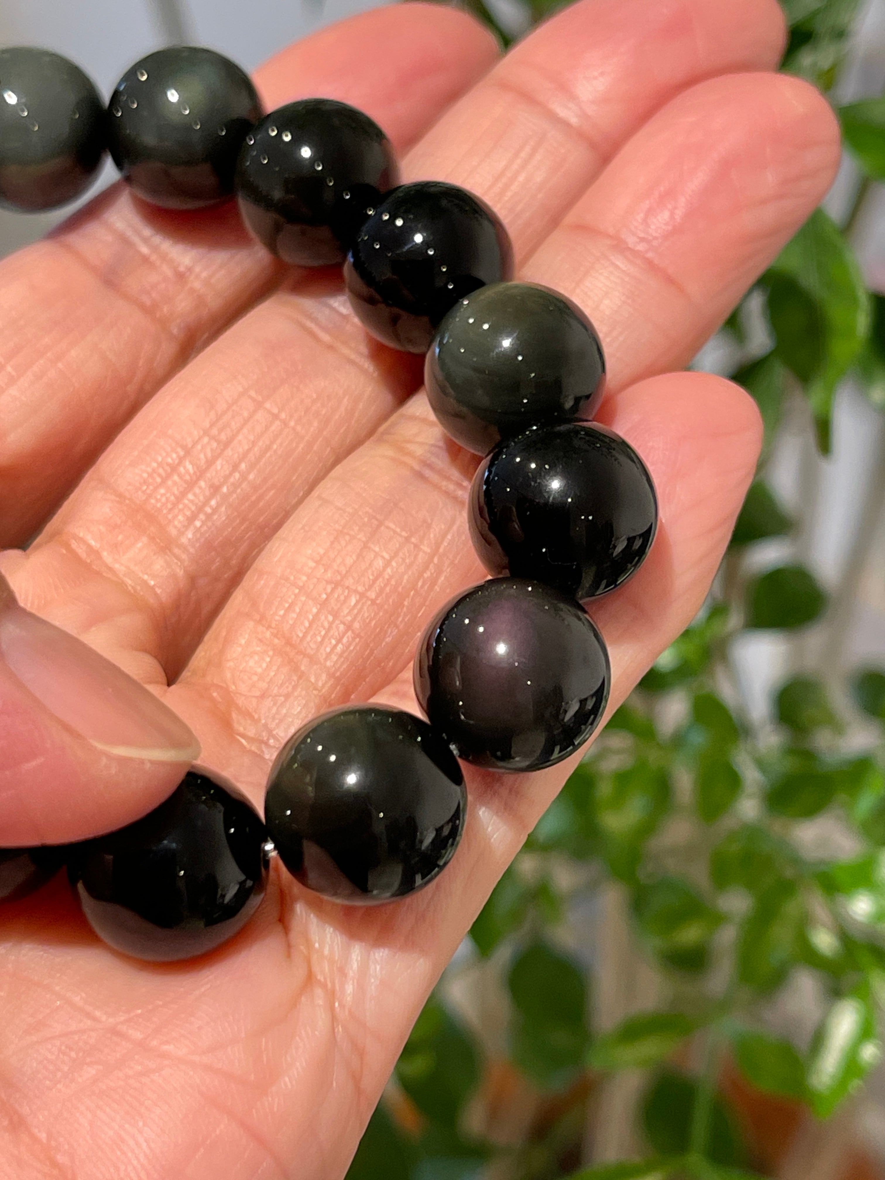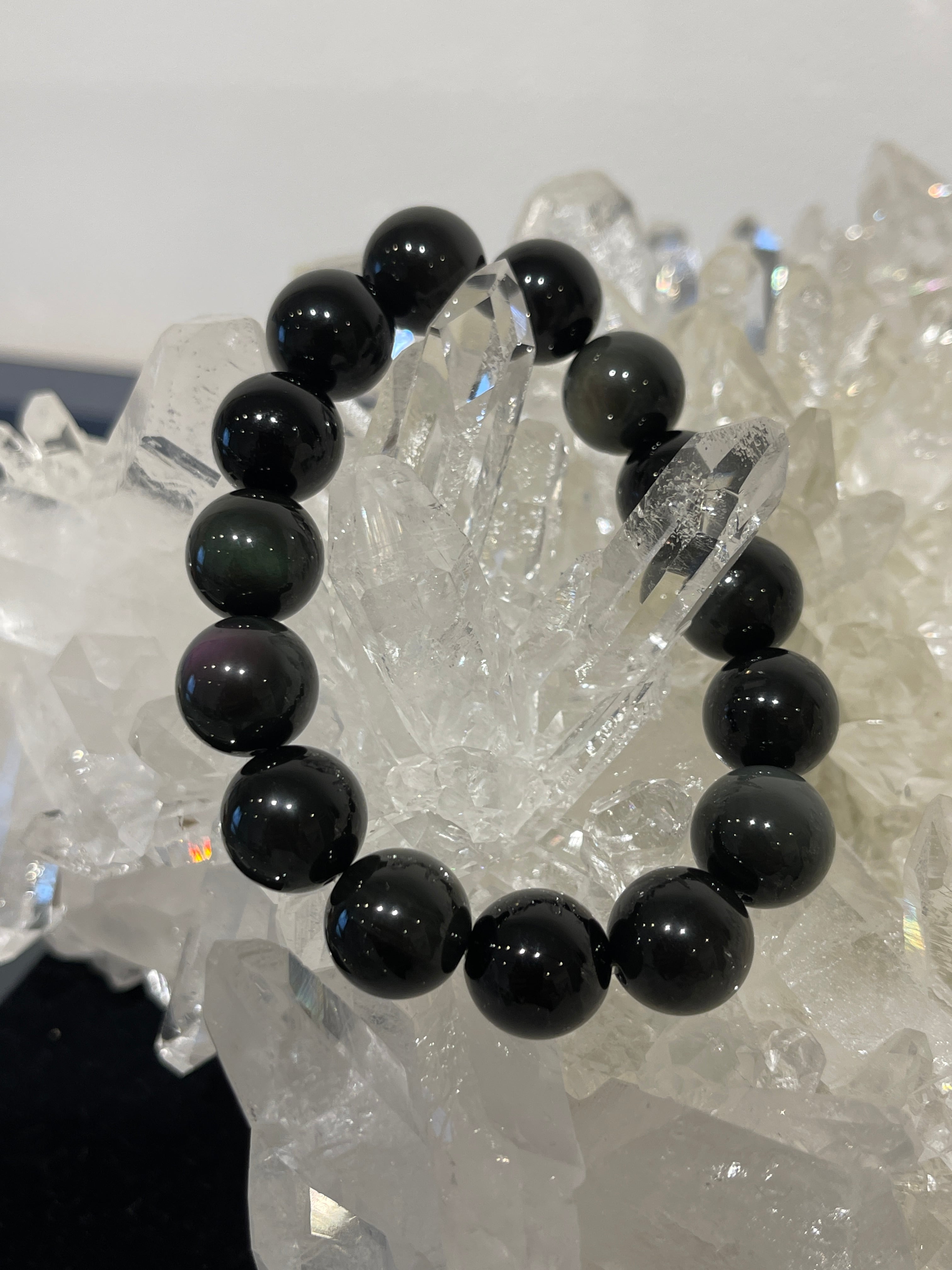 強力な魔除け効果のあるモリオンと躍進の石レインボーオブシディアンのパワーストーンブレスレットが入荷しました。