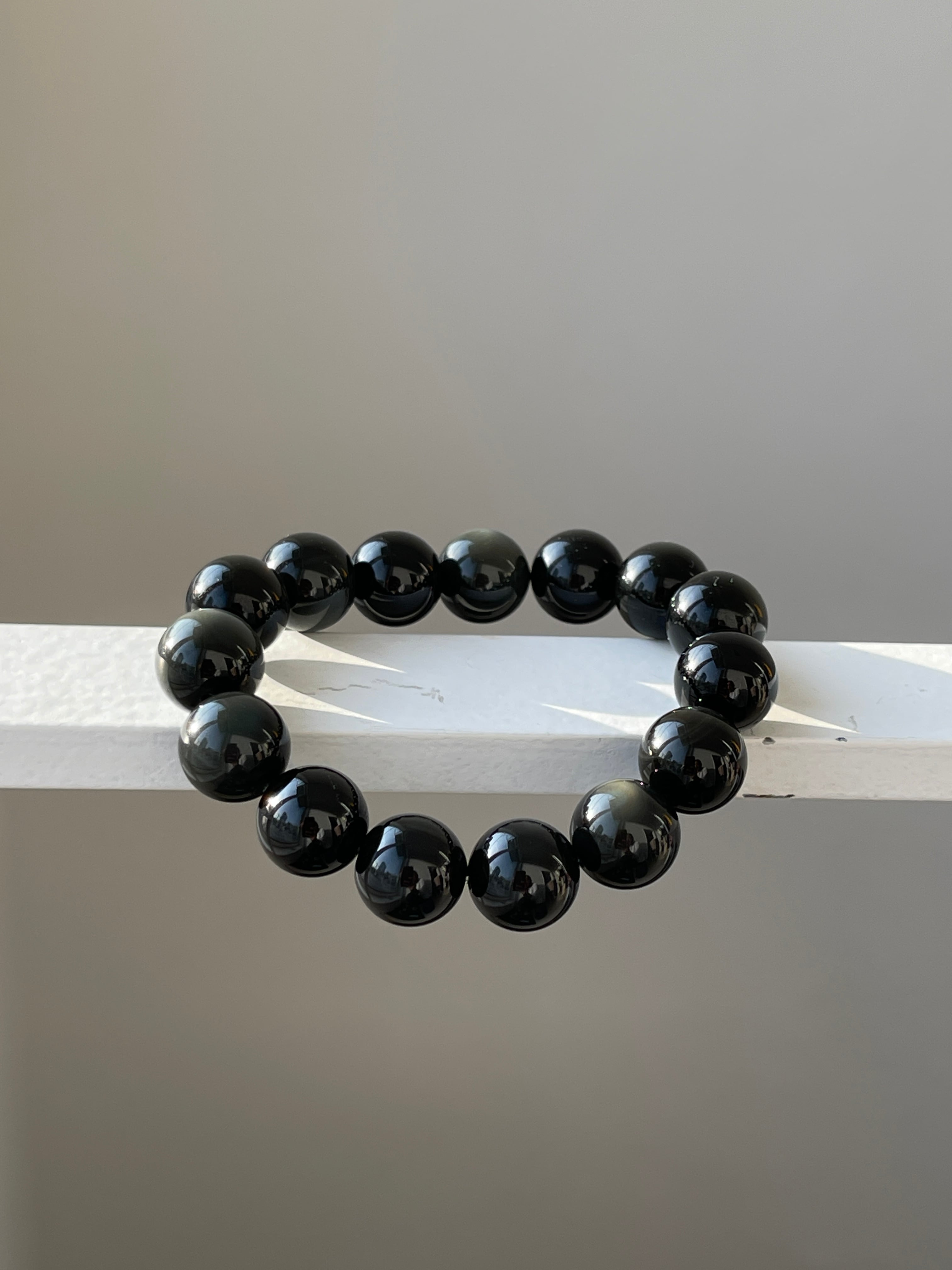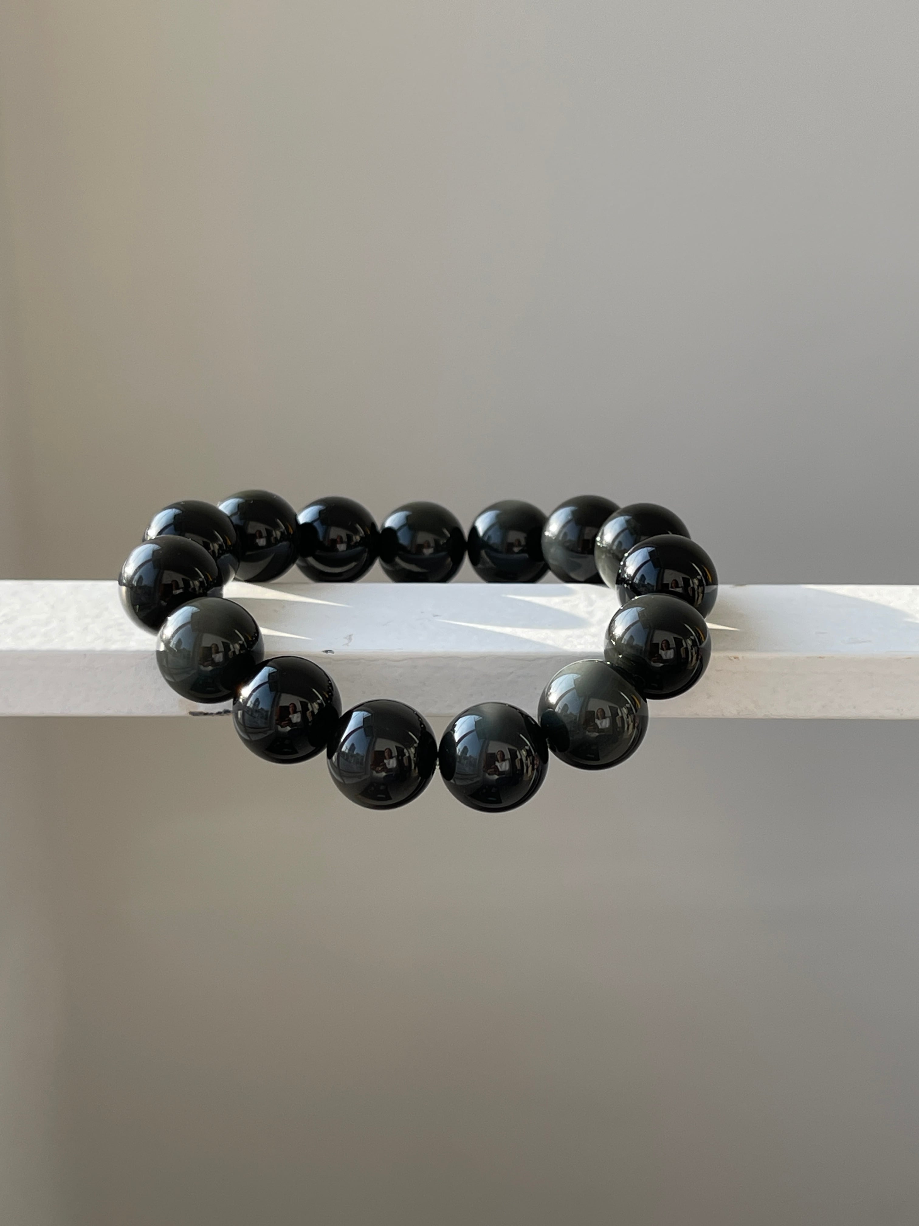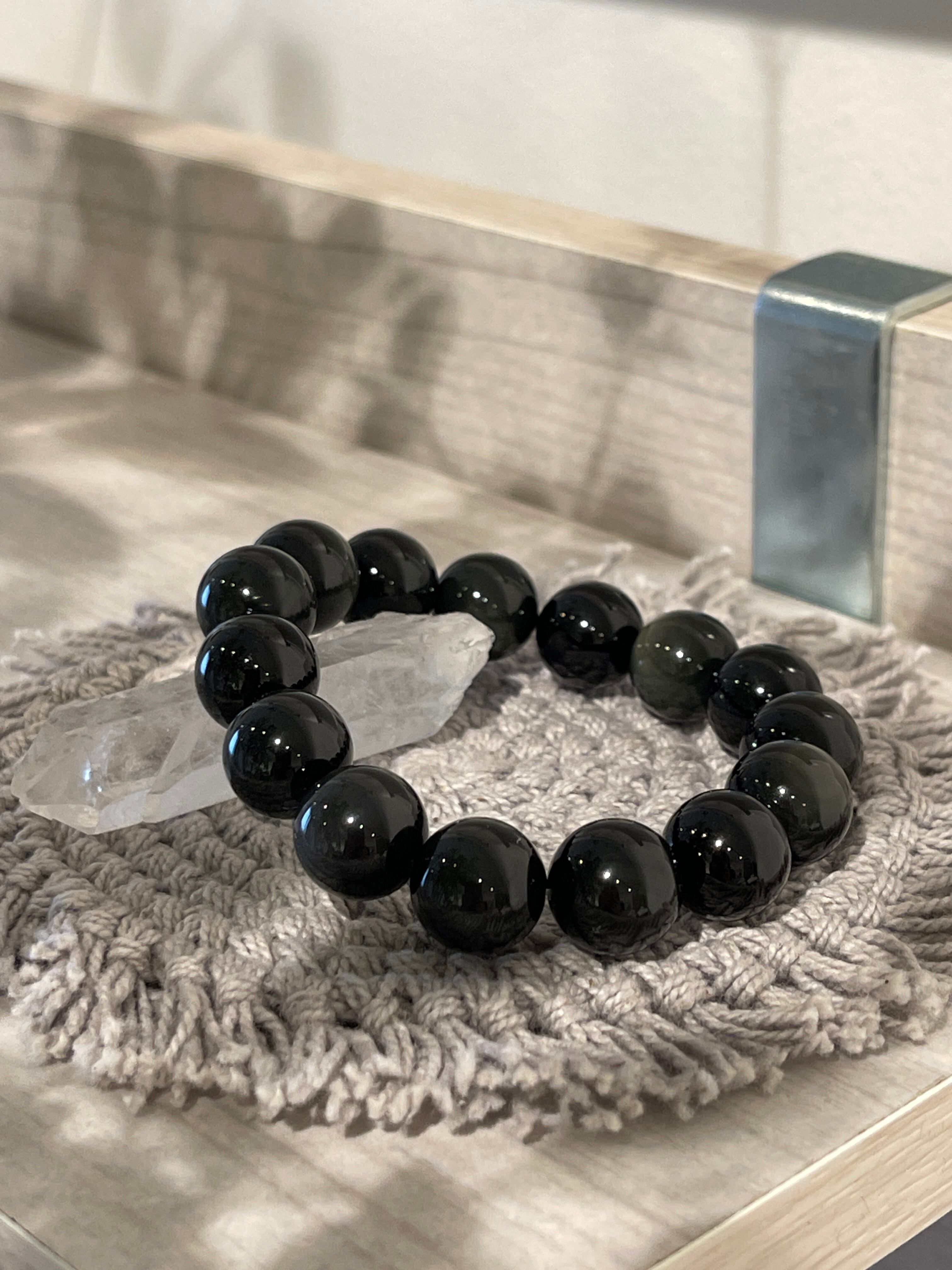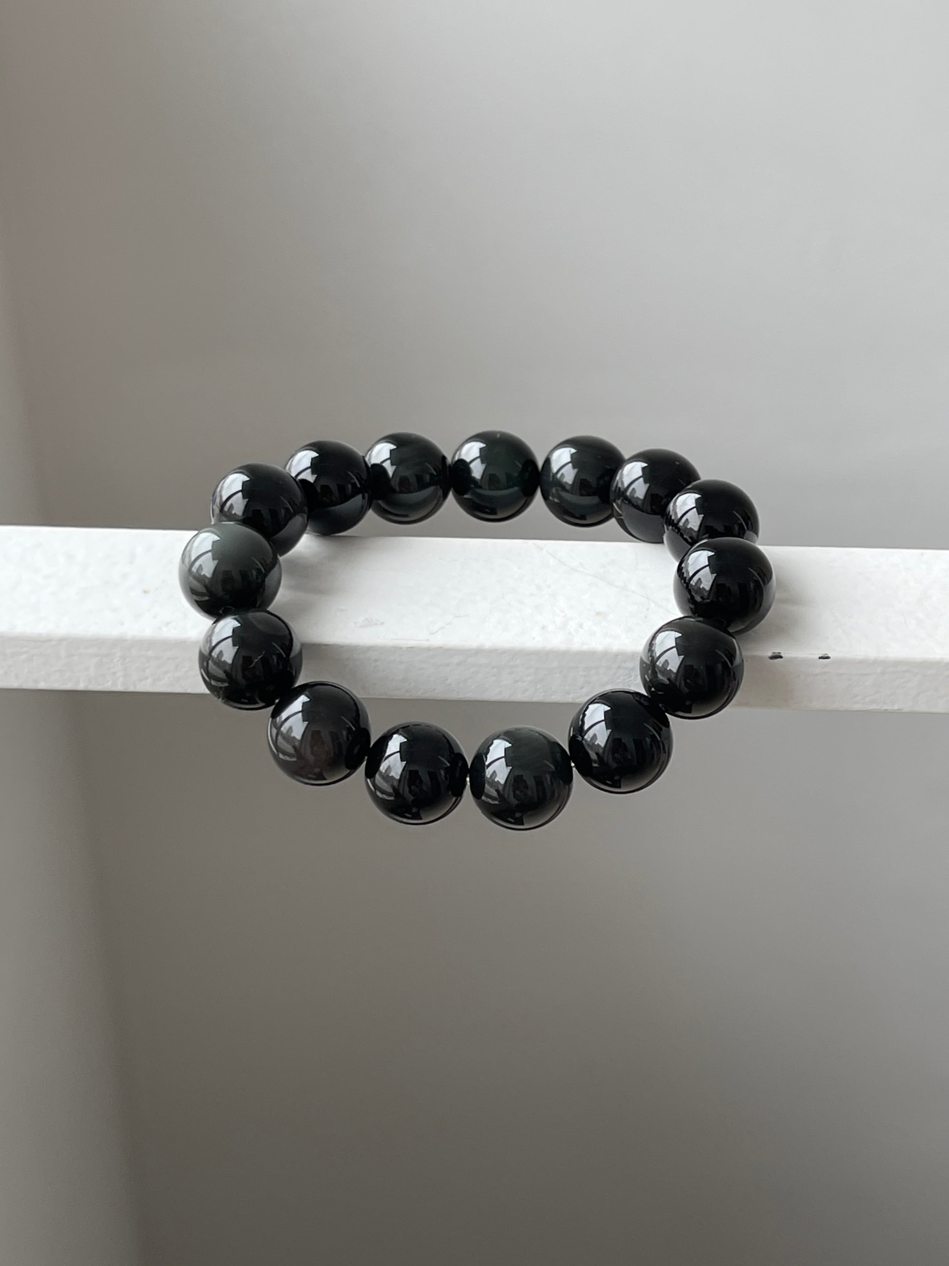 強力な魔除け効果のあるモリオンと躍進の石レインボーオブシディアンのパワーストーンブレスレットが入荷しました。