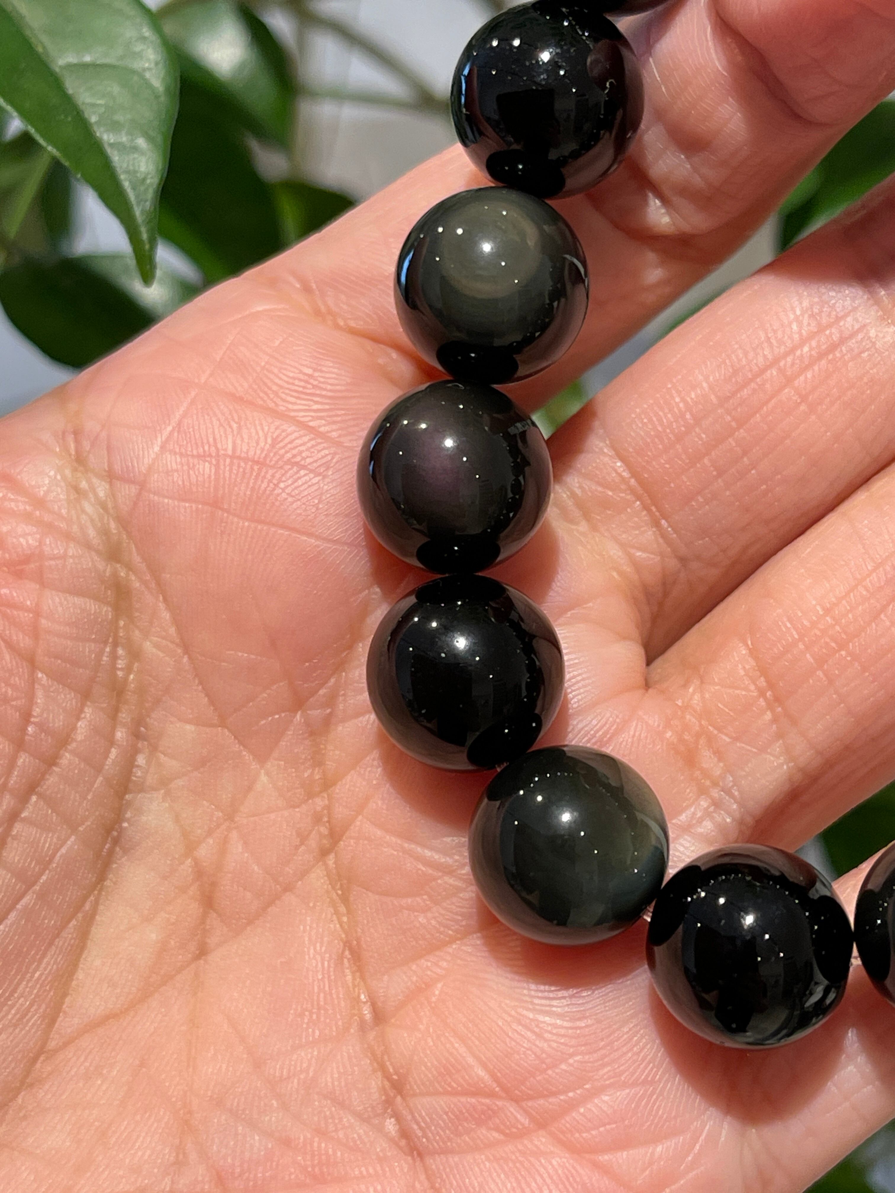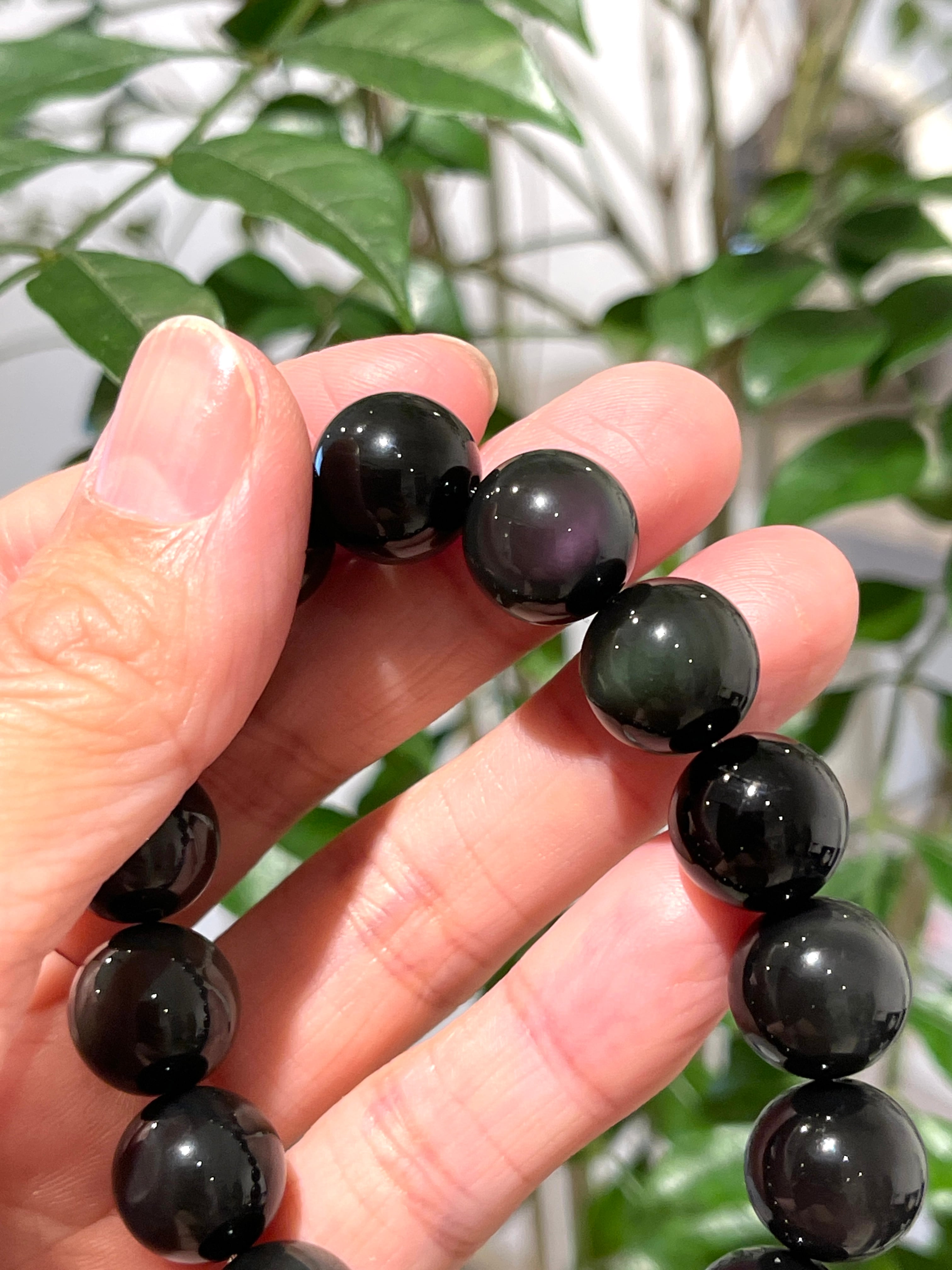 【強力な魔除け.邪気払い】モリオン&レインボーオブシディアン♡パワーストーンブレスレ