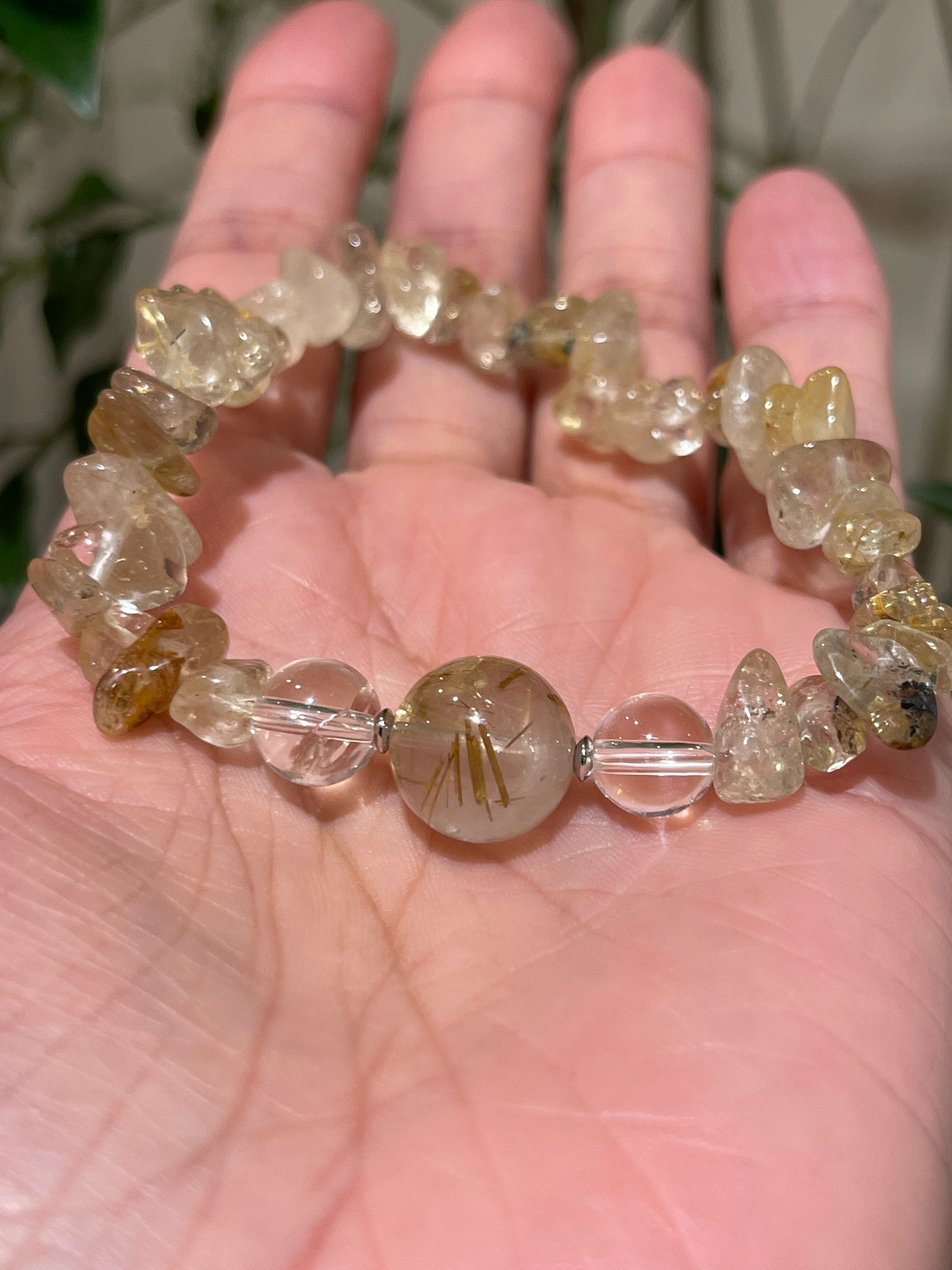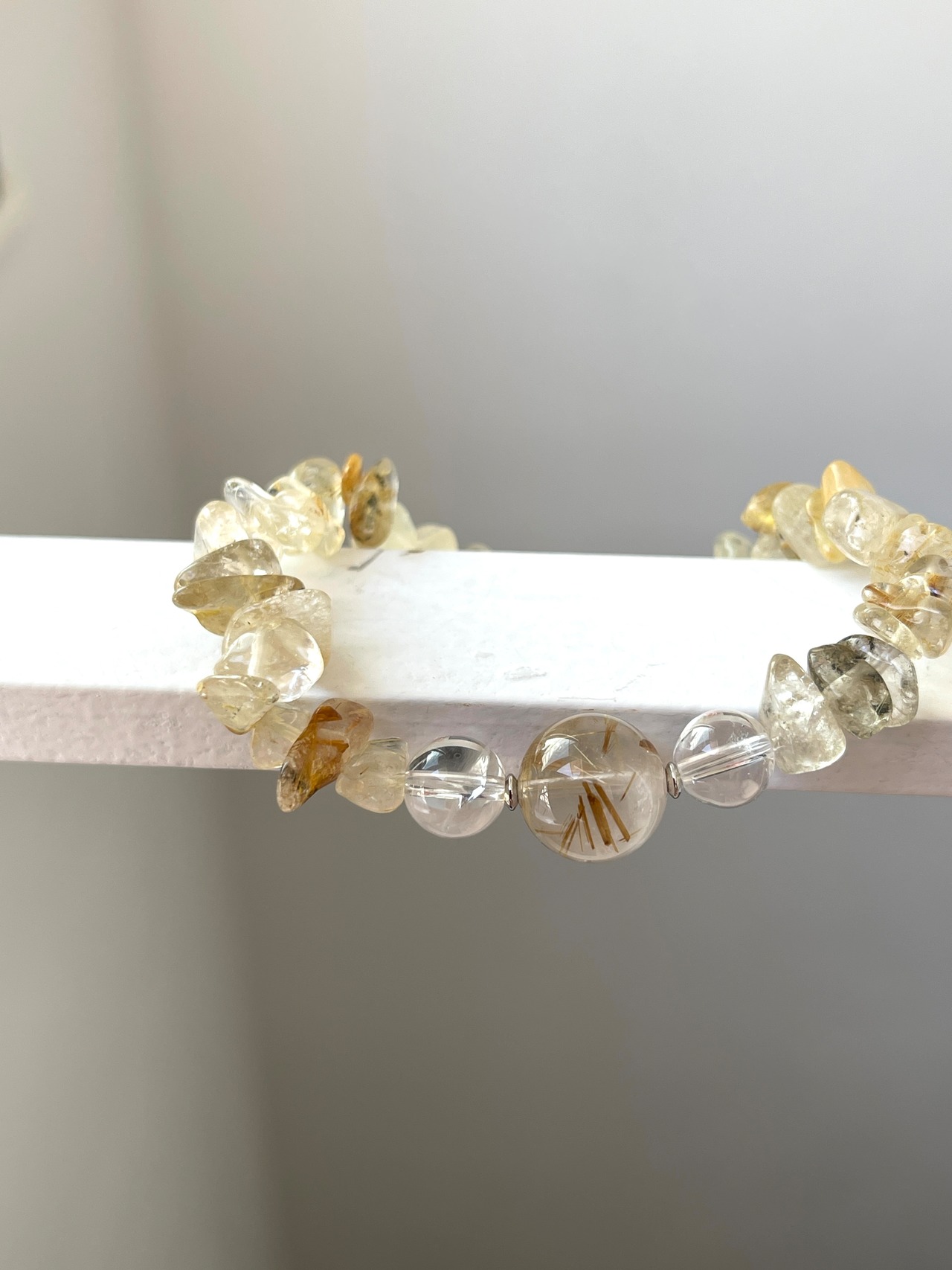 ルチルクォーツのチップが珍しいパワーストーンブレスレットが入荷しました♪