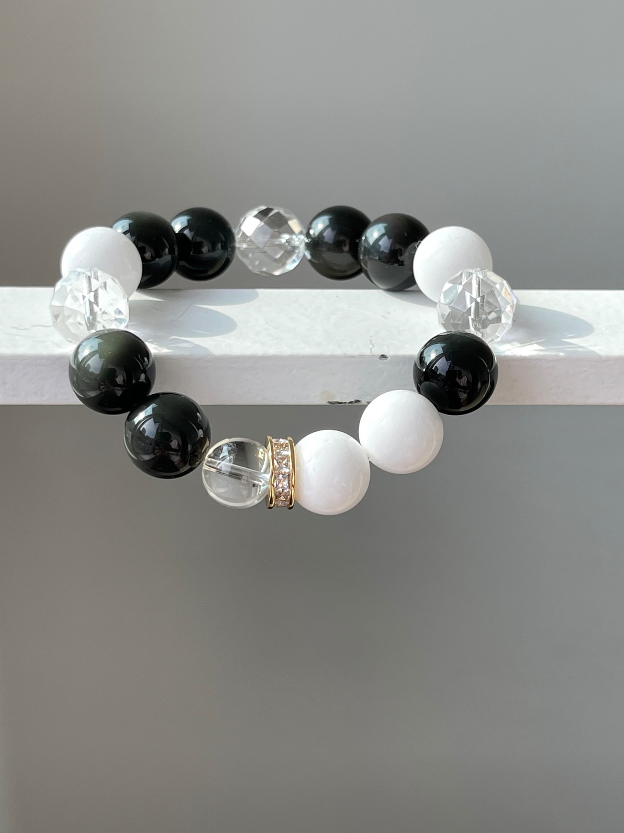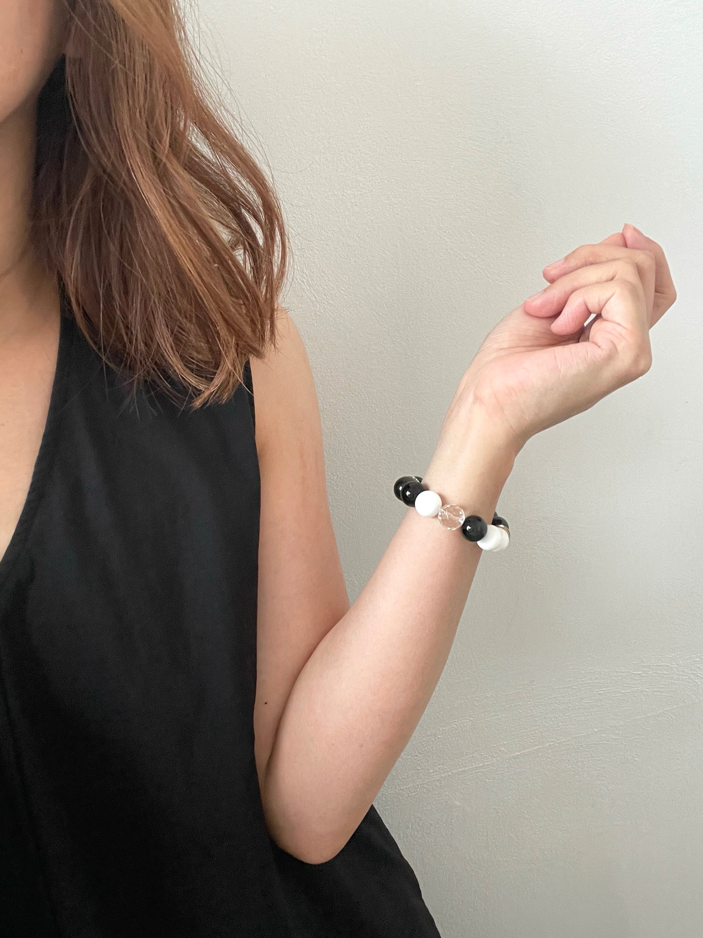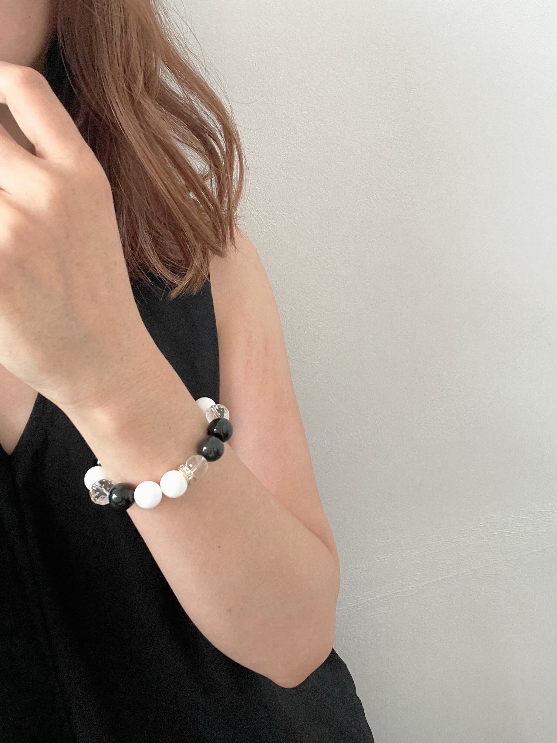 ラビットカラージェイド&レインボーオブシディアン♡パワーストーンブレスレット