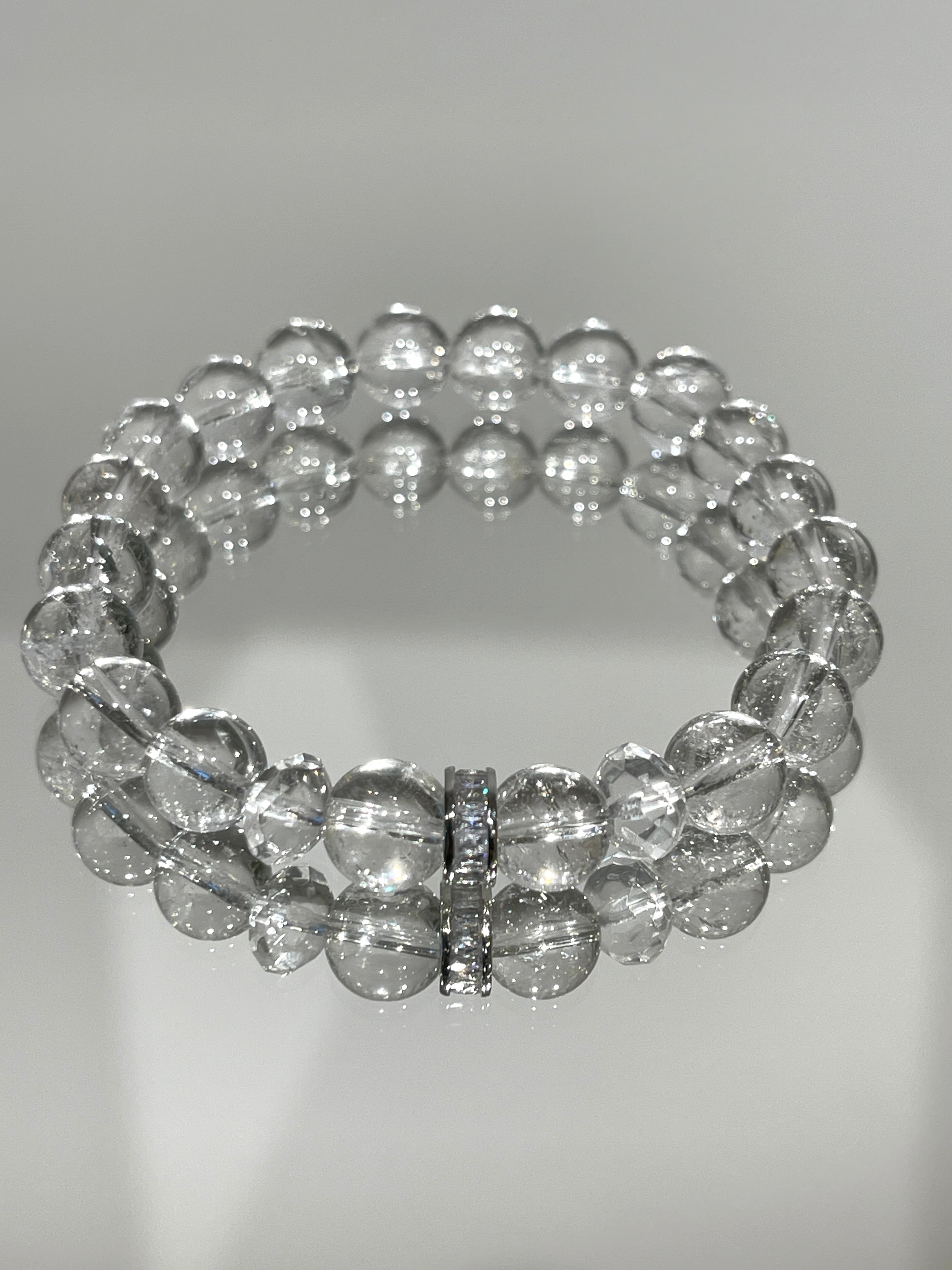 丸玉水晶は透明度が高く美しいブレスレットです。
