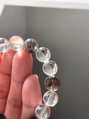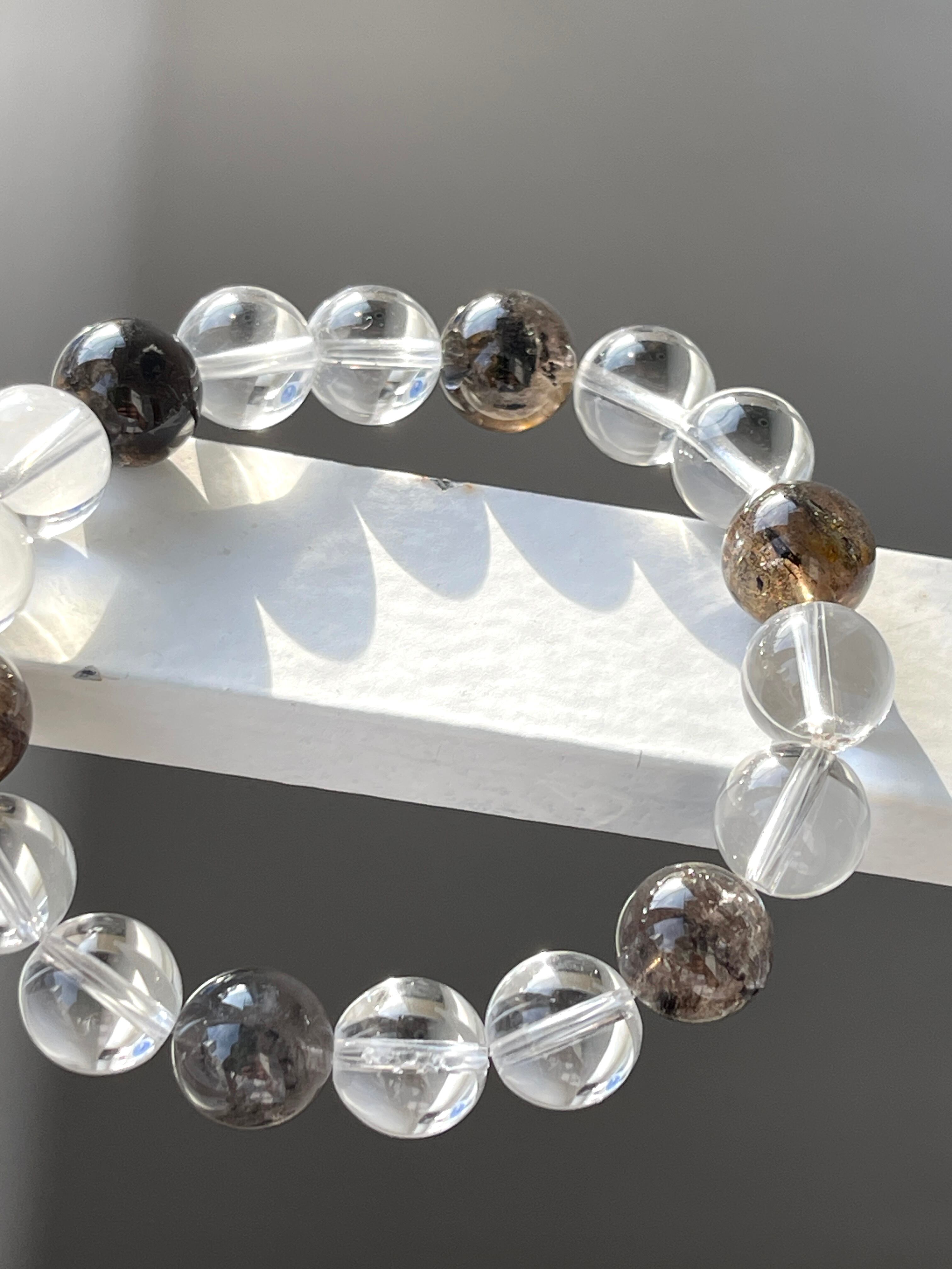 ダイヤモンドクォーツは他のクォーツよりも高温・高圧の環境で成長するため、カーボン(黒い内包物)や気泡を内包します。
