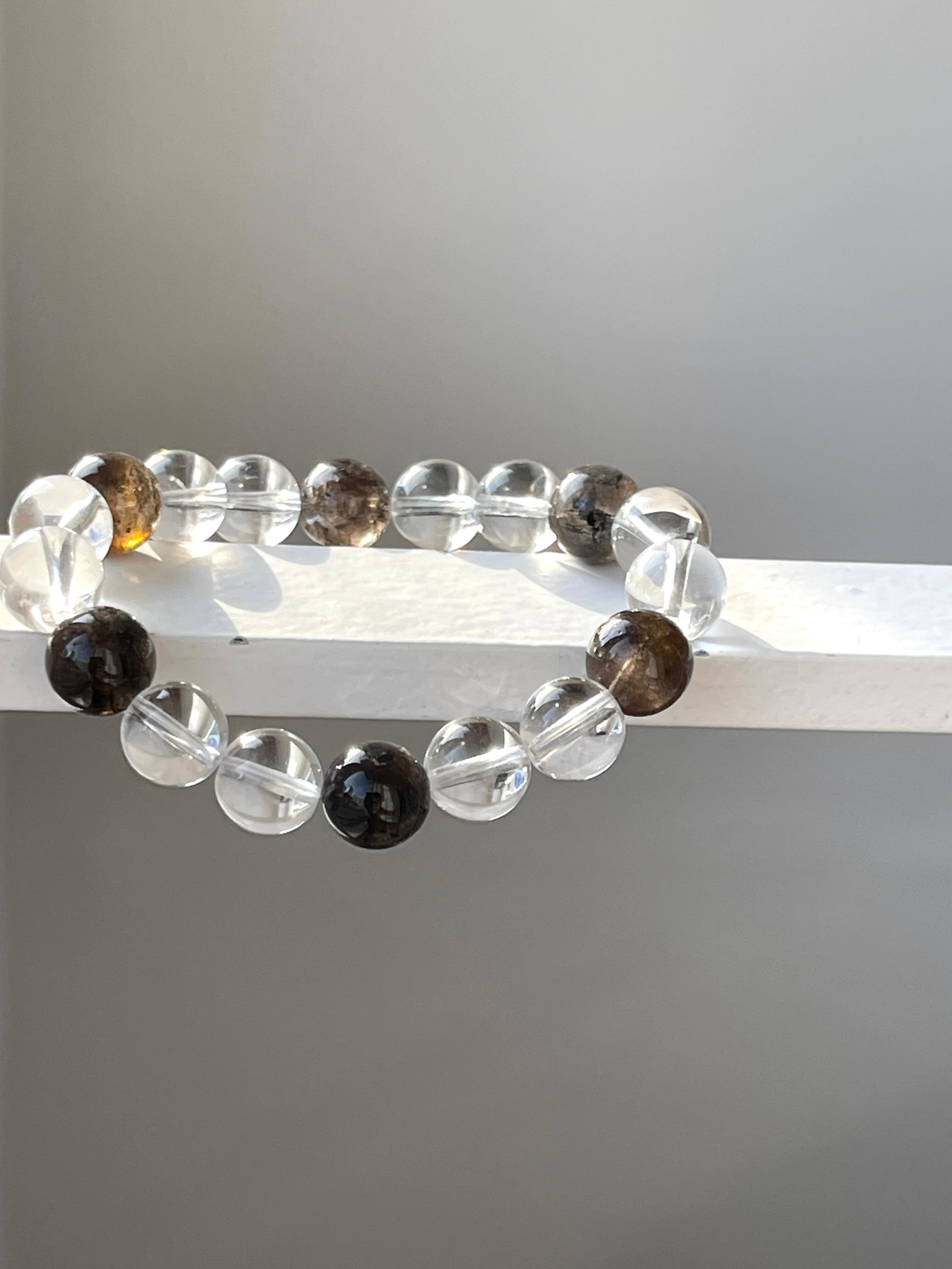 【魔除け.六芒星】ダイヤモンドクォーツ&天然水晶♡パワーストーンブレスレット