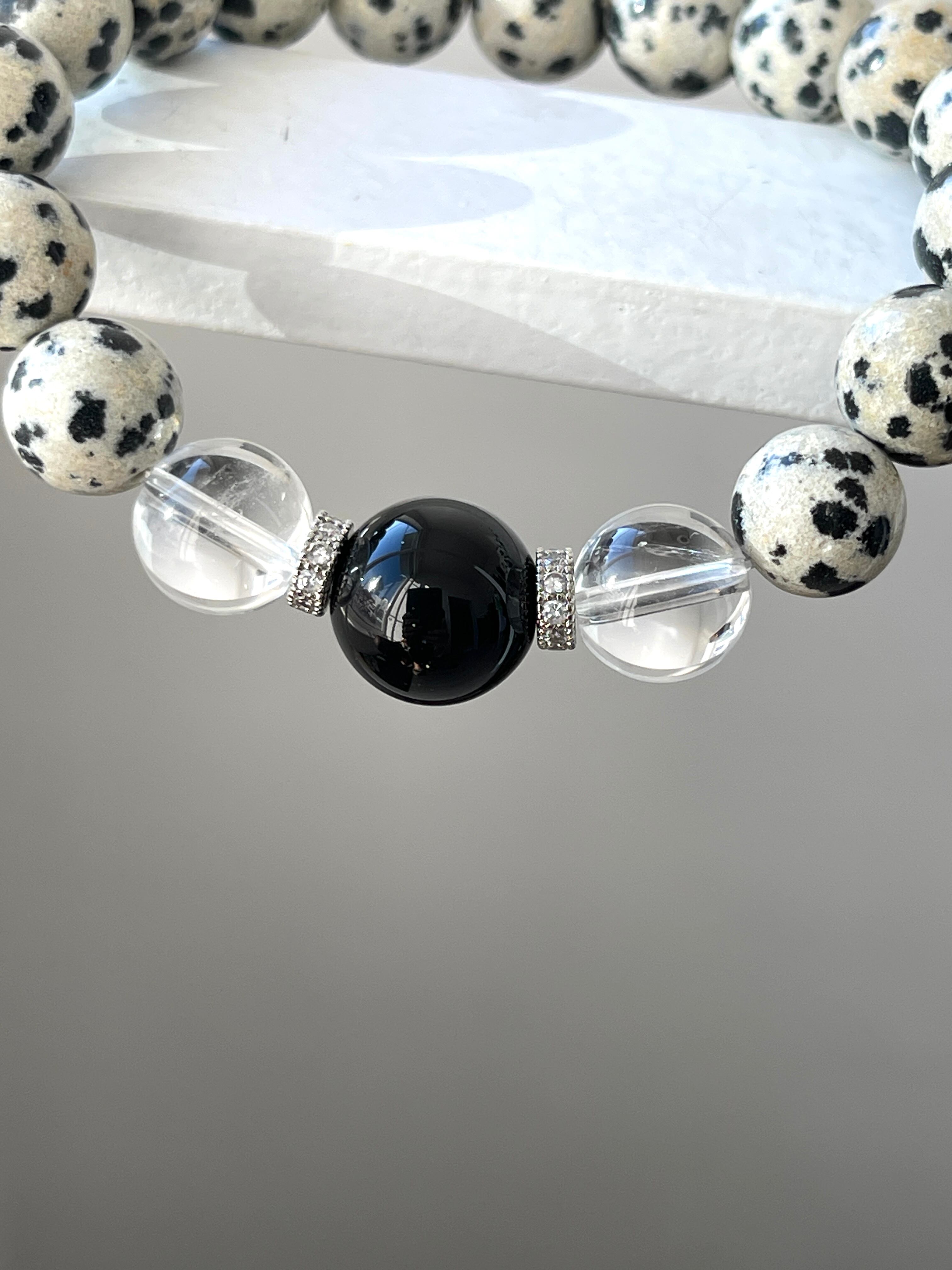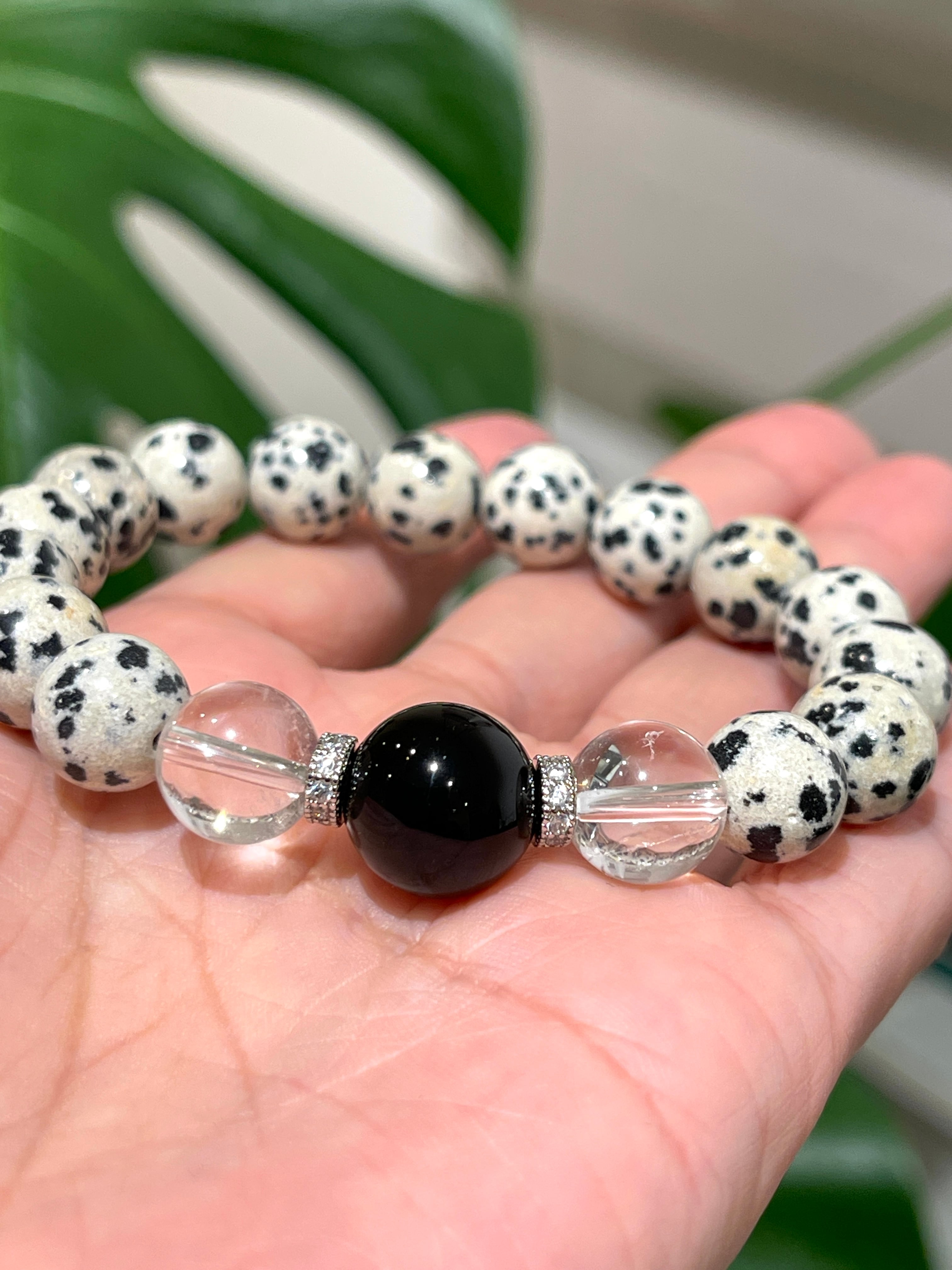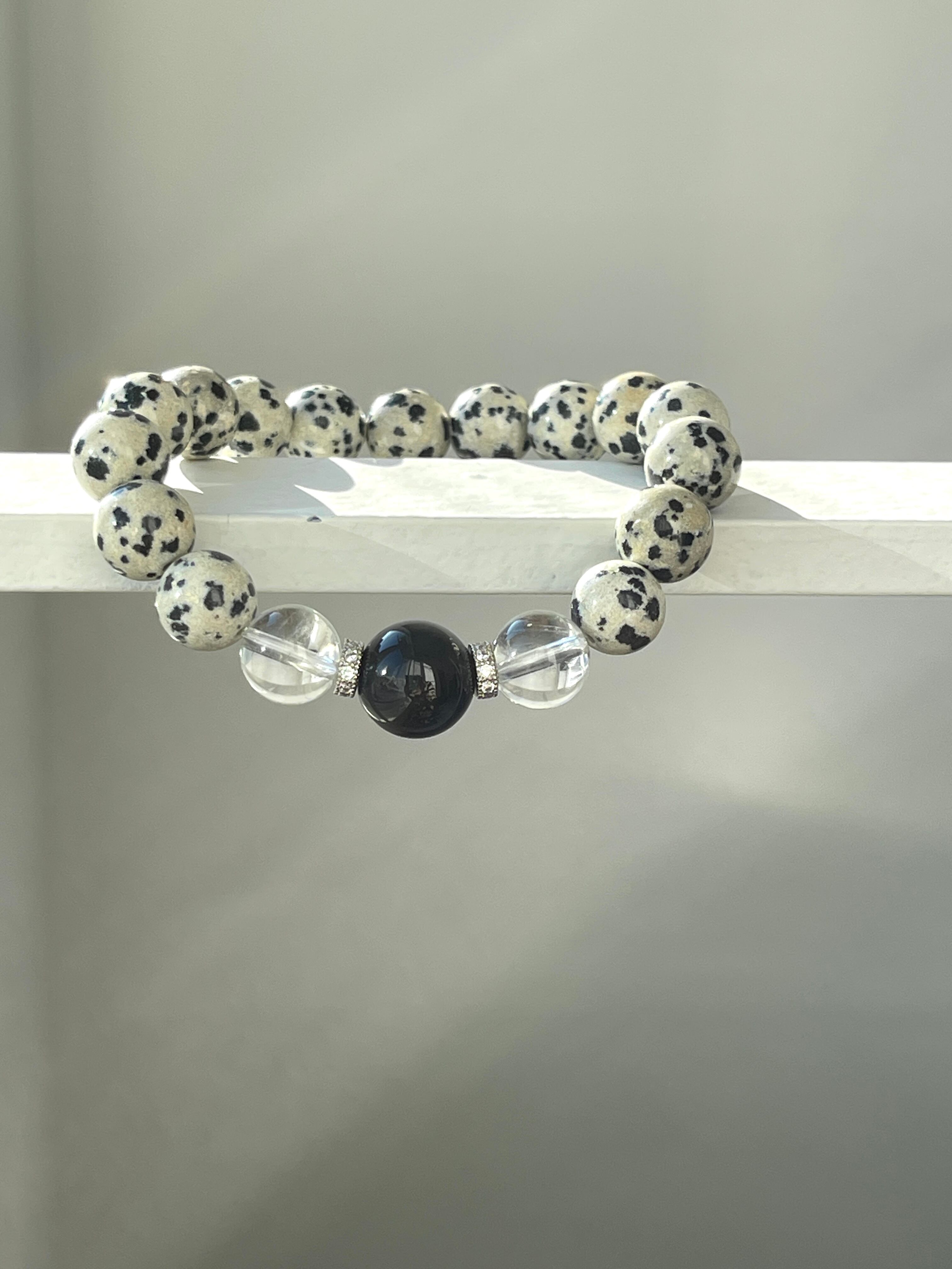 【魔除け.危険回避】モリオン&ダルメシアンジャスパー♡パワーストーンブレスレット